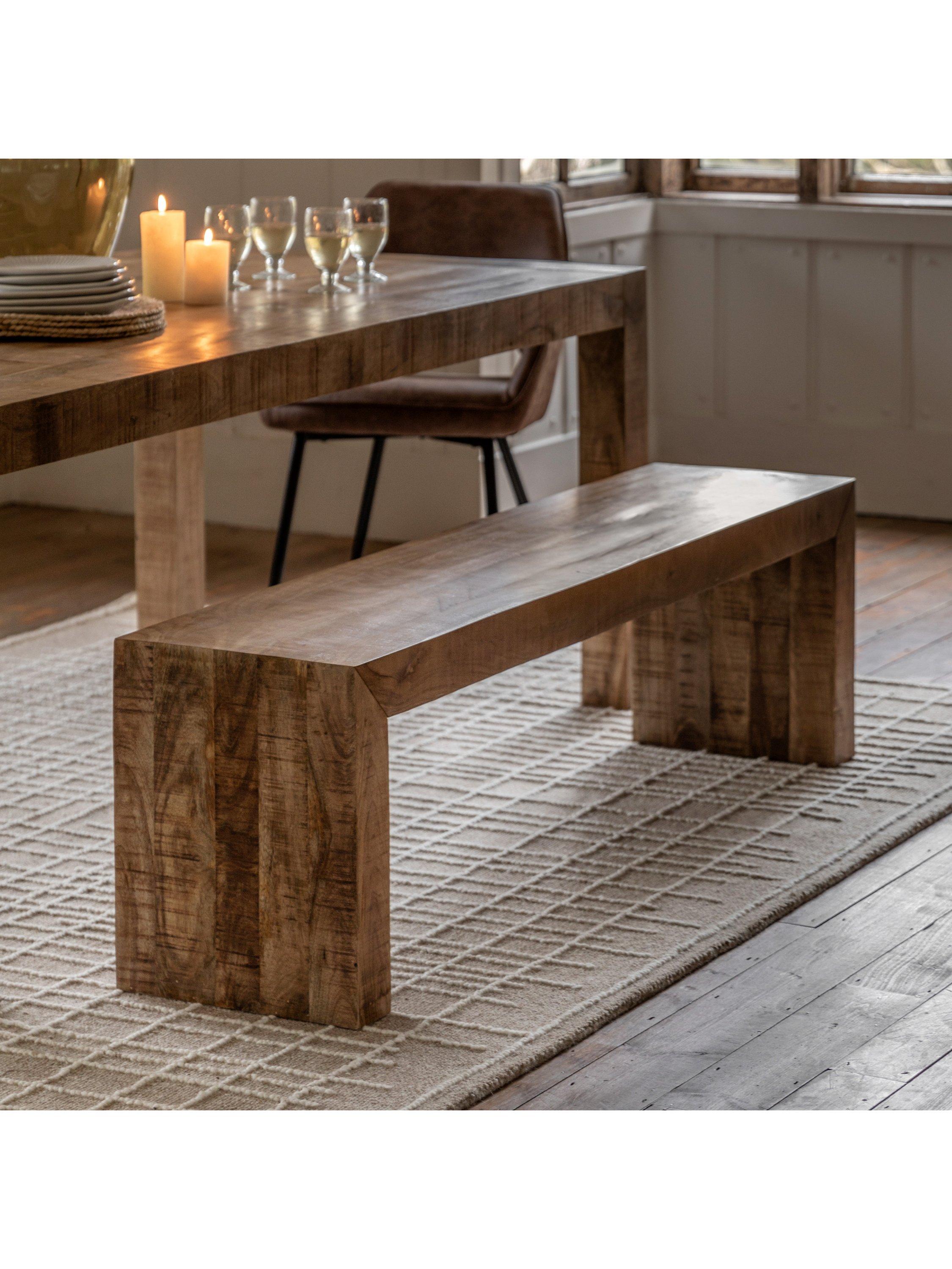 This dining bench is a versatile and stylish piece that can be used in a variety of settings. Its minimalist design and natural finish add a touch of rustic charm to any space.