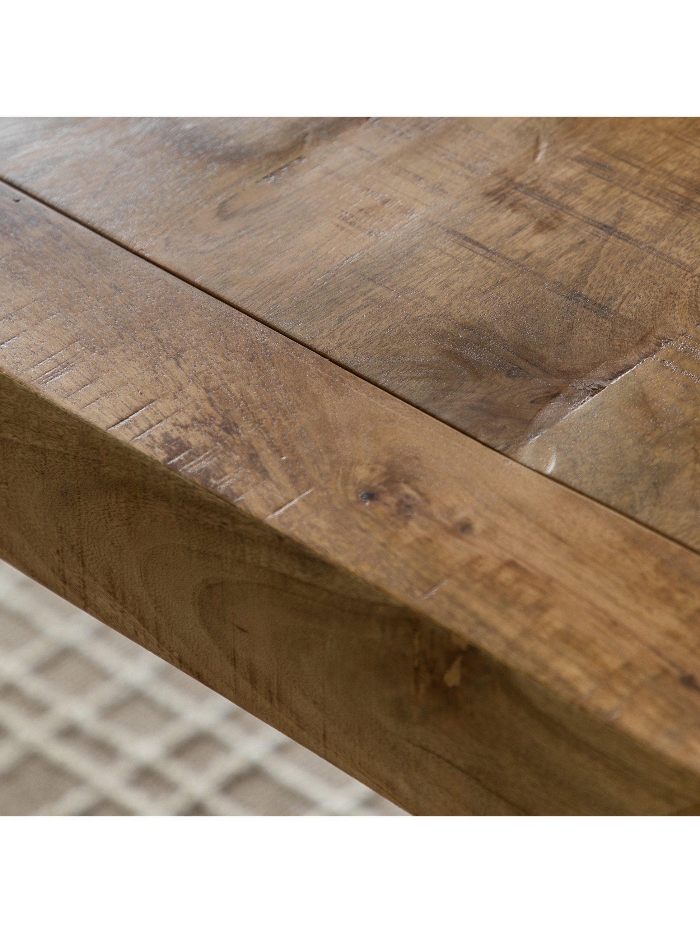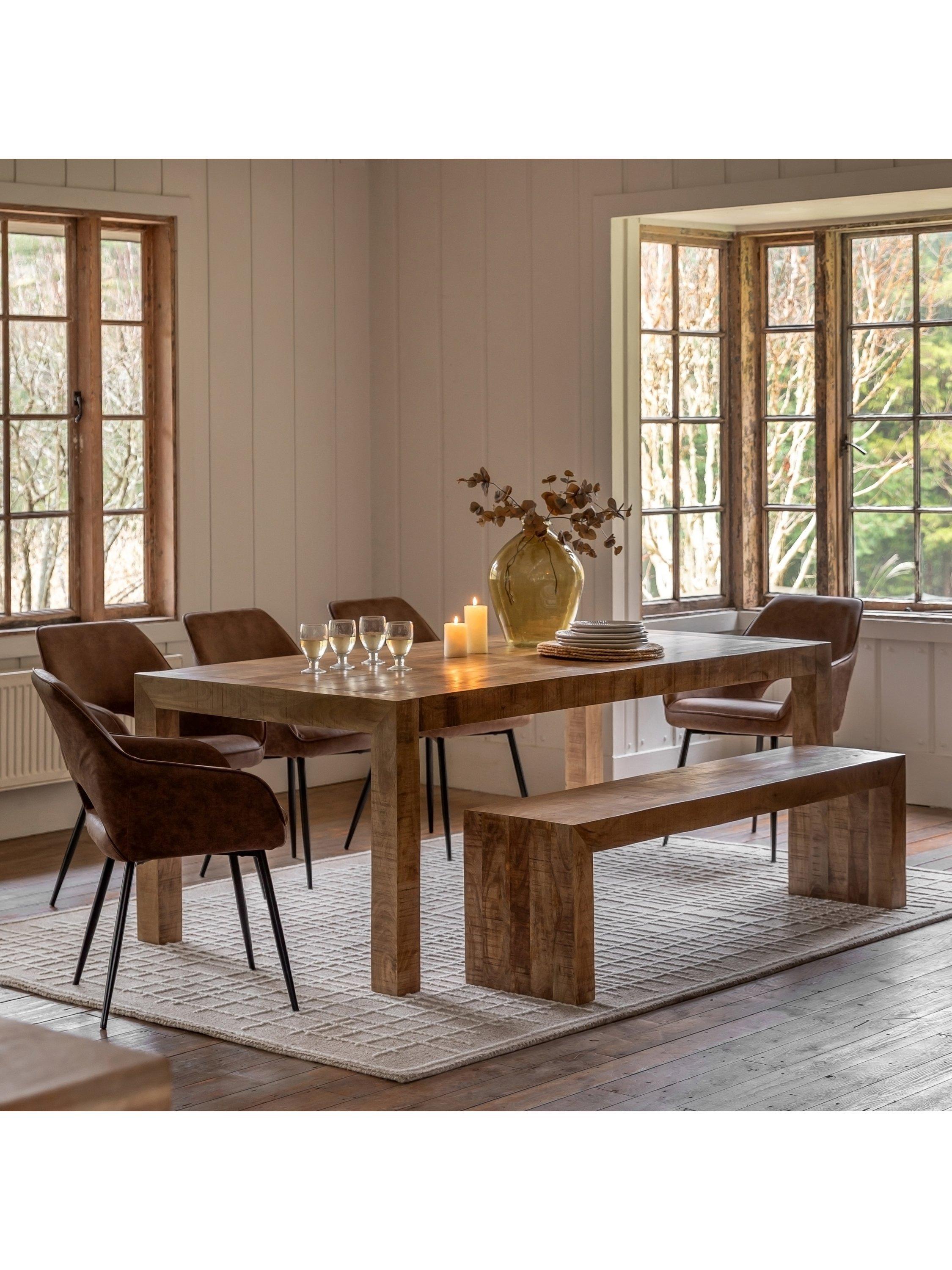 This dining table is a versatile and stylish piece that can be used in a variety of settings. Its minimalist design and natural wood finish add a touch of rustic charm to any space. The solid mango wood construction ensures durability and longevity, making it a perfect choice for everyday dining.