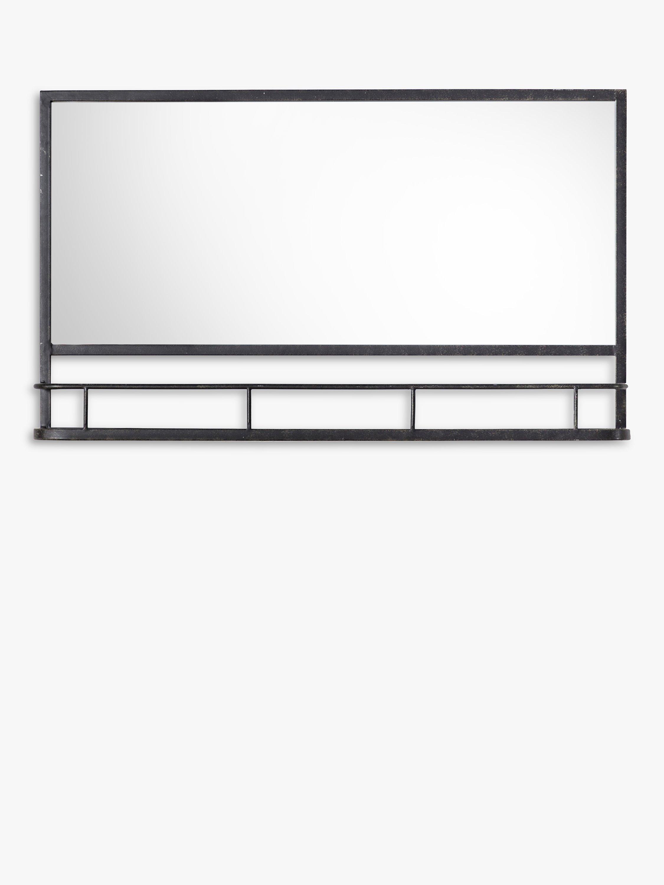 A wall mirror and practical storage solution in one, the Emerson mirror has a full-width shelf for keeping small items, ornaments or houseplants. This mirror has a distressed-finish iron frame and is ready to hang on your hallway, kitchen or living room wall using the fittings on the back.