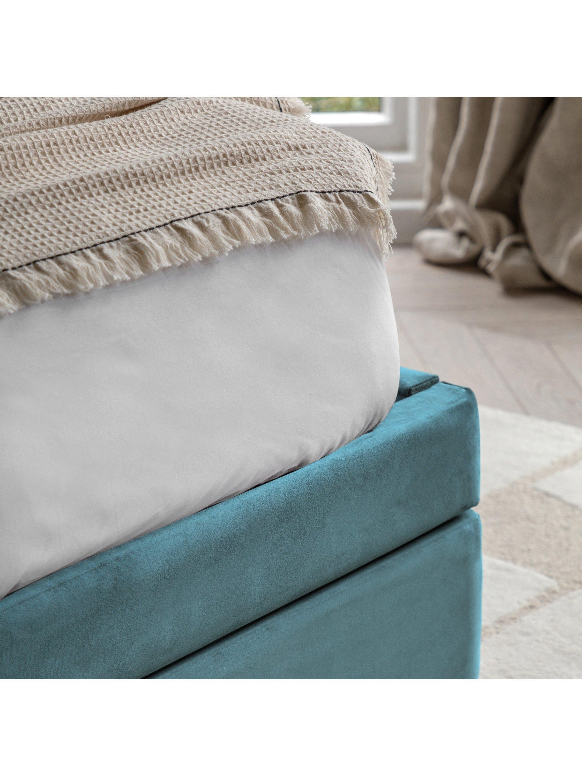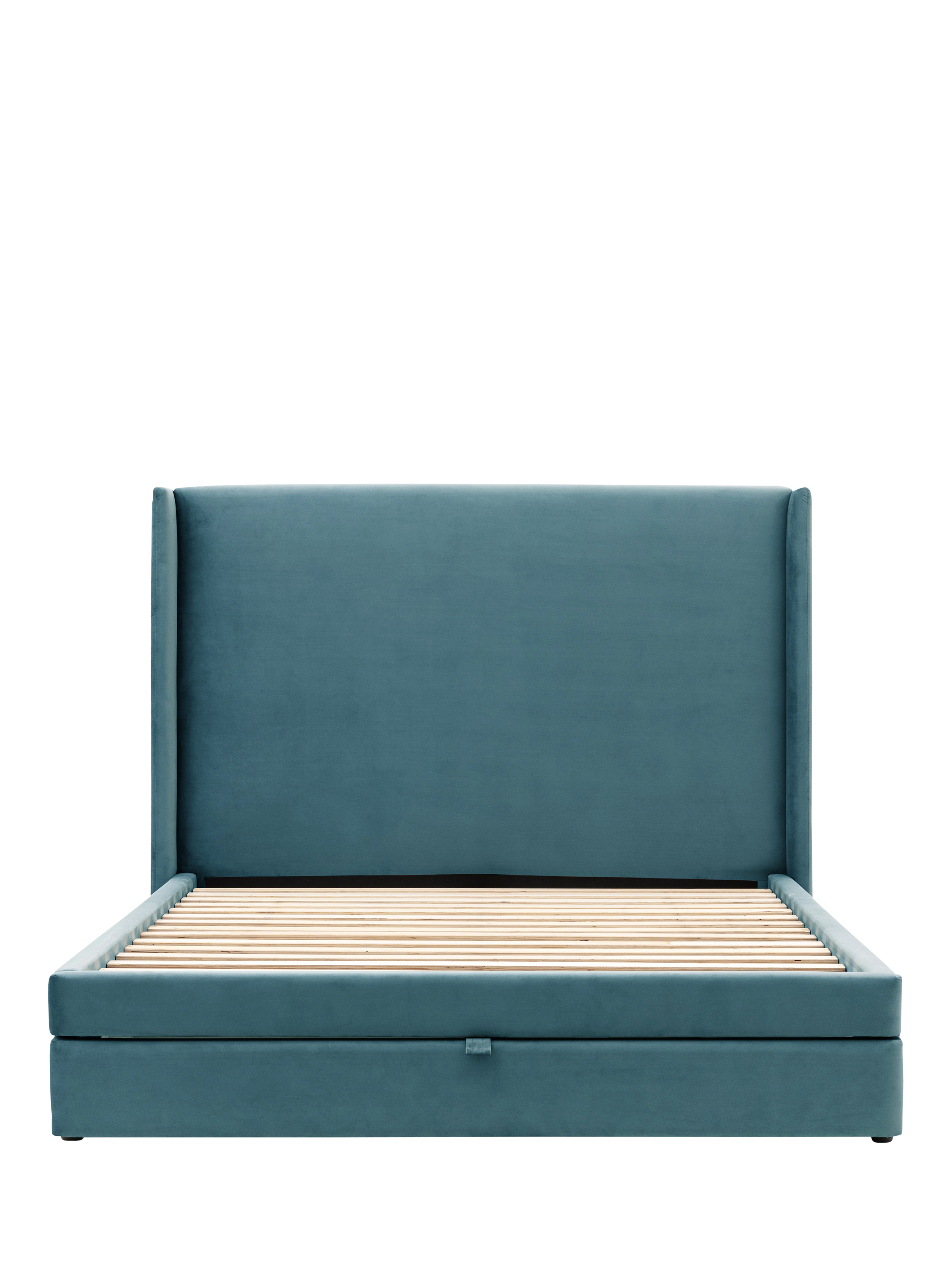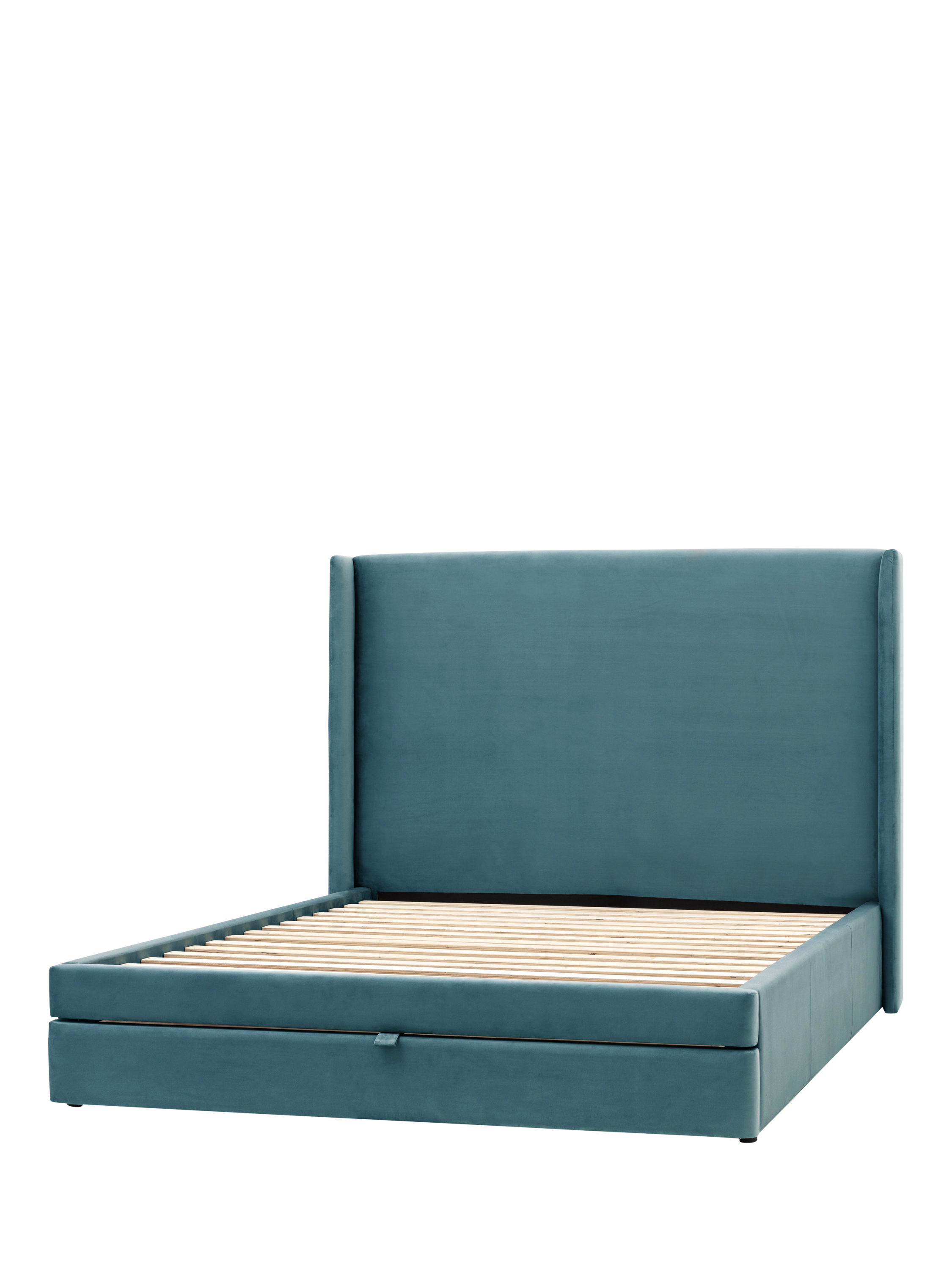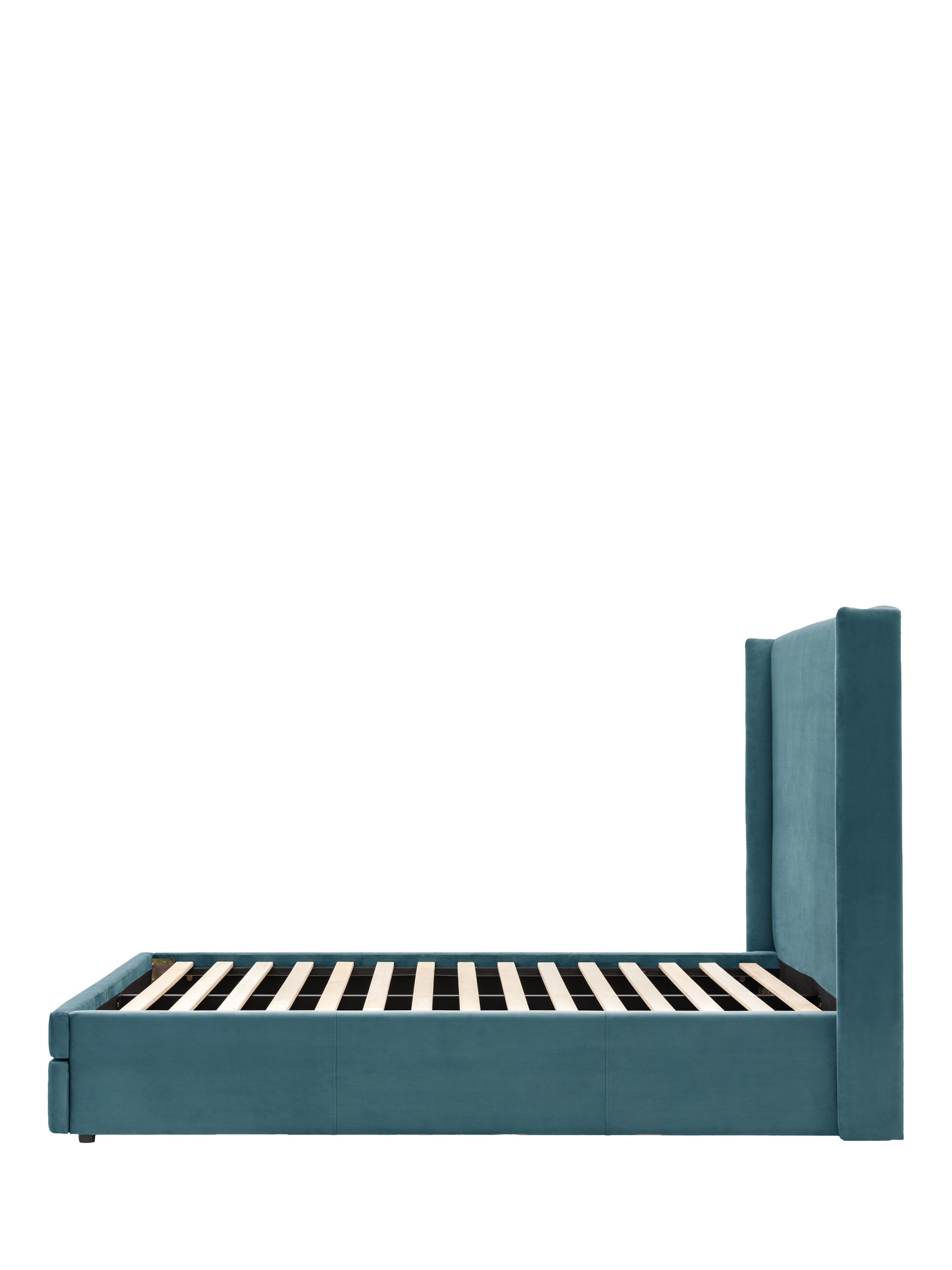 This upholstered bed offers a combination of modern design and practicality. There's a built-in drawer at the foot of the bed which pulls-out to reveal two storage sections, making this frame an ideal choice if you have limited storage space in your bedroom. Plus, its plush, curved headboard wraps around the sides, framing your mattress for a contemporary and enclosed look. Complete with solid slats in the base which provide a supportive foundation for your mattress.