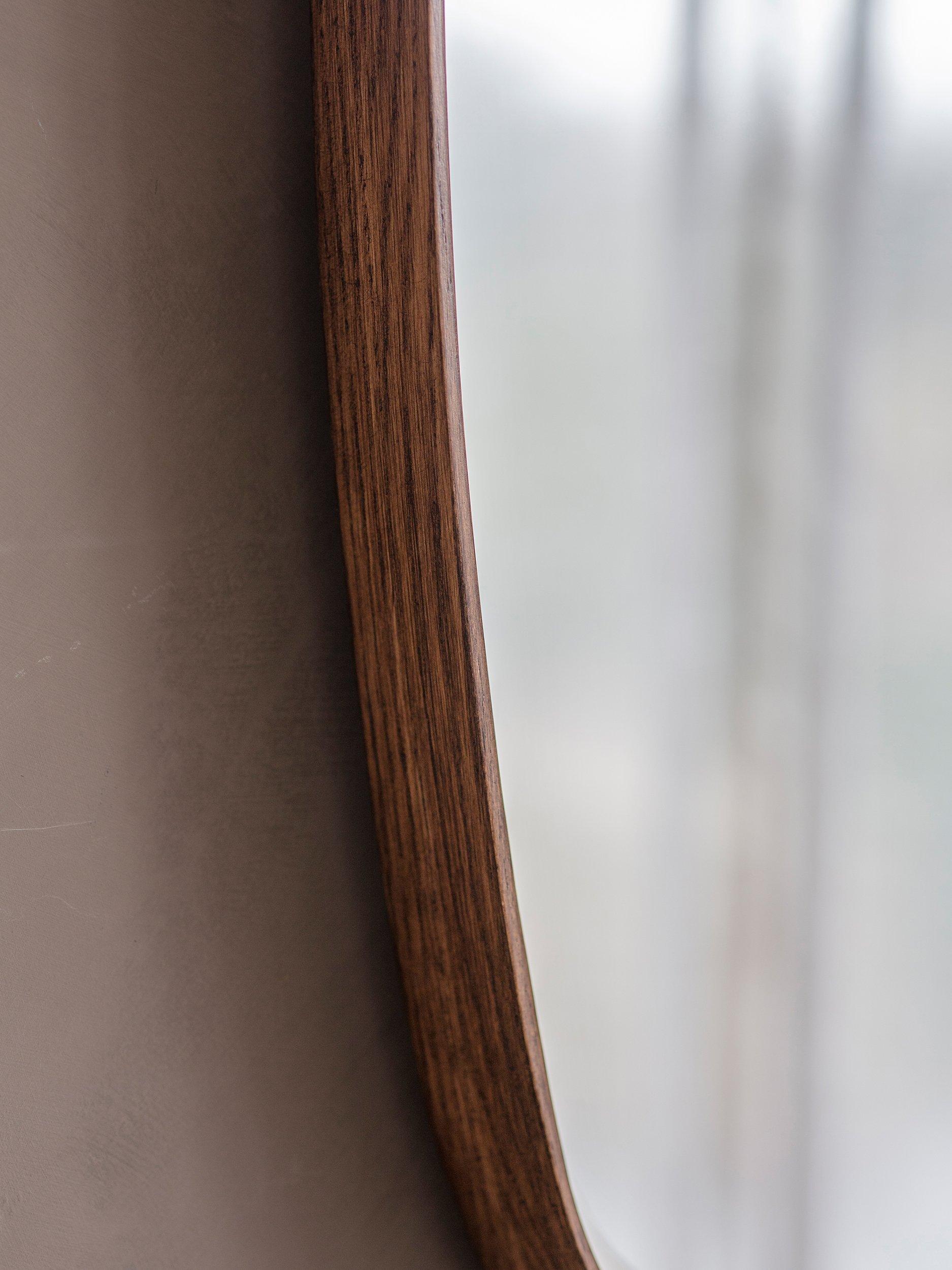 A Scandinavian-inspired design for a hallway or living room, the Keaton ovalular-shaped mirror has a deep-set wooden frame with a lacquered matt finish. It's ready to hang on your wall, vertically or horizontally, using the fittings on the back.