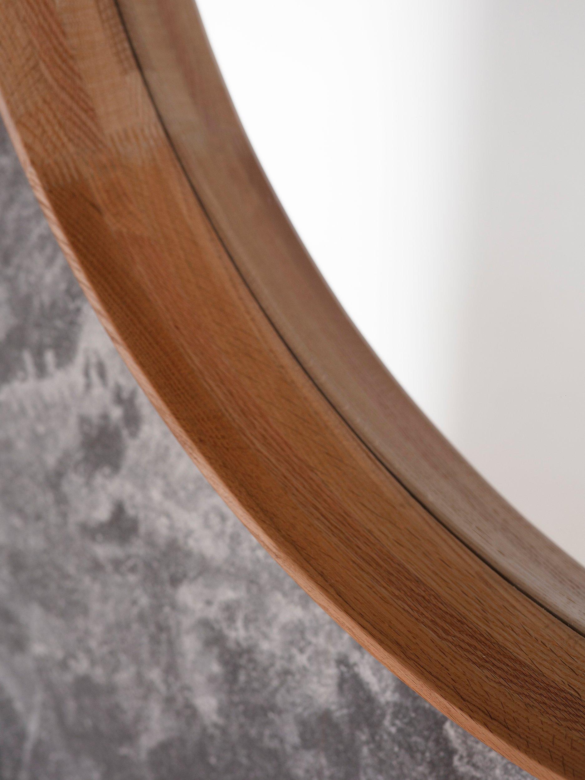 A Scandinavian-inspired design for a hallway or living room, the Keaton round mirror has a deep-set wooden frame with a lacquered matt finish. It's ready to hang on your wall using the fittings on the back.