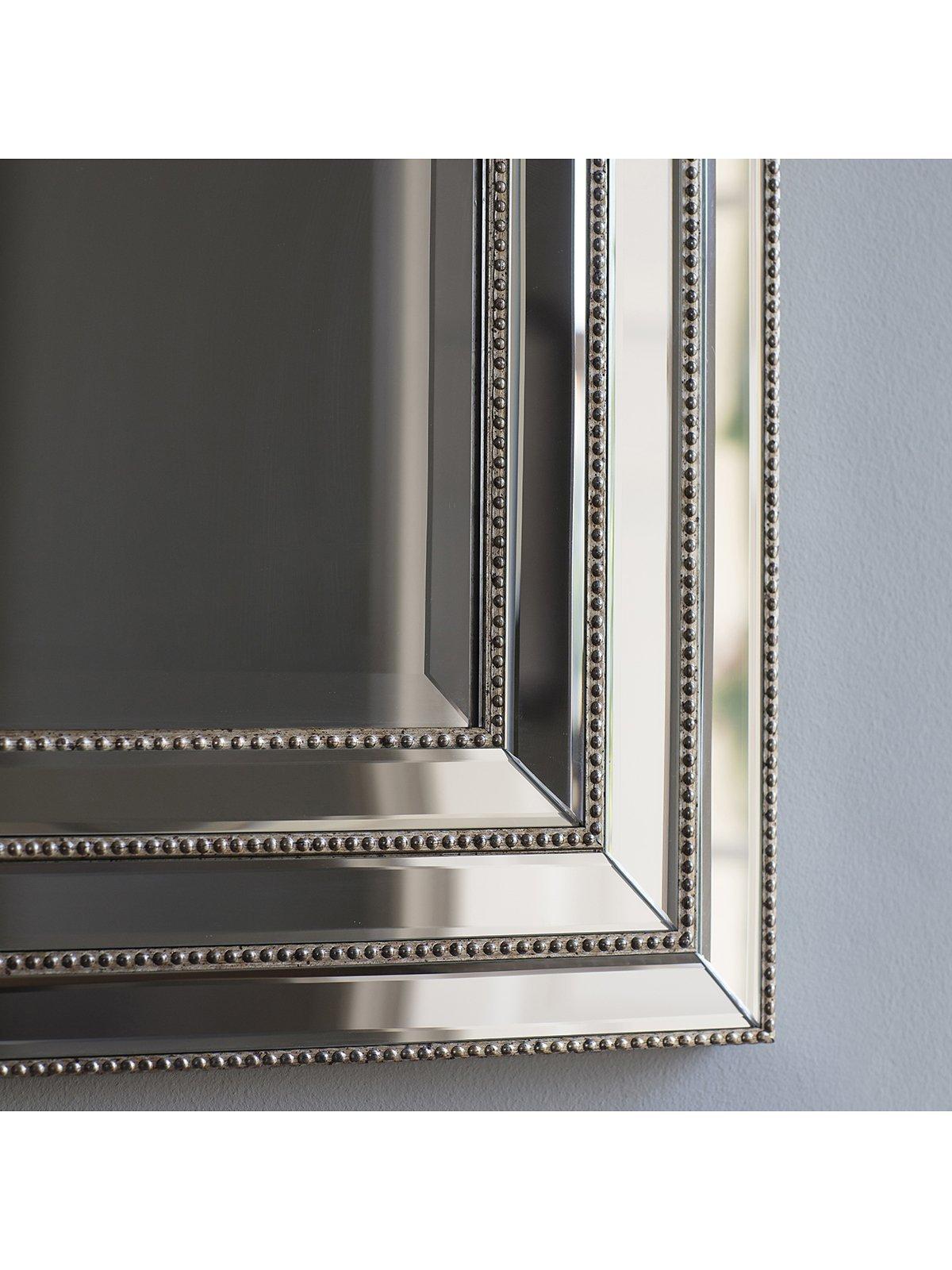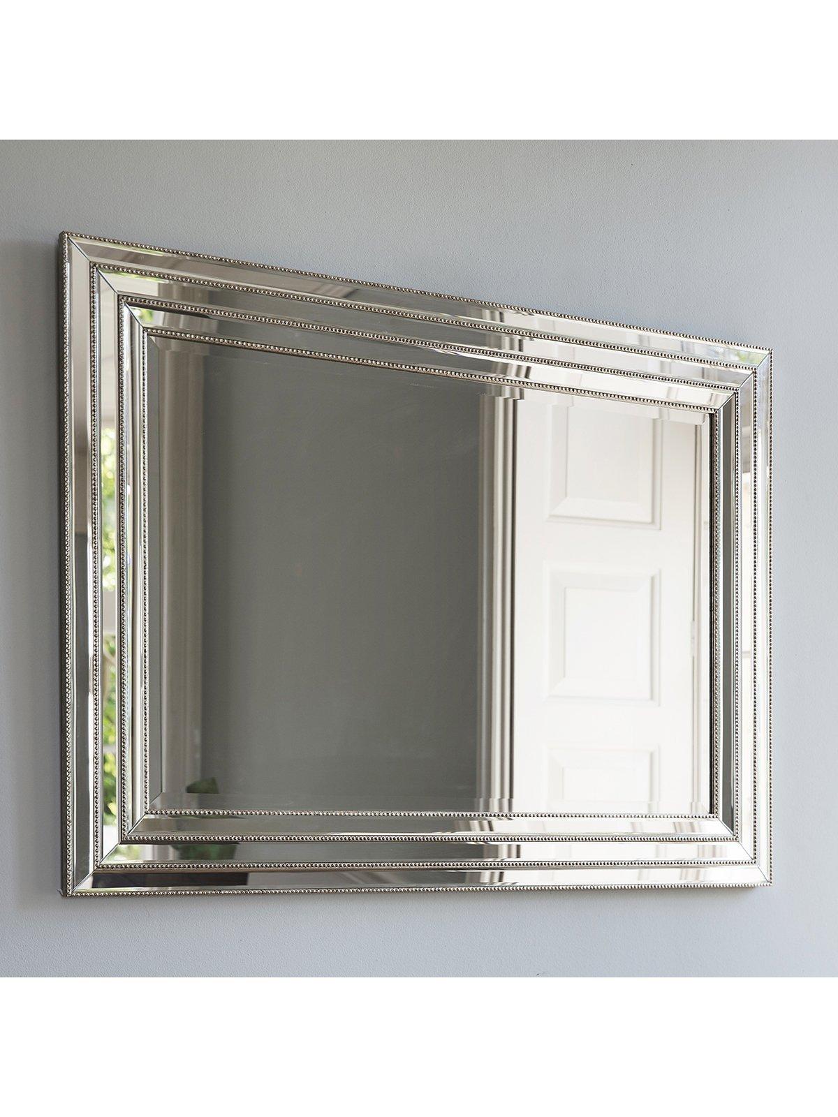 The Leven rectangular mirror has a stepped profile with a bevelled-glass frame and beaded detailing along the edges. It's ready to hang on your wall, vertically or horizontally, using the fittings on the back.