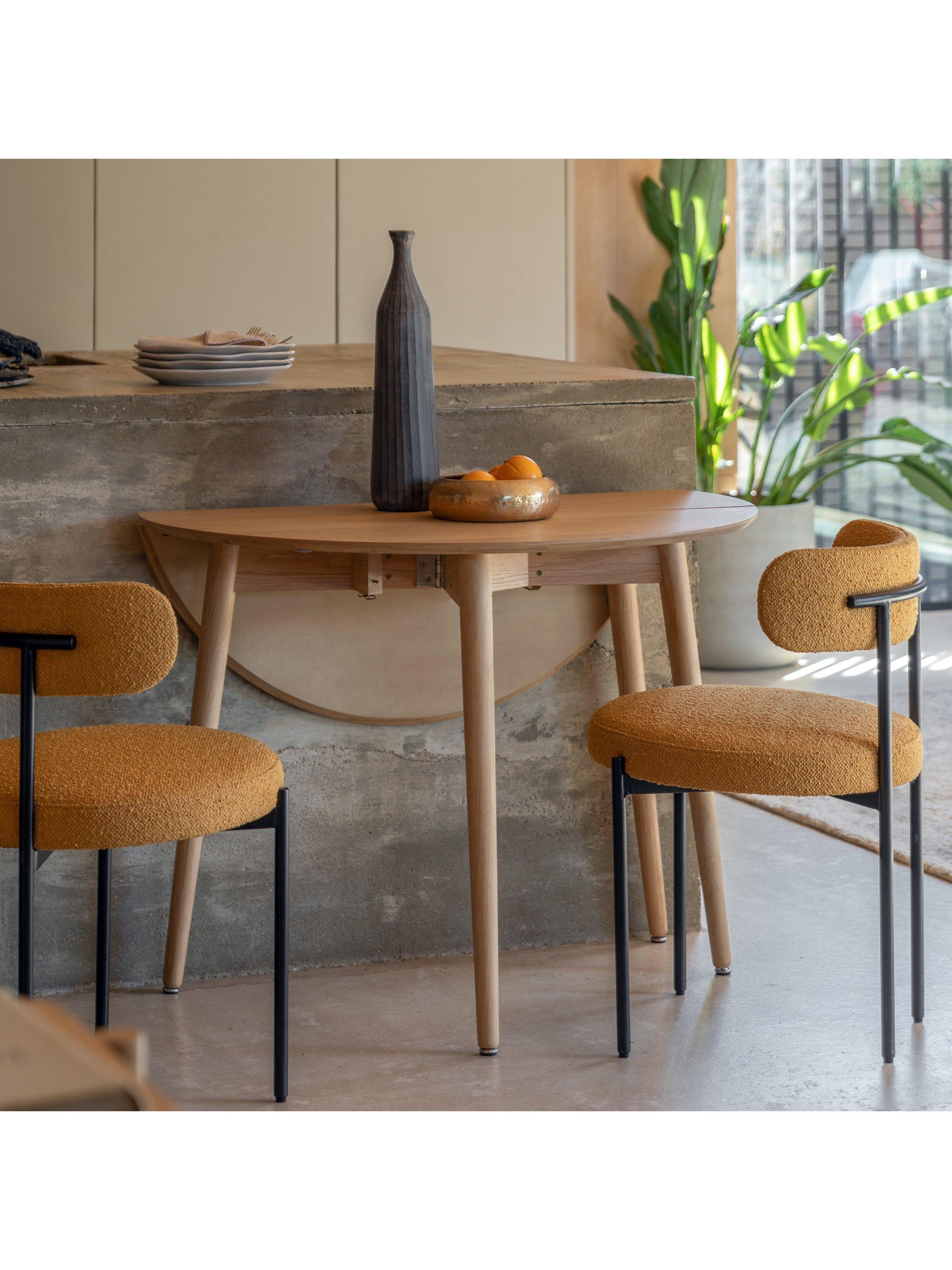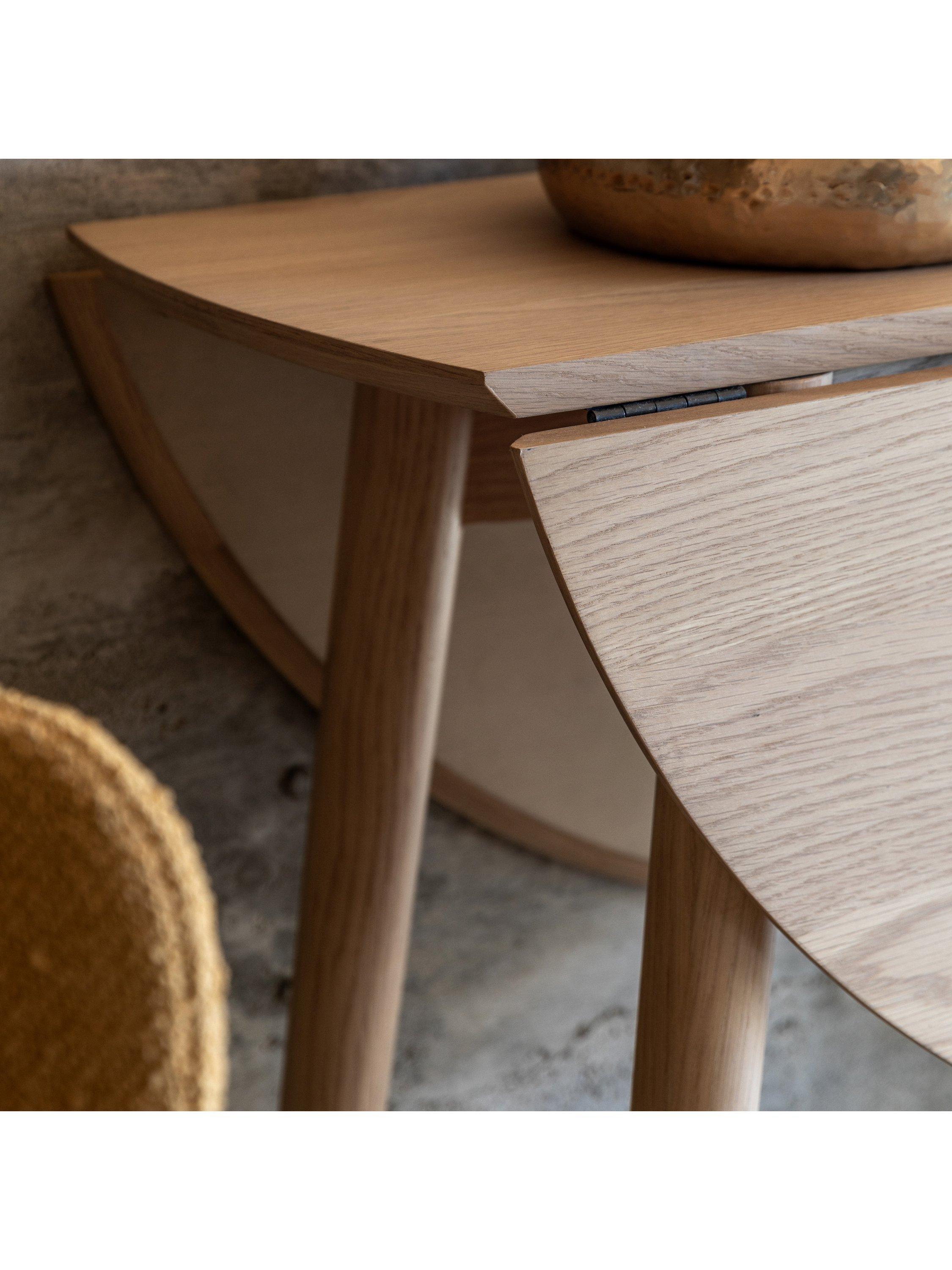 This versatile dining table can be easily folded away when not in use, perfect for those smaller spaces. Its oak frame is both durable and aesthetically pleasing and the natural finish complements a variety of interior styles.