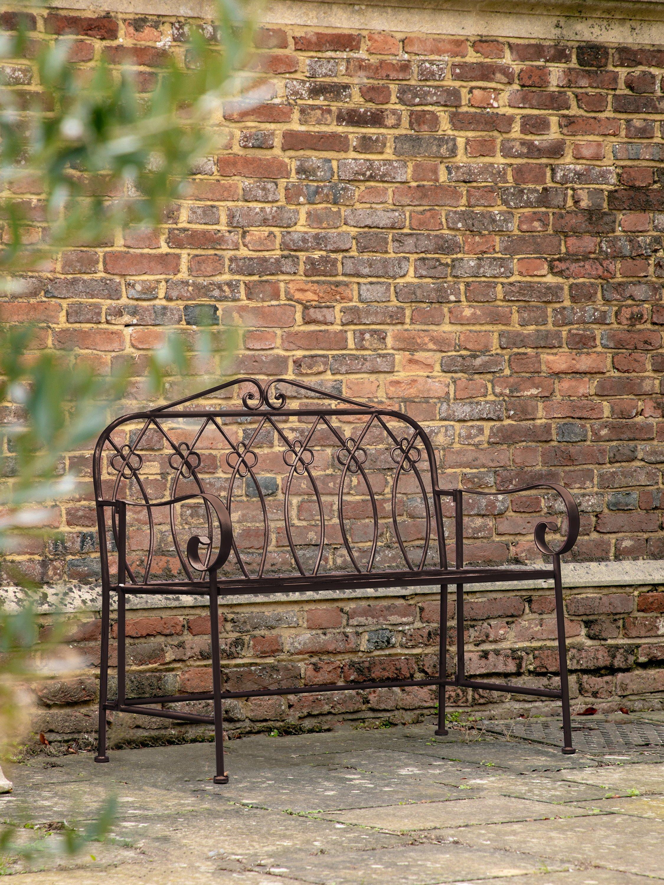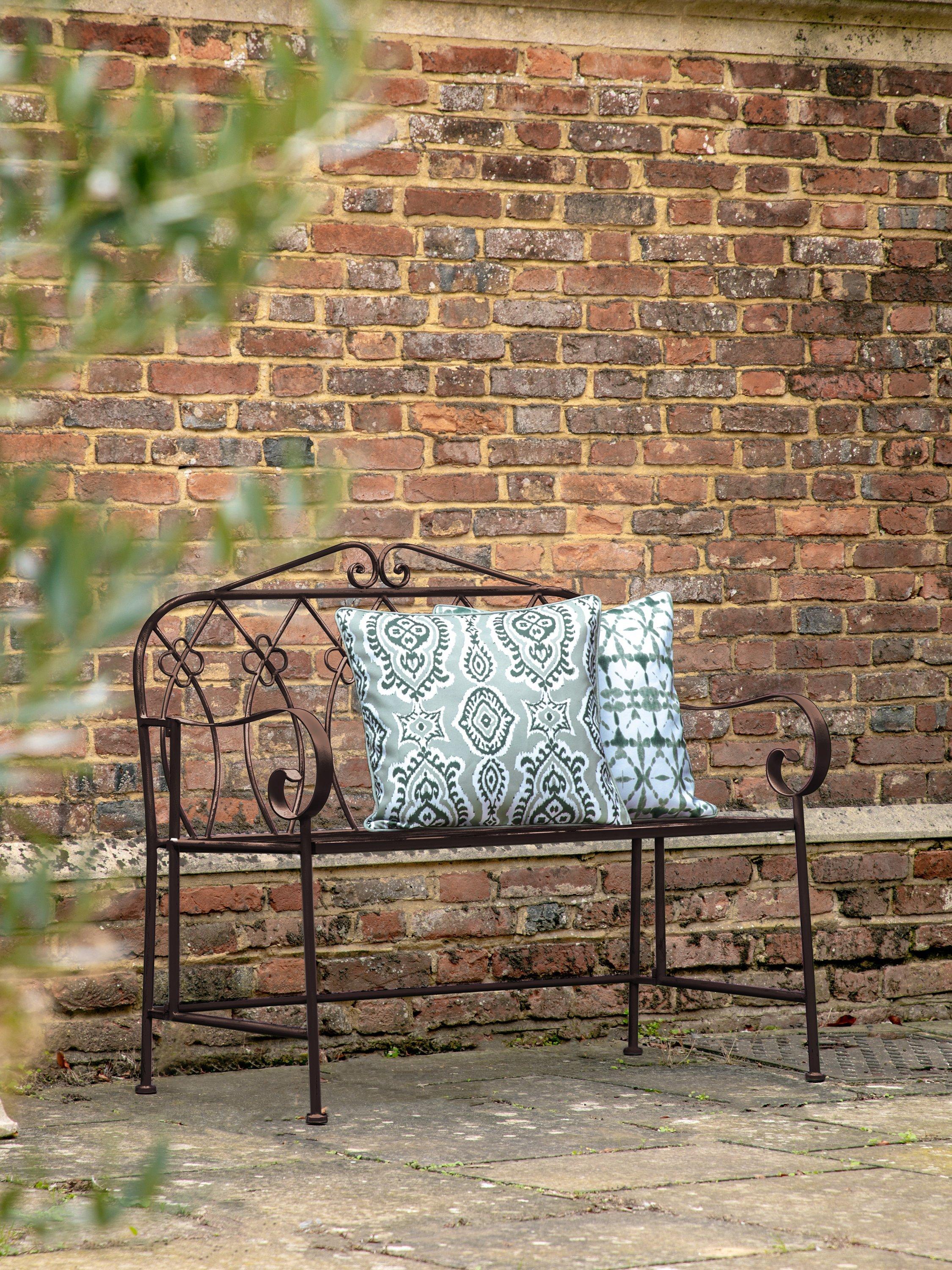 With a chic country style, this Matera bench from Gallery Direct is perfect for sitting and enjoying the sun. Crafted from metal with a deep patina finish, the bench's intricate design details make it a beautiful addition to any garden. For extra comfort, style with some outdoor cushions, sold separately.