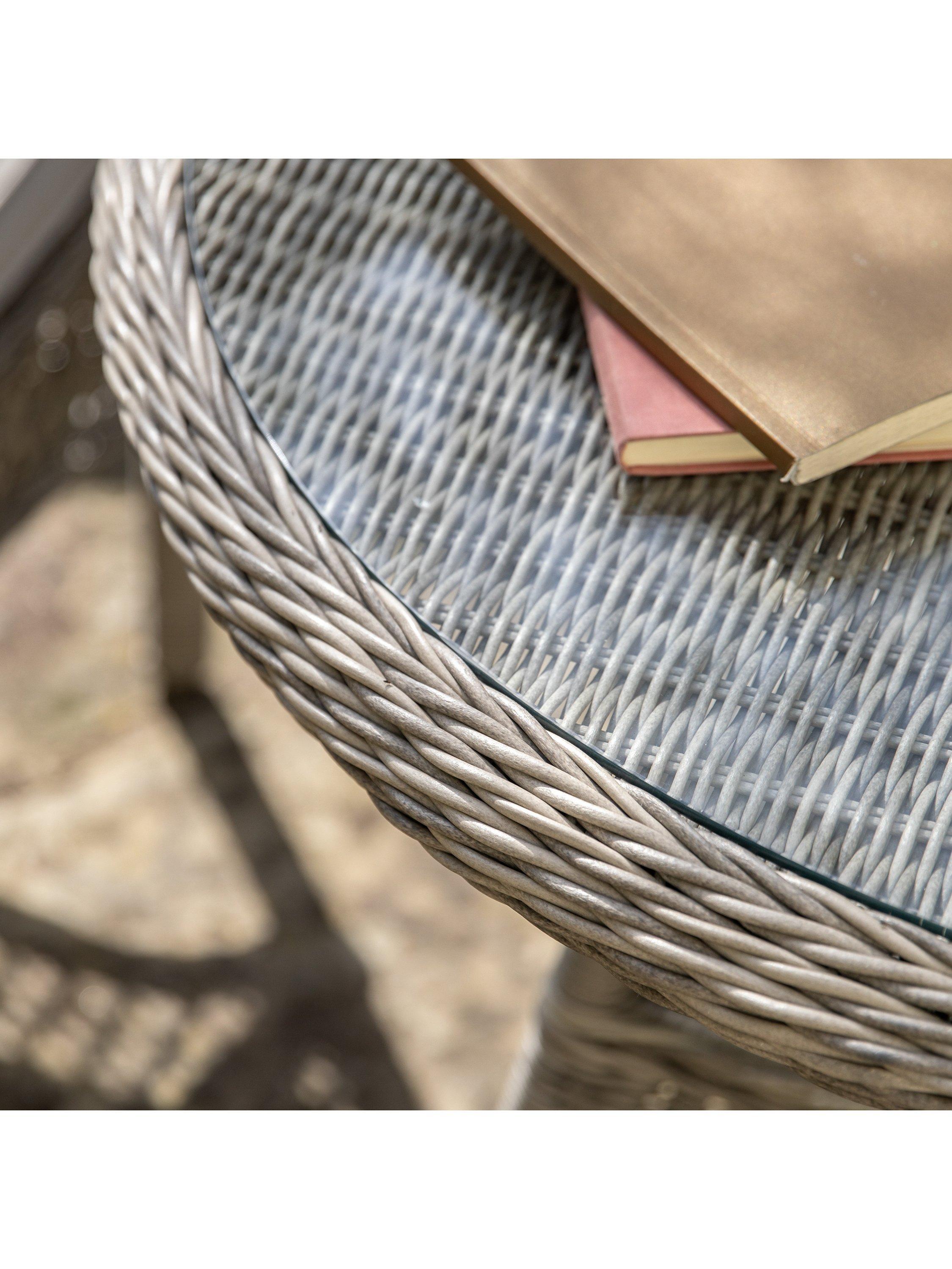 The design features an attractive hand-woven mix of close-weave and open-weave patterns, on robust yet lightweight powder-coated aluminium frames.