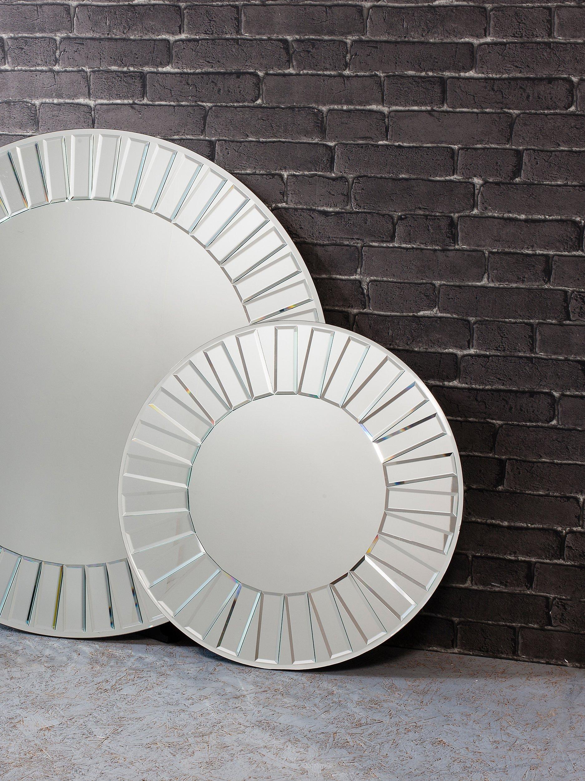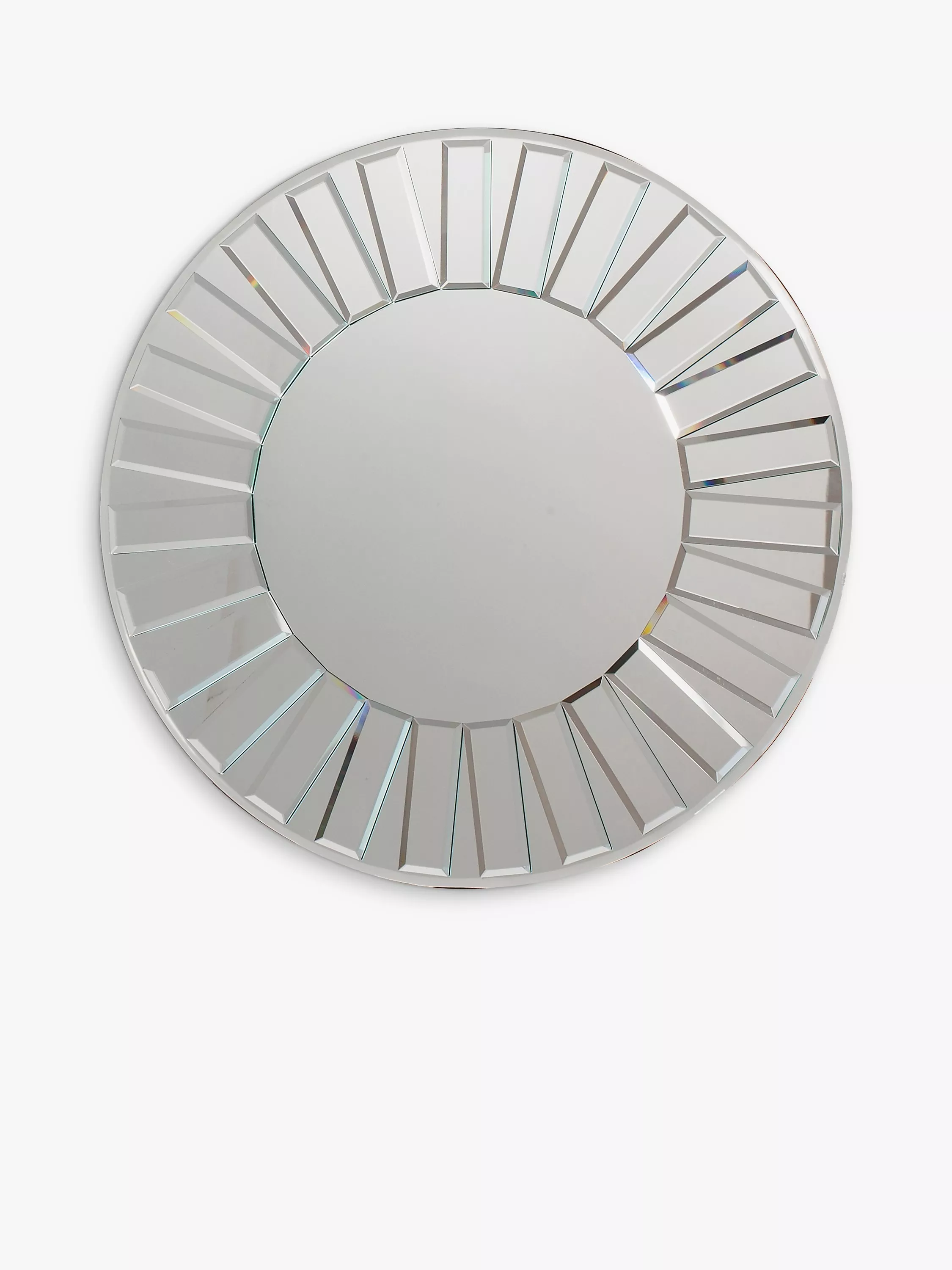A contemporary design for a hallway or living room, the Mondello mirror has a round frame made of cut bevelled glass pieces, creating a radial effect. It's ready to hang on your wall using the fittings on the back.