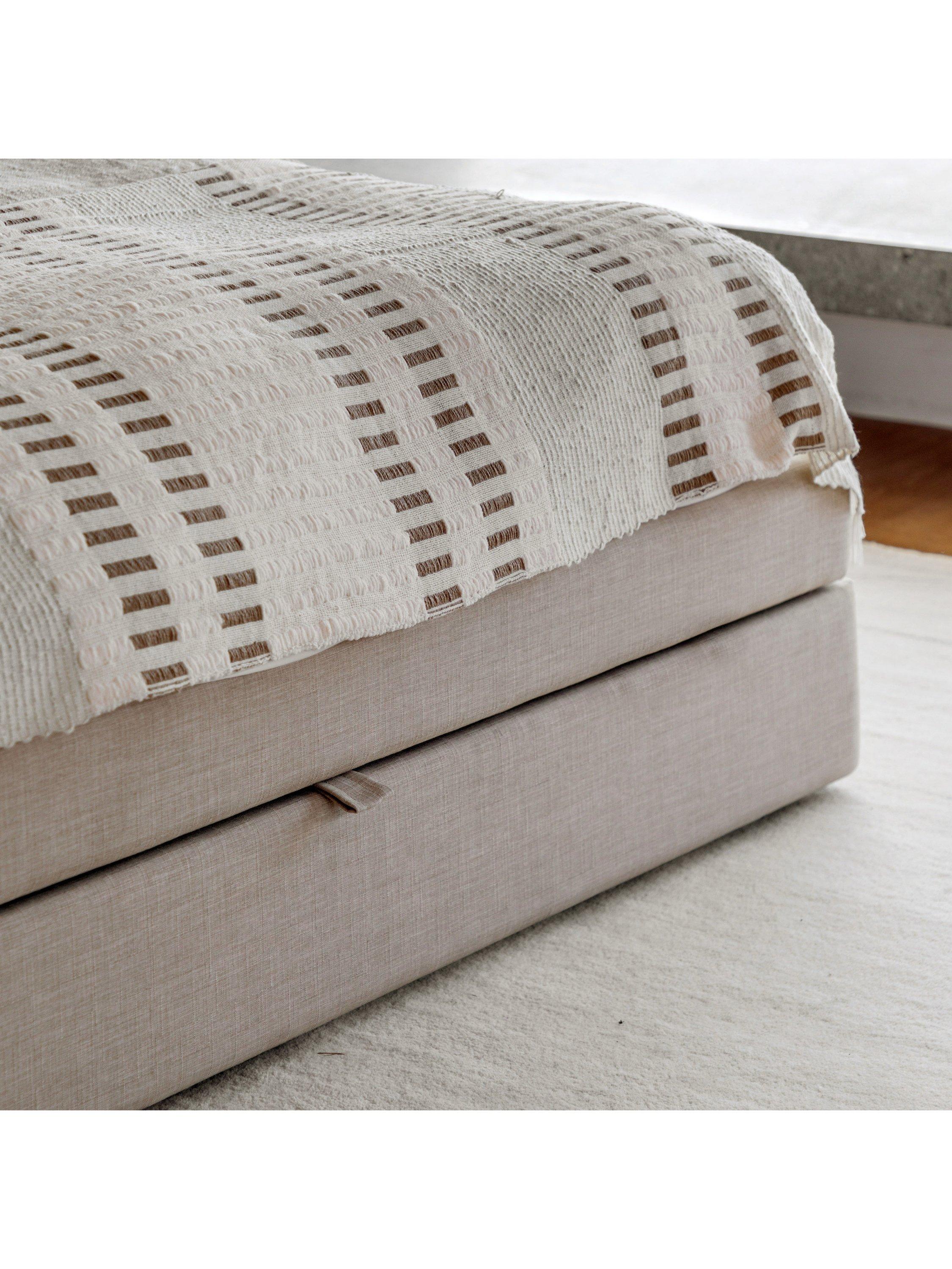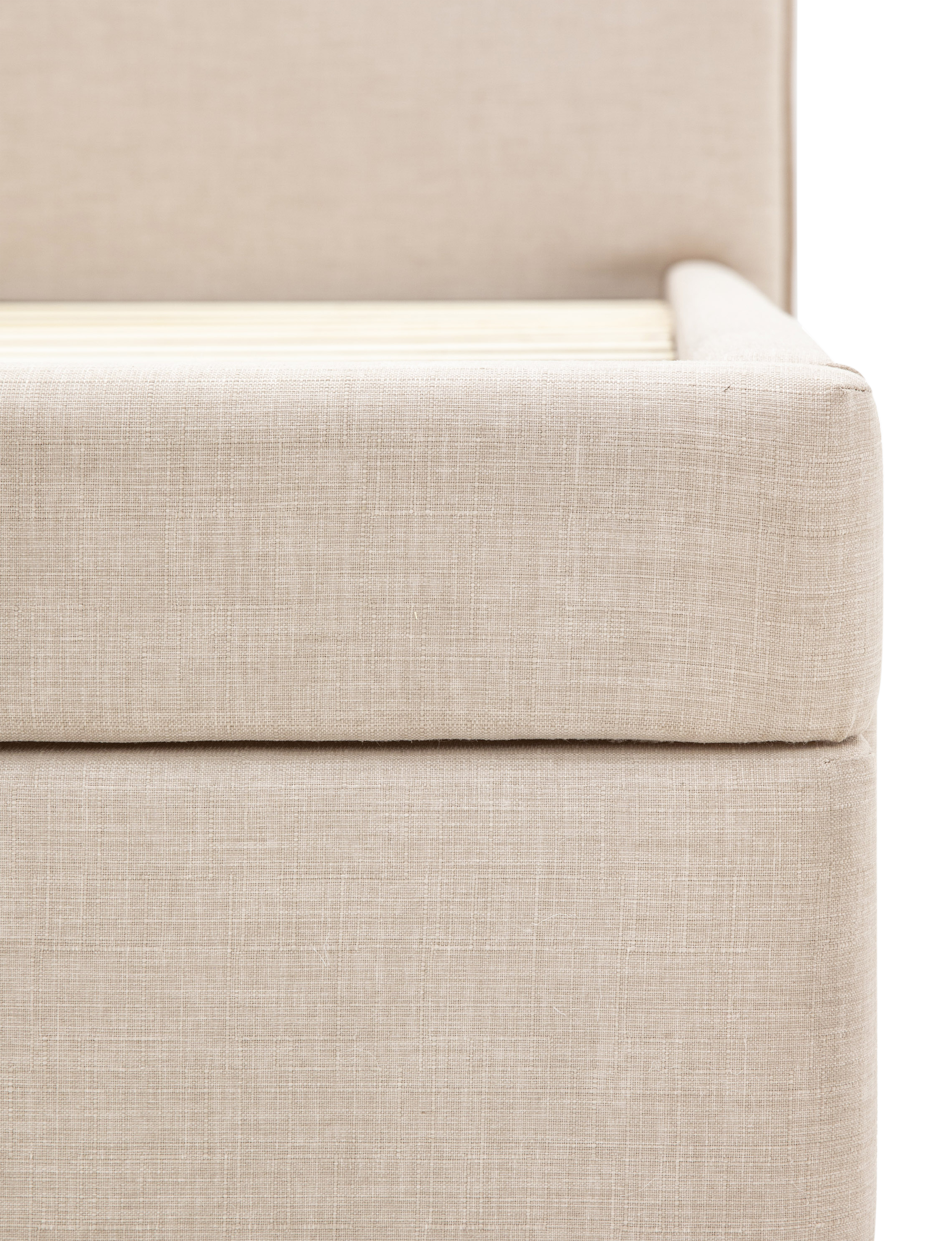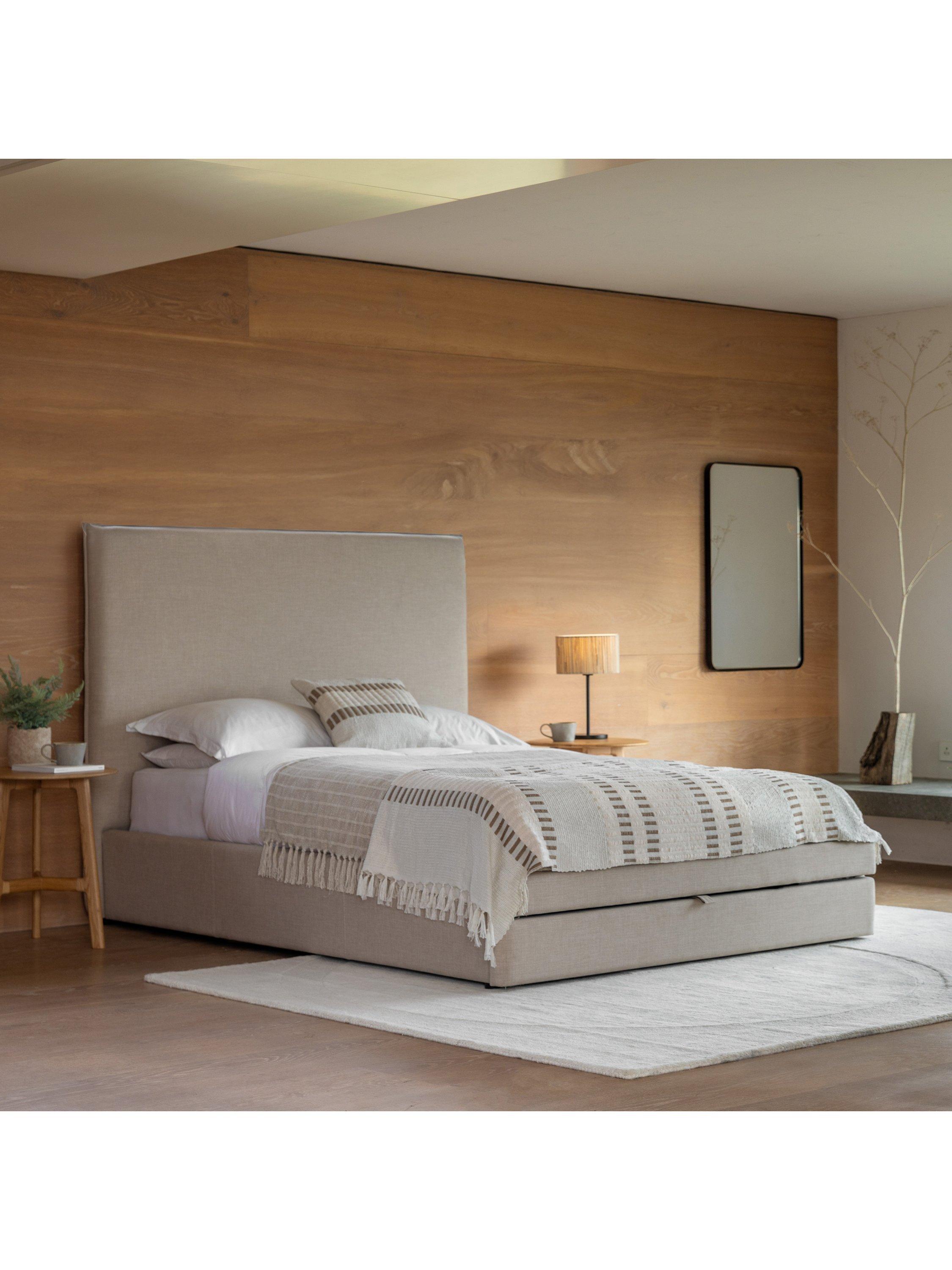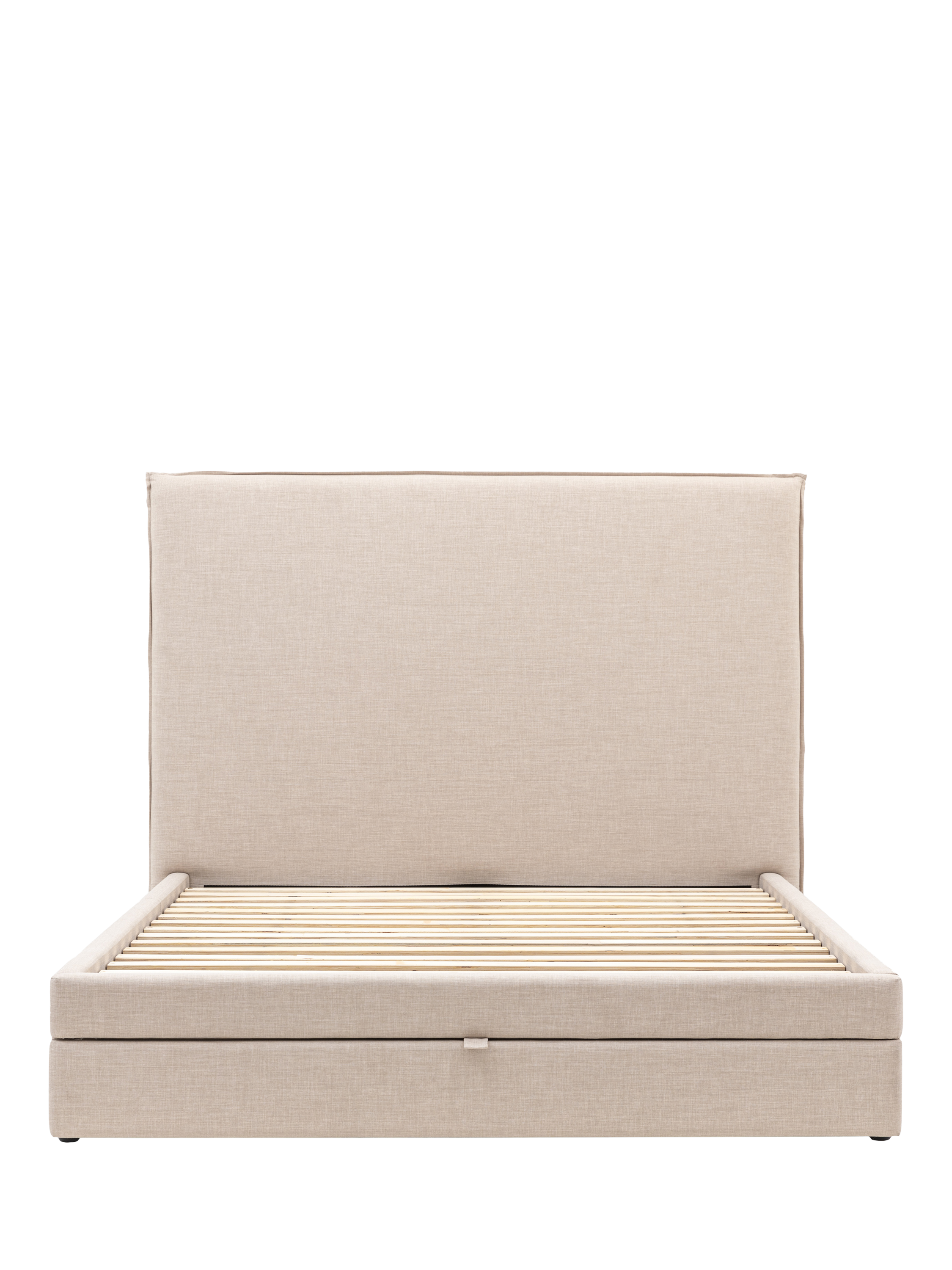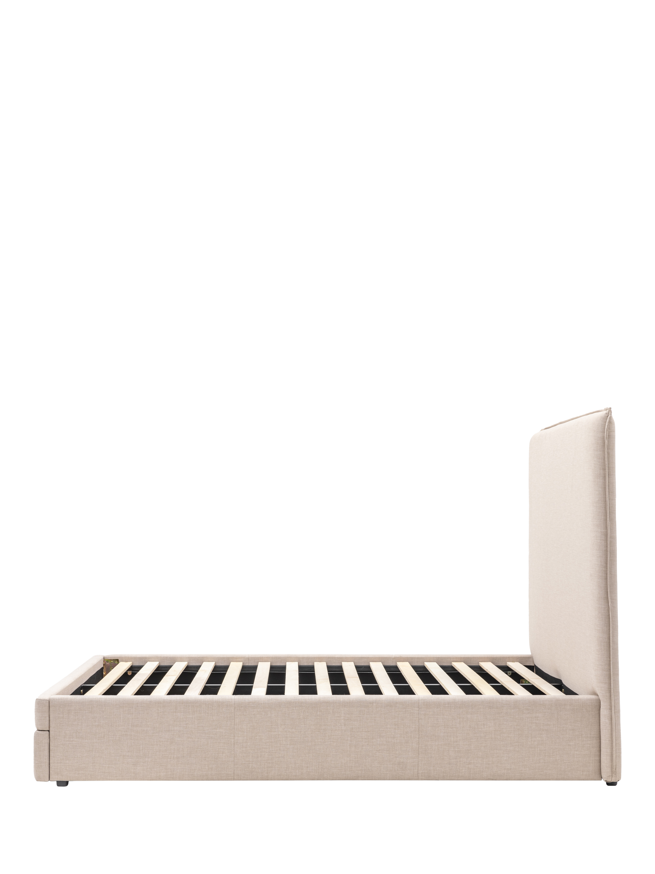 An ideal choice if you have limited storage space, there's a built-in drawer at the foot of this upholstered bed, which seamlessly blends into the frame and opens to reveal two handy storage sections. Its plush headboard also complements the clean-lined style of the frame which will look modern and minimalist in your bedroom. Solid slats provide a supportive base for your mattress.