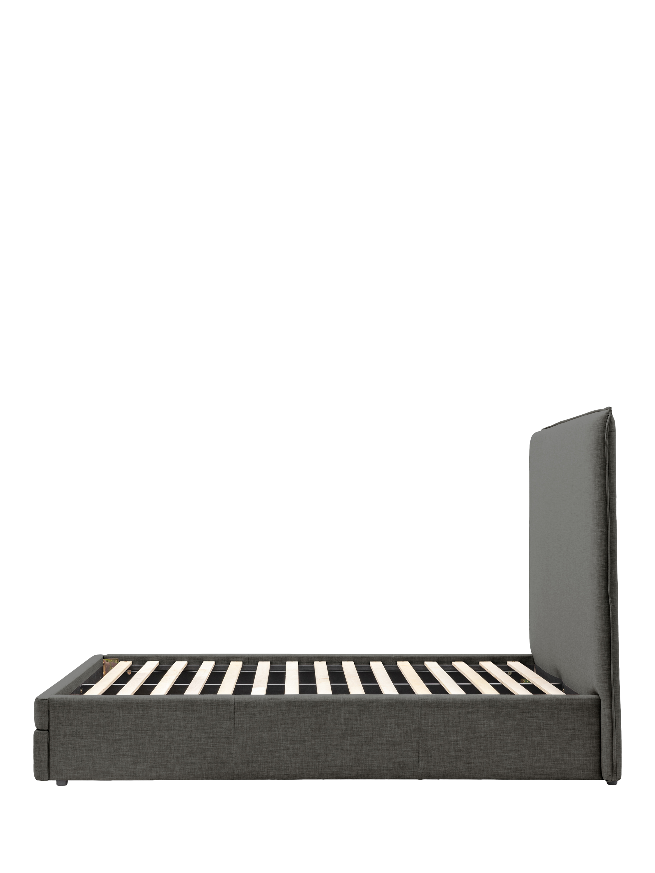 An ideal choice if you have limited storage space, there's a built-in drawer at the foot of this upholstered bed, which seamlessly blends into the frame and opens to reveal two handy storage sections. Its plush headboard also complements the clean-lined style of the frame which will look modern and minimalist in your bedroom. Solid slats provide a supportive base for your mattress.