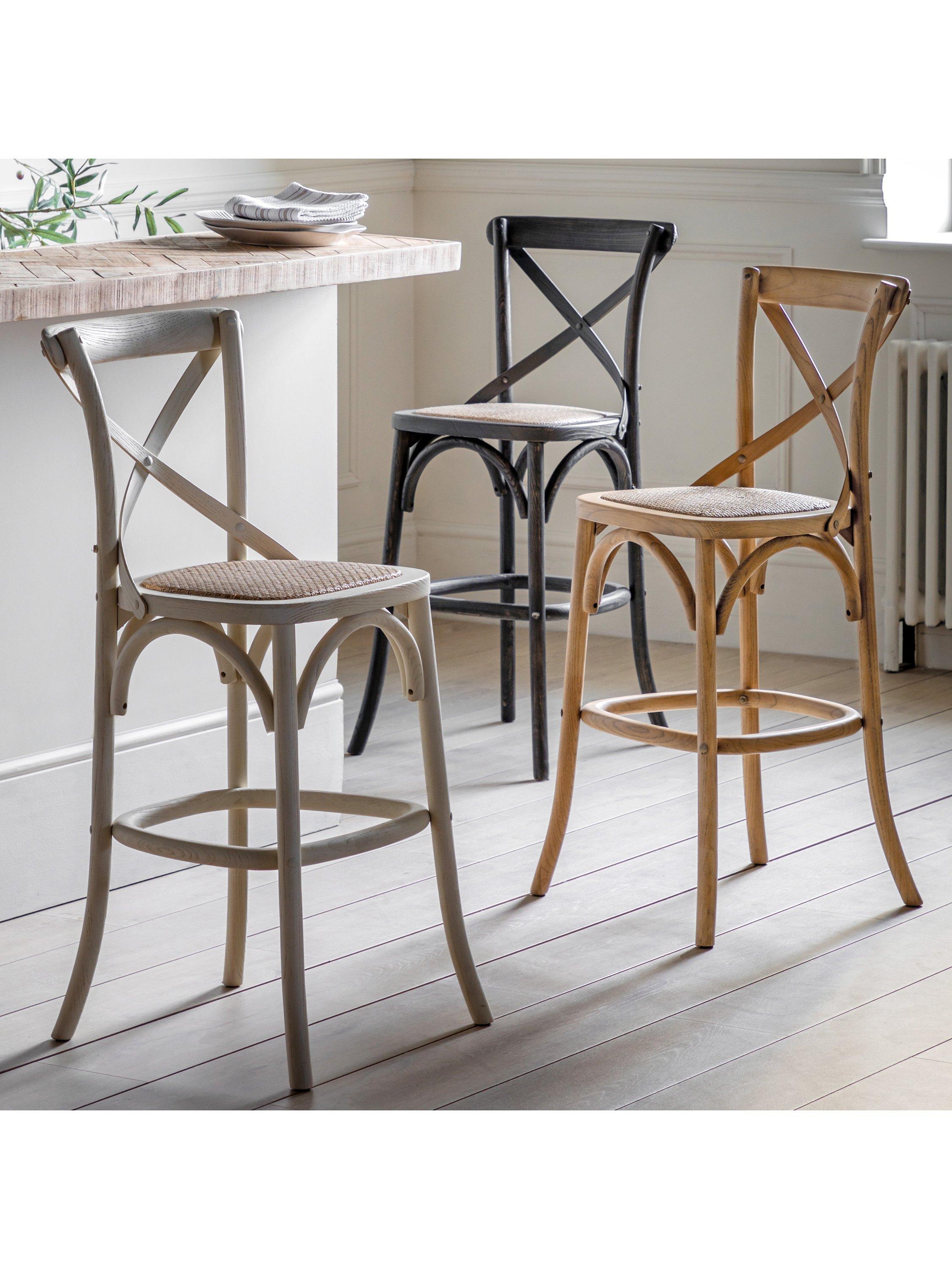 This set of two bistro style bar stool are perfect for enjoying your morning coffee and croissants. With an elegant cross back design, curved leg detail, solid rattan frames and hand woven rattan, they're perfect for bringing a little French cafe touch to your home.