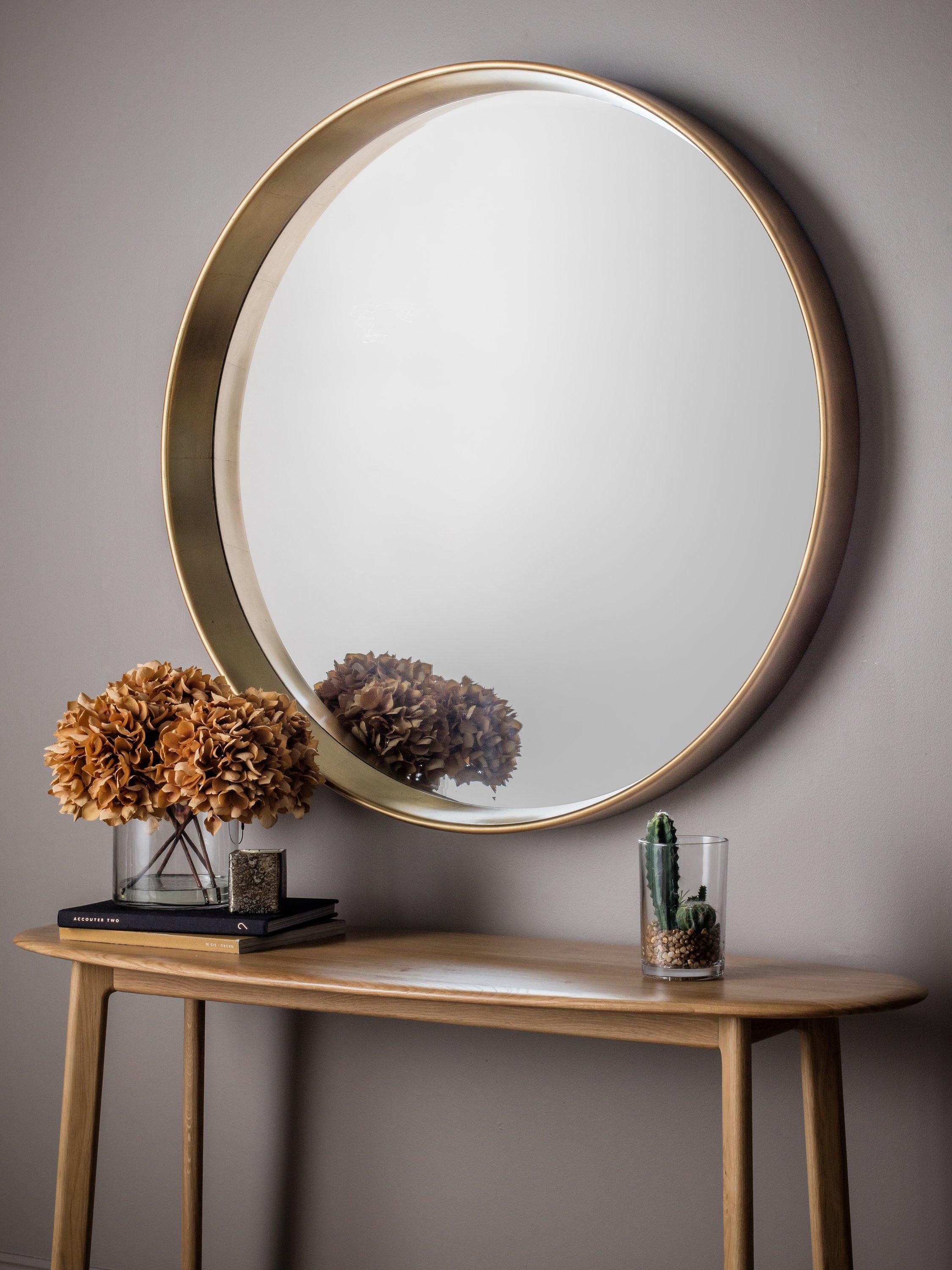 A curved ridge creates depth on this round wall mirror. It's ready to hang on your wall using the D-ring fittings on the back of the mirror.