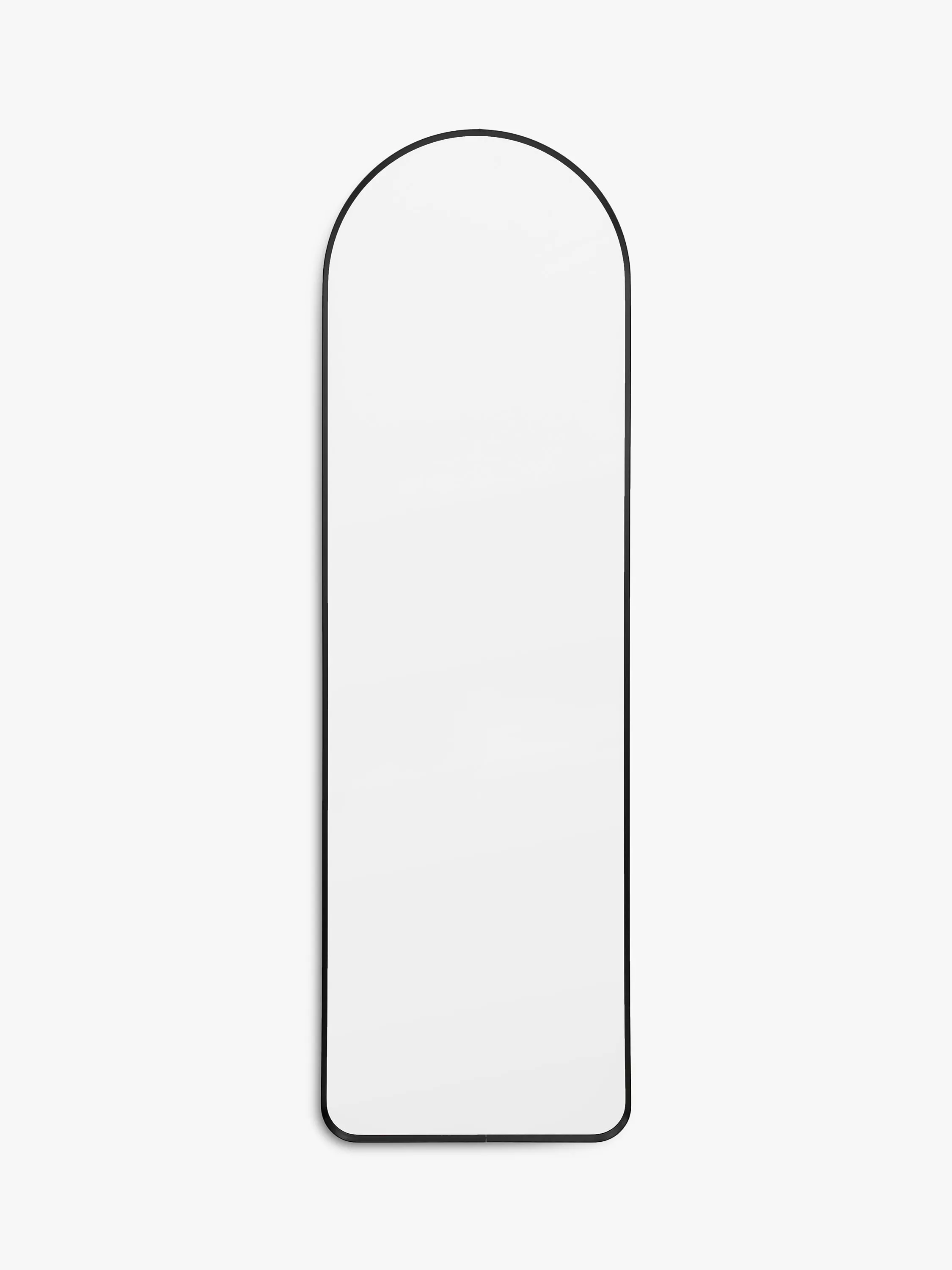 A captivating minimalistic full-length mirror designed to suit various interior styles. The thin metal frame is arched at the top, with rounded corners at the bottom.