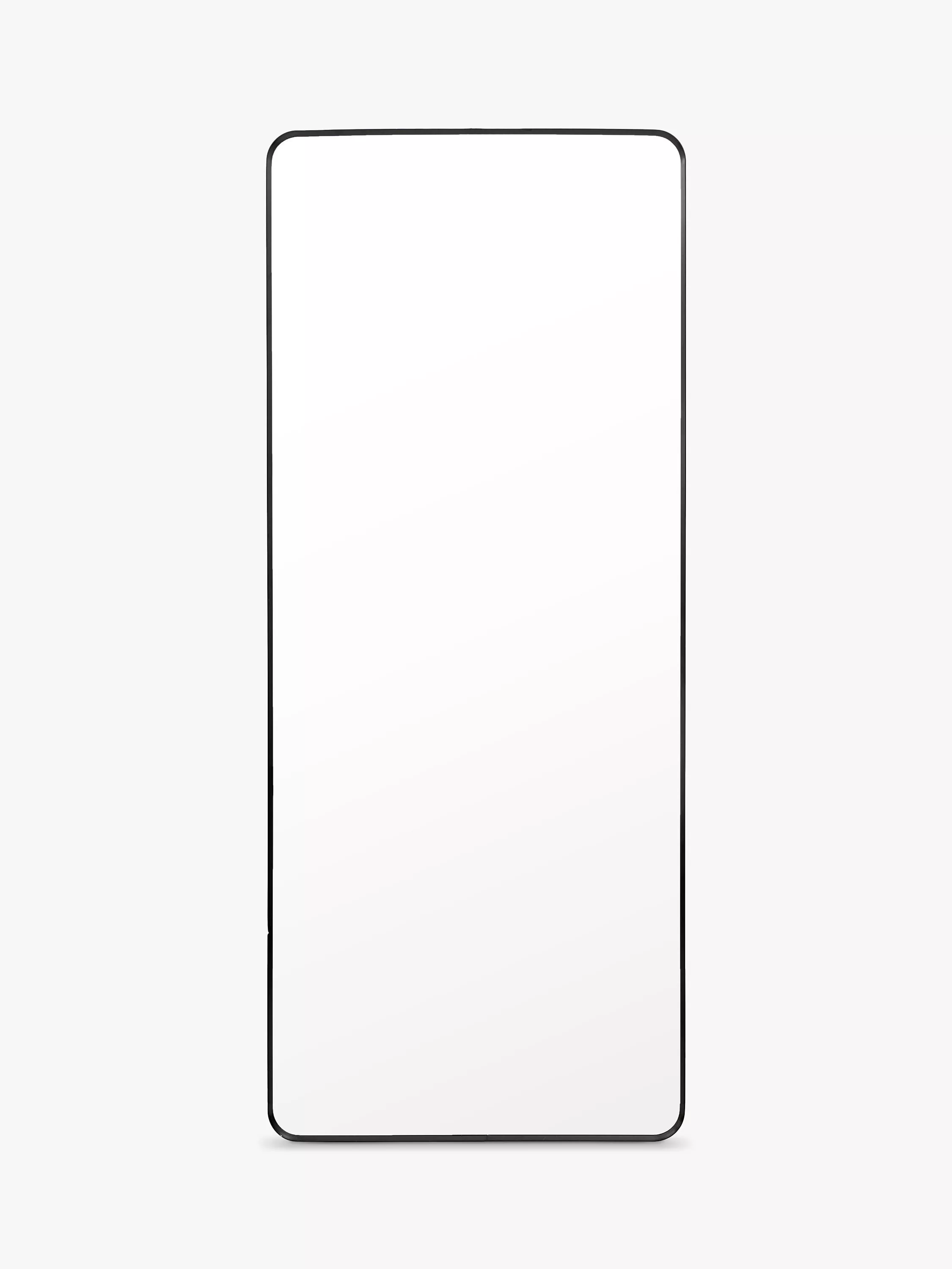 A captivating minimalistic mirror designed to suit various interior styles. The thin metal frame has rounded corners. This rectangular mirror is ideal for capturing full-length reflections and leans against a wall without having to be wall-mounted.