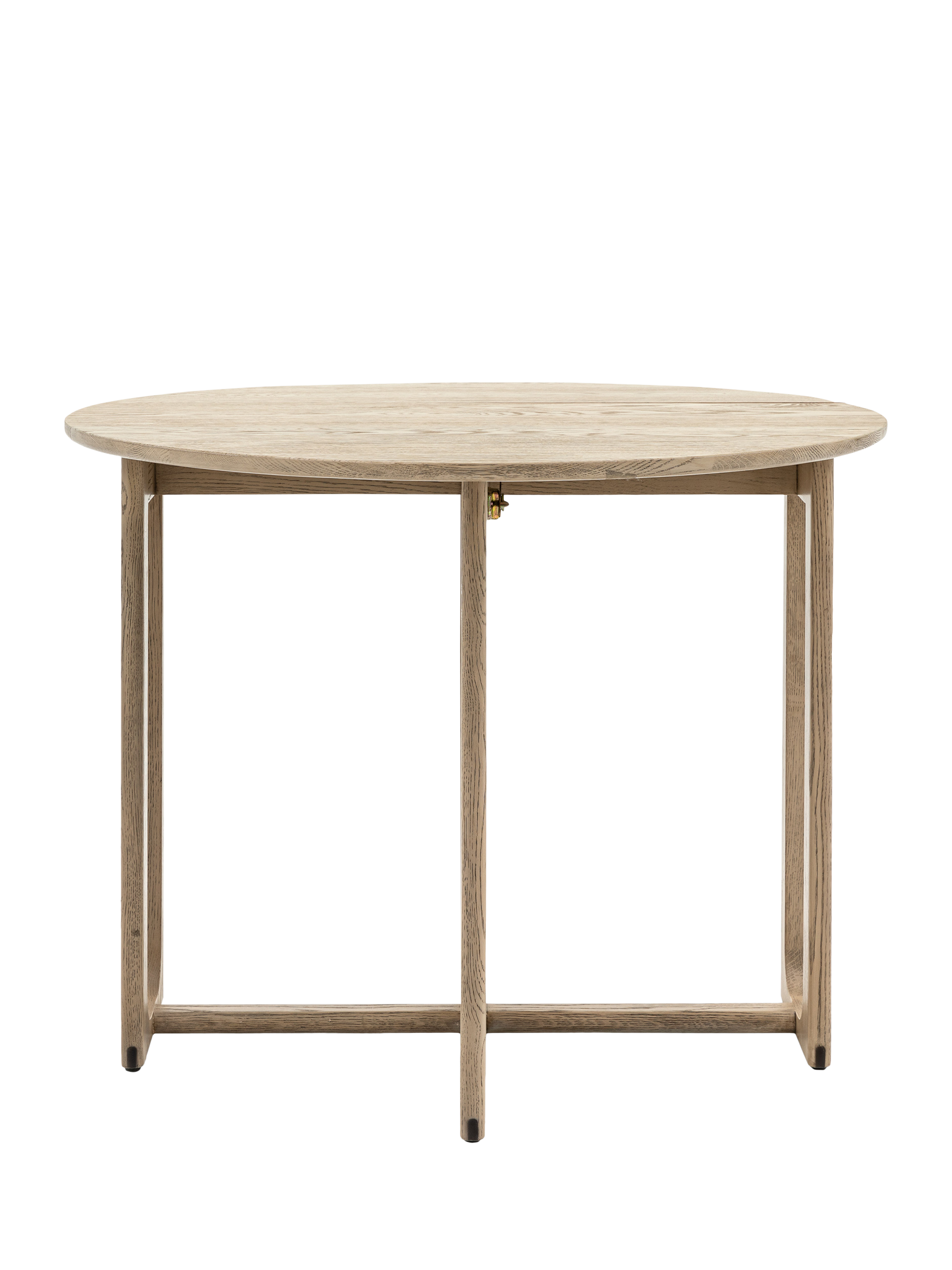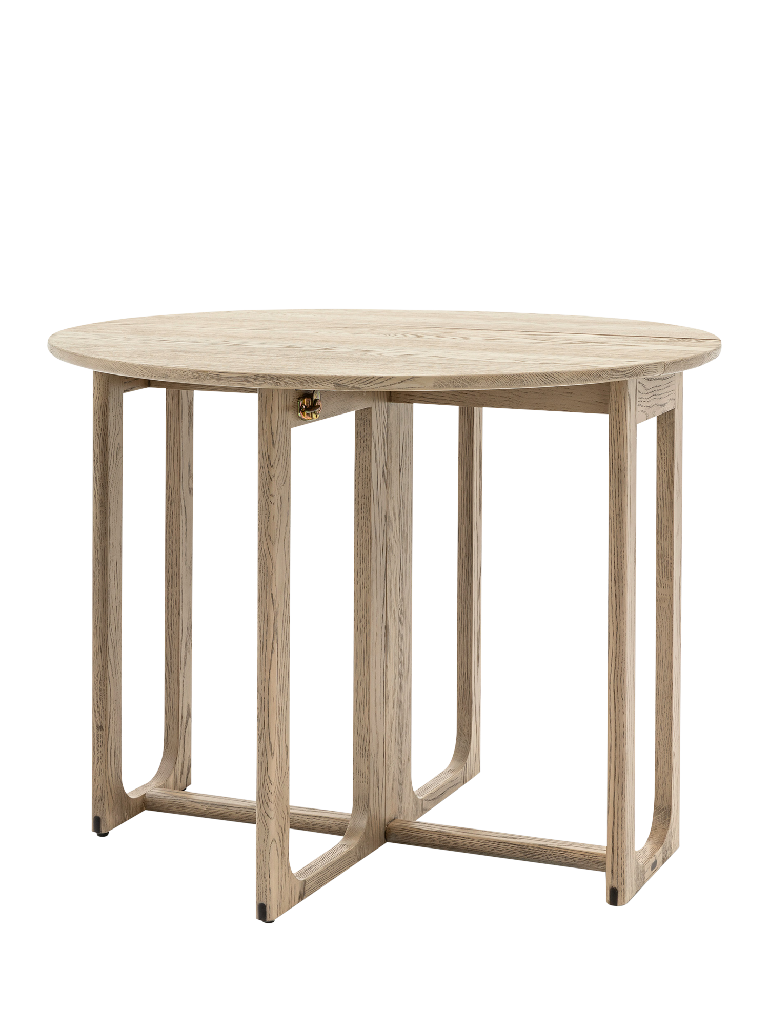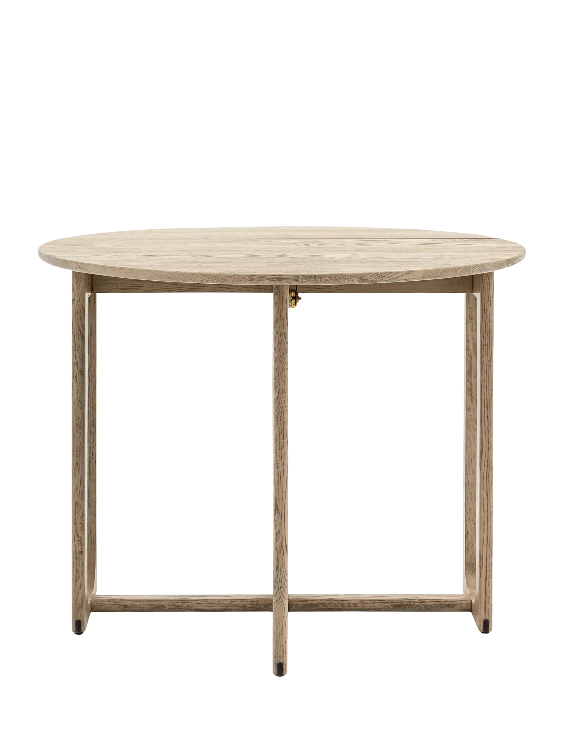Crafted from the finest oak and structural oak veneers where practical, this stunning folding dining table pairs perfectly with the matching chairs (available separately). The table, which folds for added convenience, offers elegant design with its simple round top and beautifully shaped underframe.