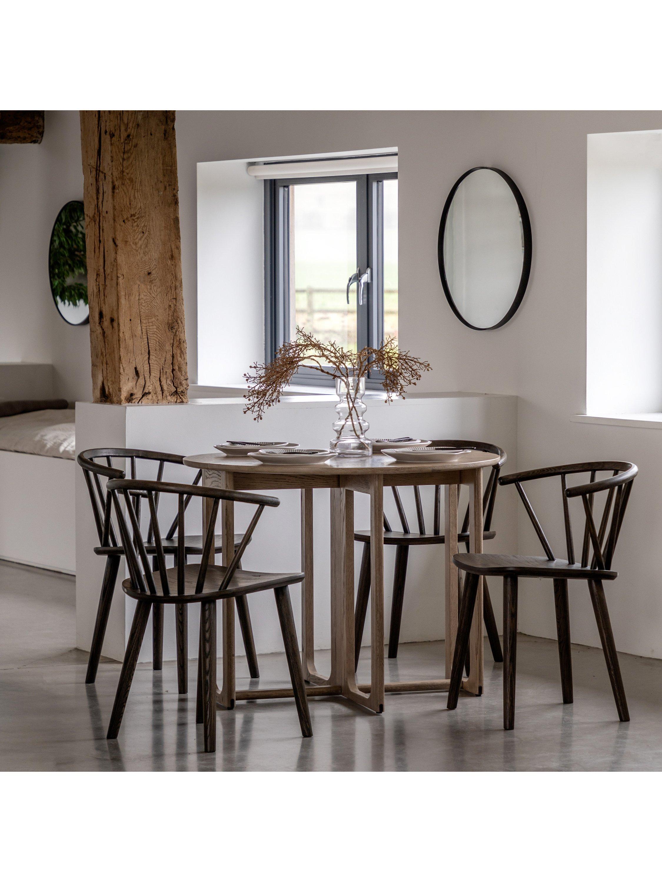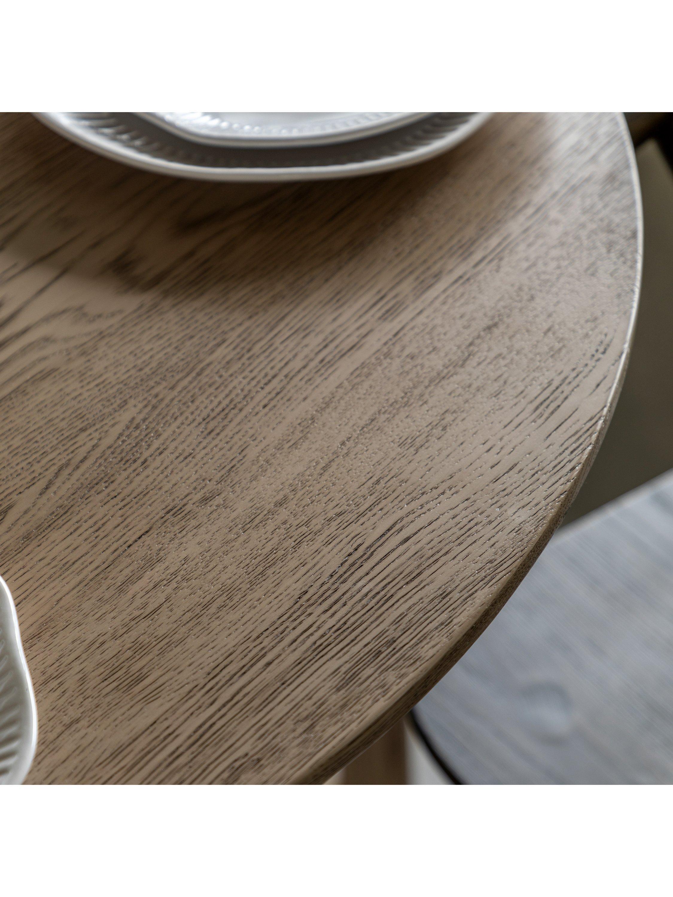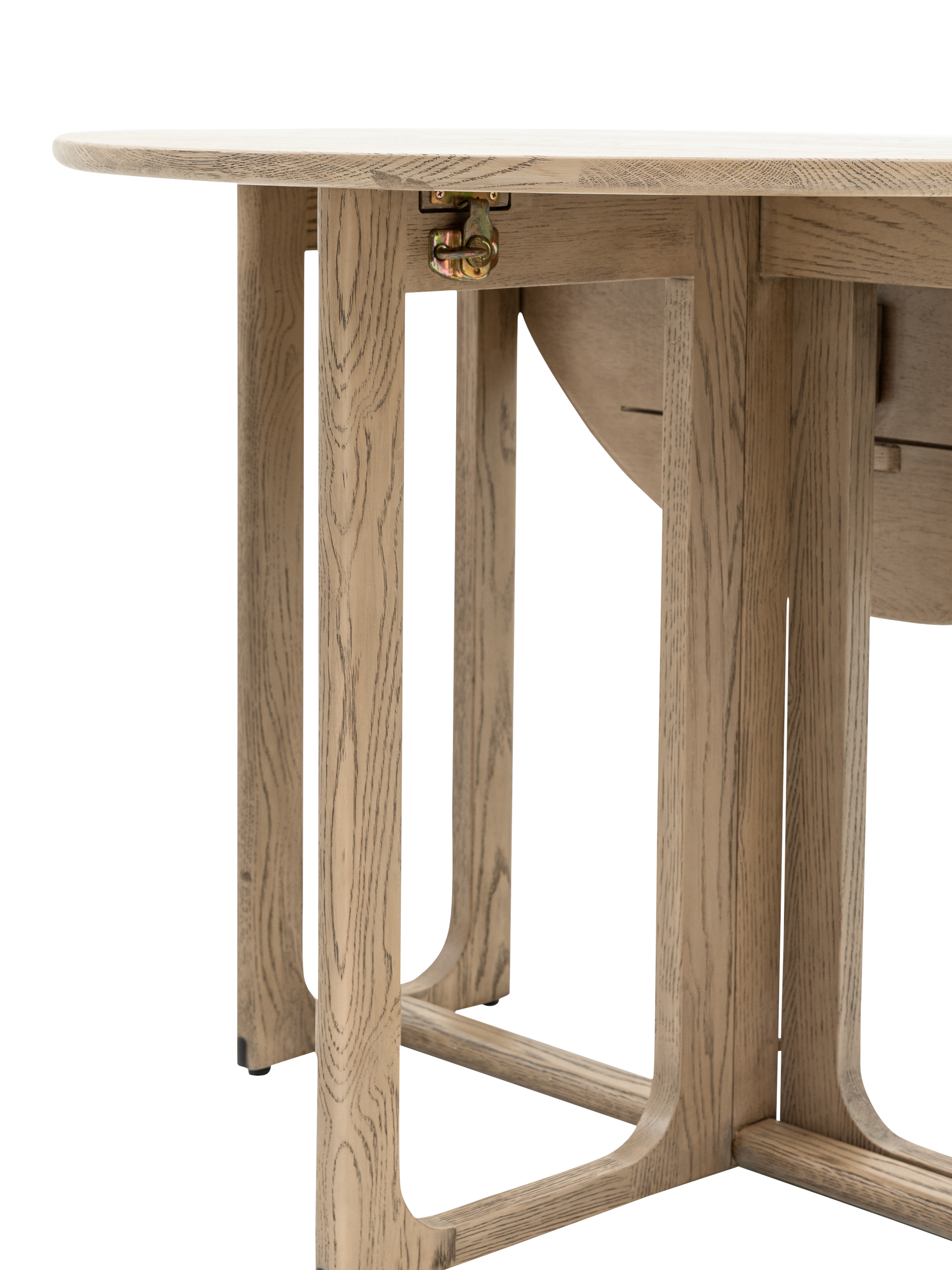 Crafted from the finest oak and structural oak veneers where practical, this stunning folding dining table pairs perfectly with the matching chairs (available separately). The table, which folds for added convenience, offers elegant design with its simple round top and beautifully shaped underframe.