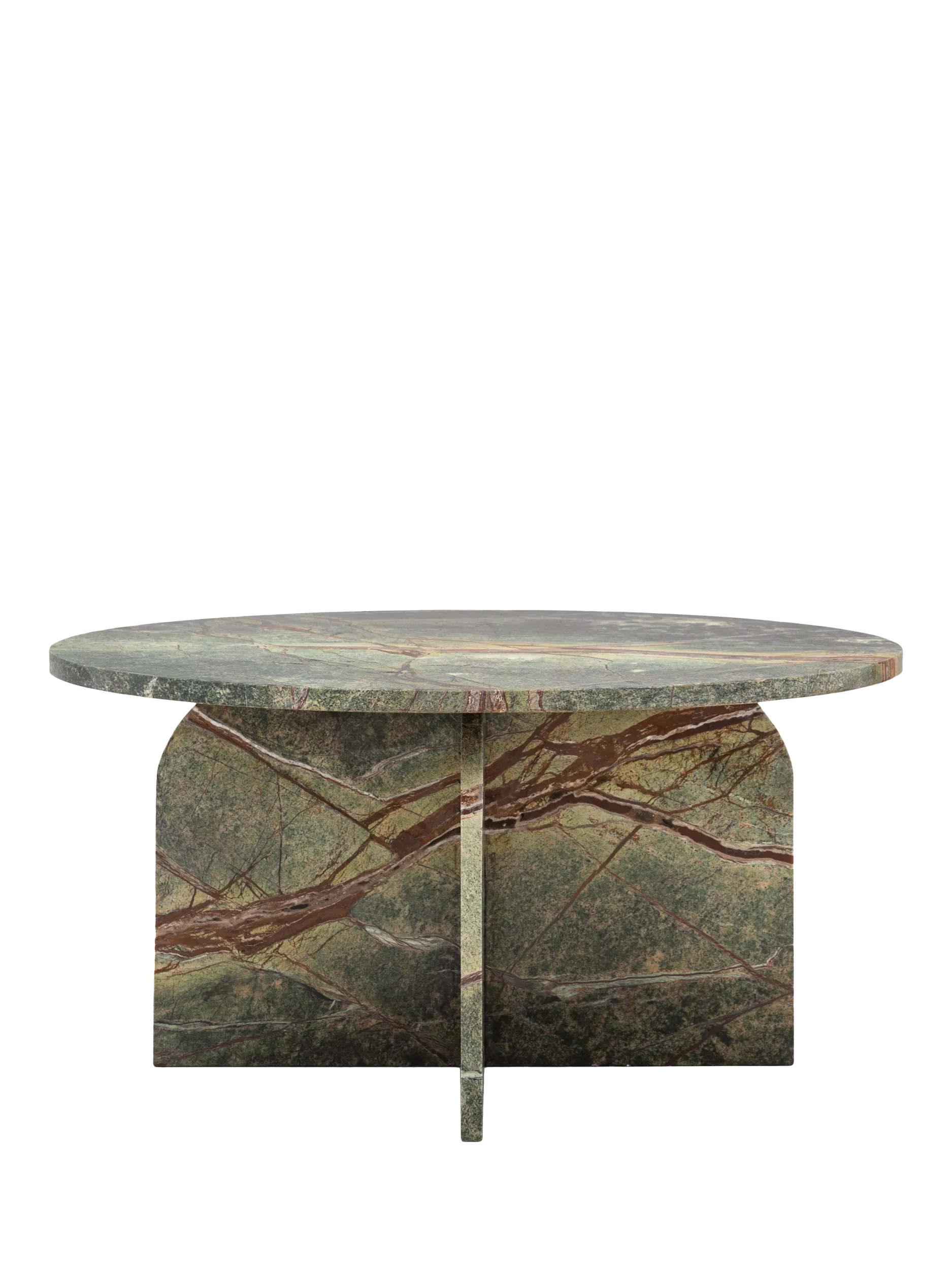 This coffee table is a breathtaking centerpiece that celebrates the natural beauty of solid marble. Its round top showcases intricate, unique veining patterns, making each piece a one-of-a-kind work of art. The smooth marble surface is paired with a sleek arched base, blending timeless elegance with modern sophistication.