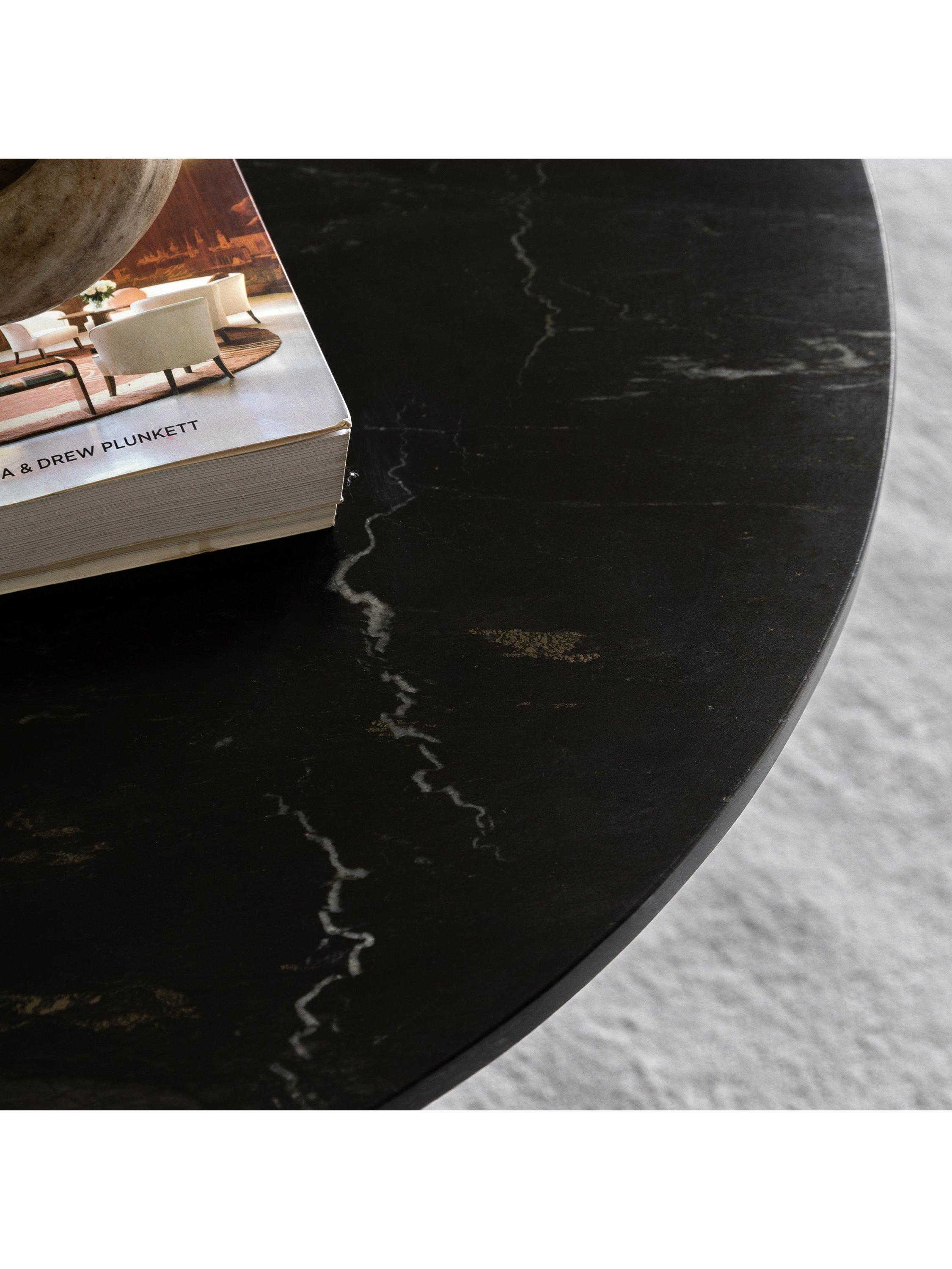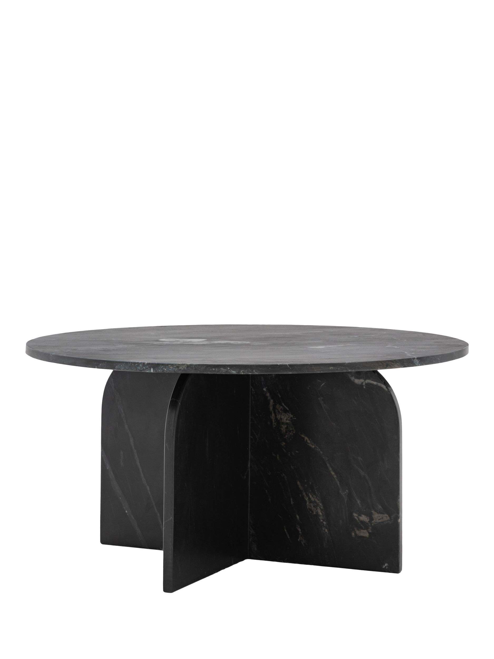 This coffee table is a breathtaking centerpiece that celebrates the natural beauty of solid marble. Its round top showcases intricate, unique veining patterns, making each piece a one-of-a-kind work of art. The smooth marble surface is paired with a sleek arched base, blending timeless elegance with modern sophistication.