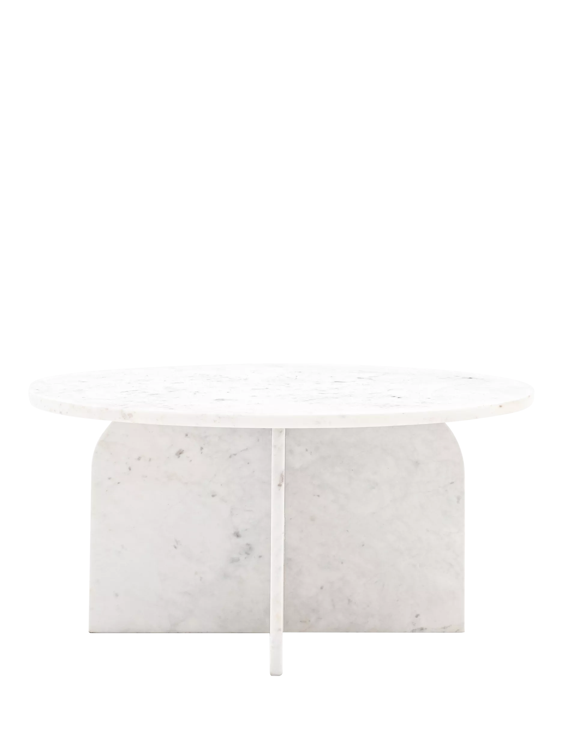 This coffee table is a breathtaking centerpiece that celebrates the natural beauty of solid marble. Its round top showcases intricate, unique veining patterns, making each piece a one-of-a-kind work of art. The smooth marble surface is paired with a sleek arched base, blending timeless elegance with modern sophistication.