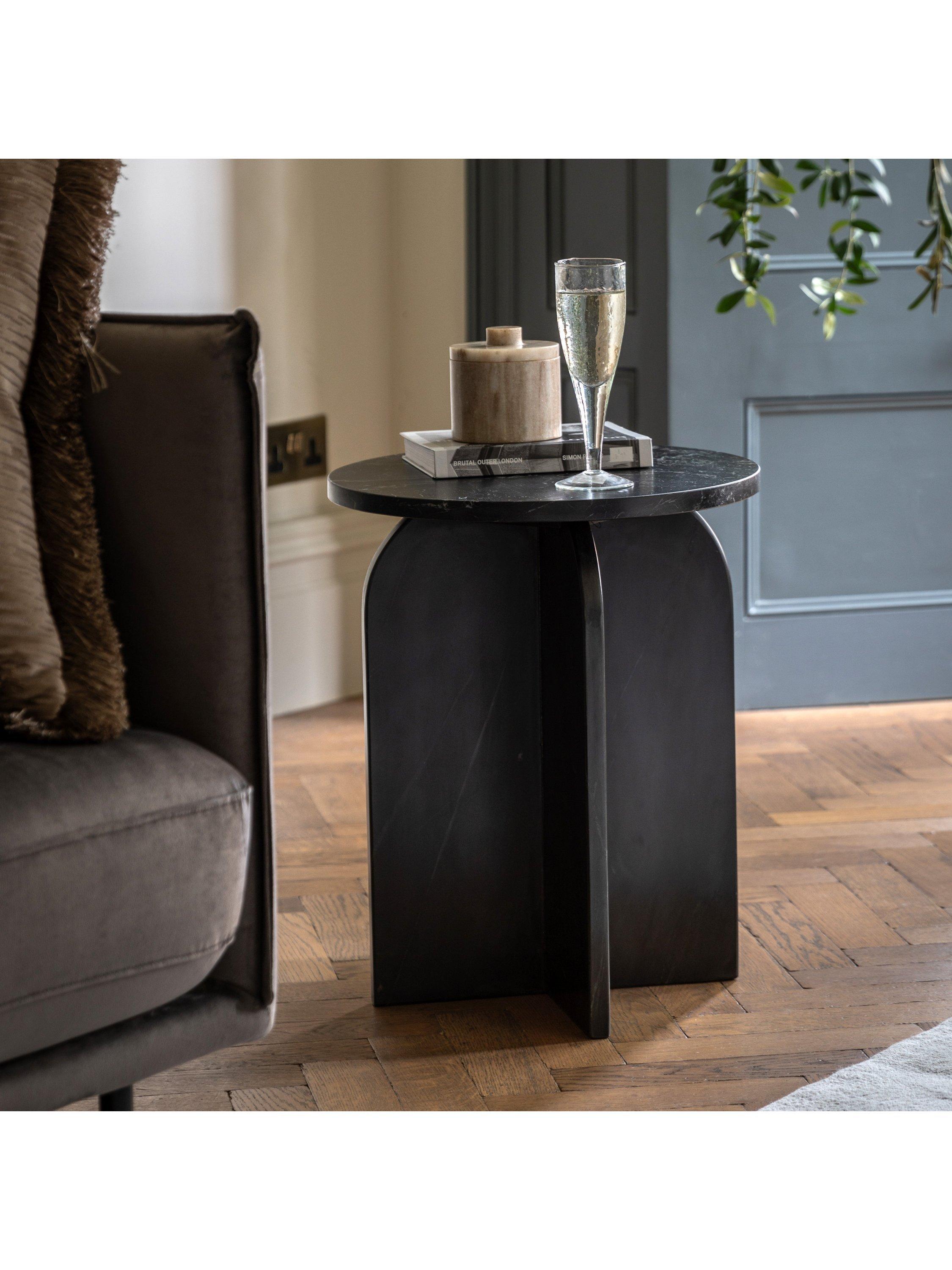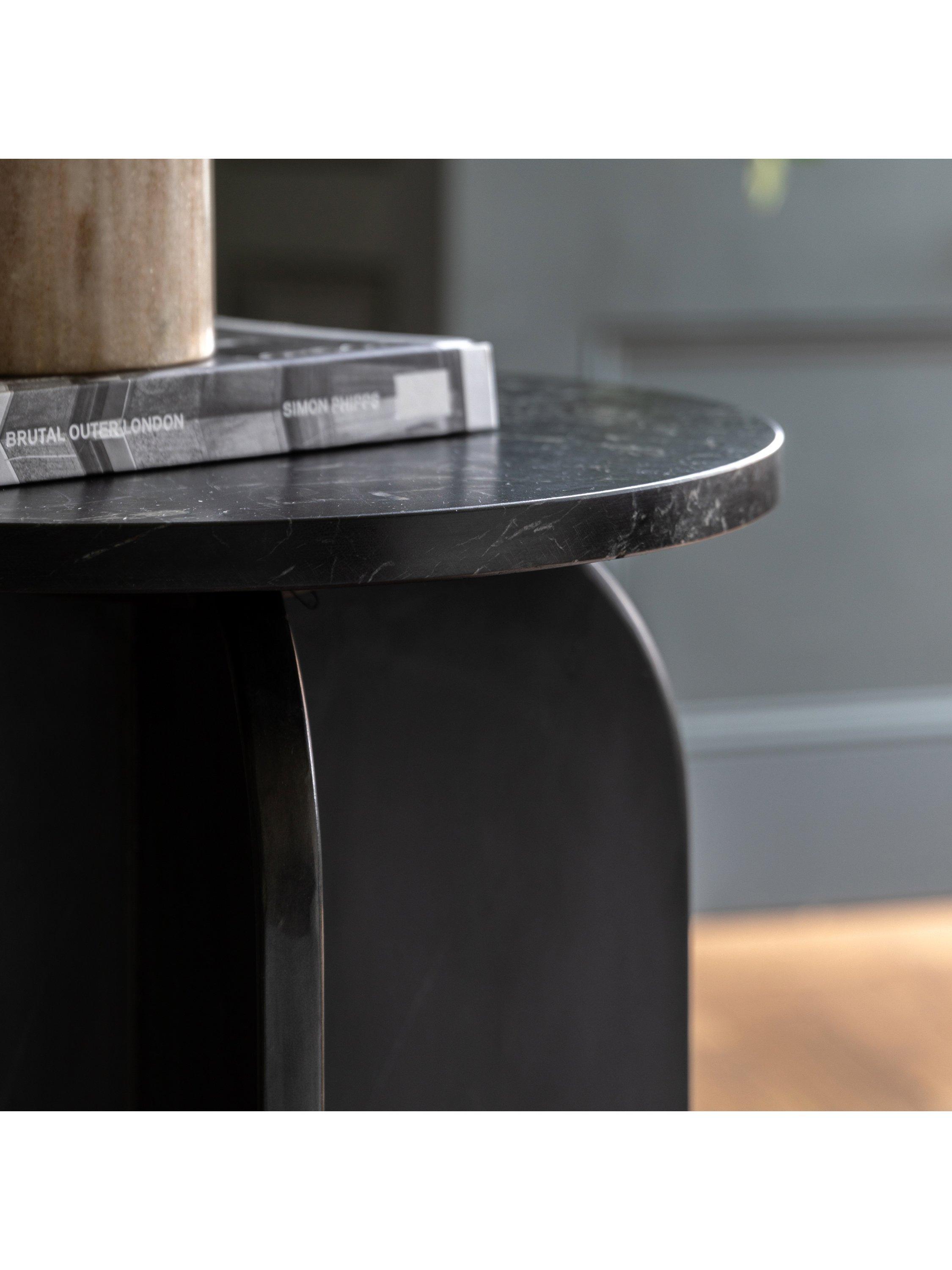 Add a touch of style to a room with this beautiful table, crafted from marble. The solid top and base show the natural pattern of the marble to great effect whilst the base features gently curved tops to create a stunning design feature.