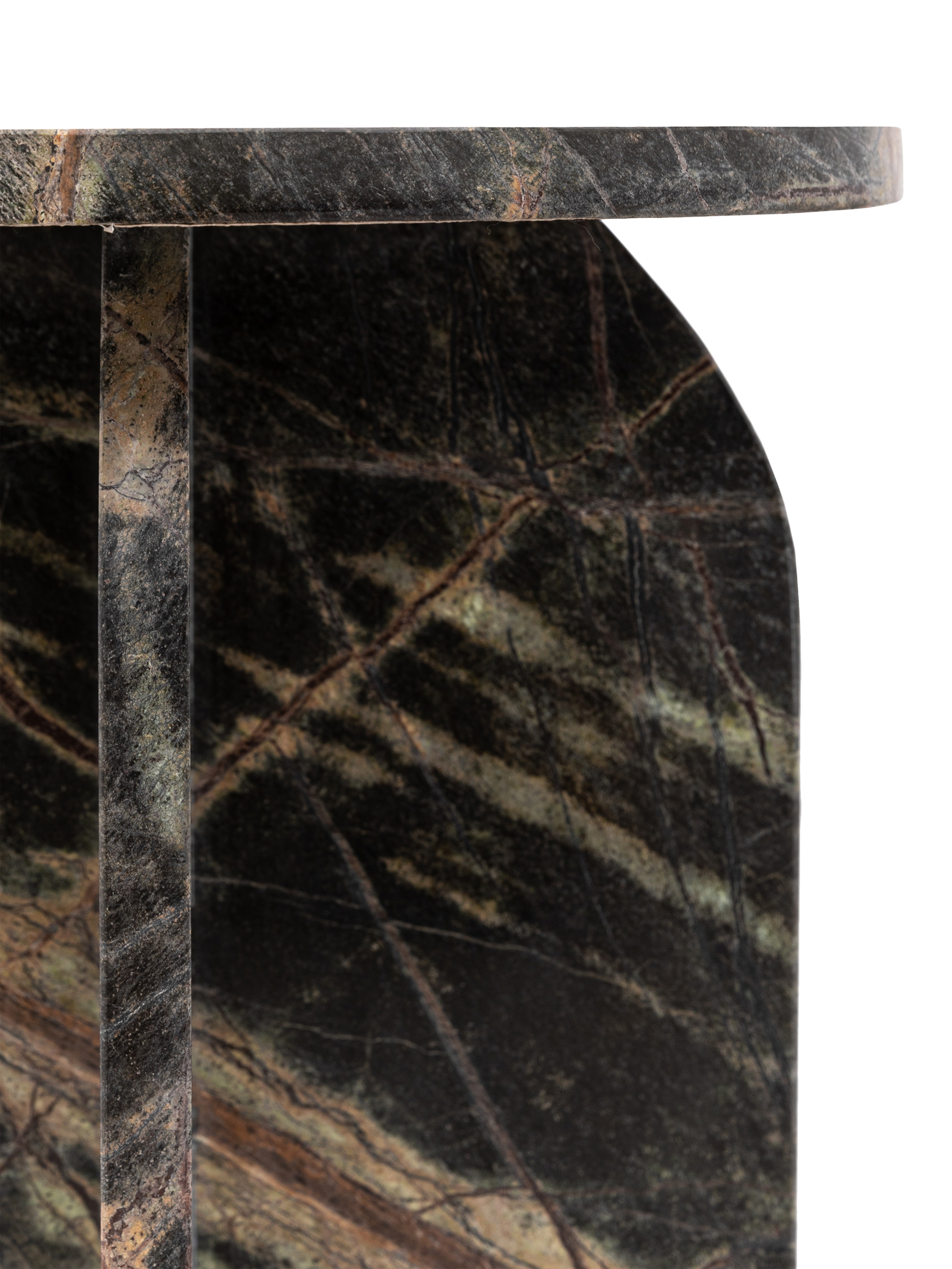 Add a touch of style to a room with this beautiful table, crafted from marble. The solid top and base show the natural pattern of the marble to great effect whilst the base features gently curved tops to create a stunning design feature.