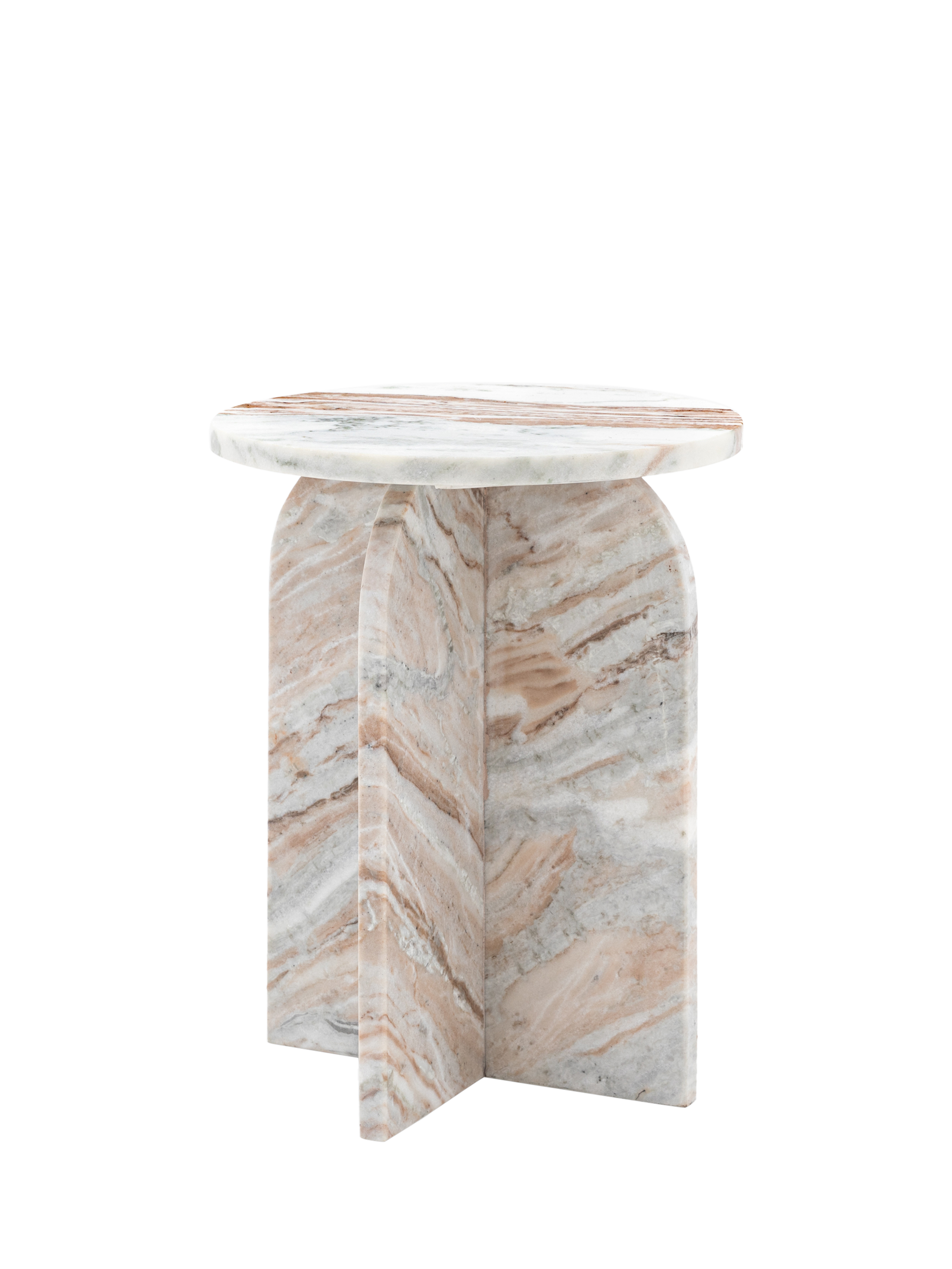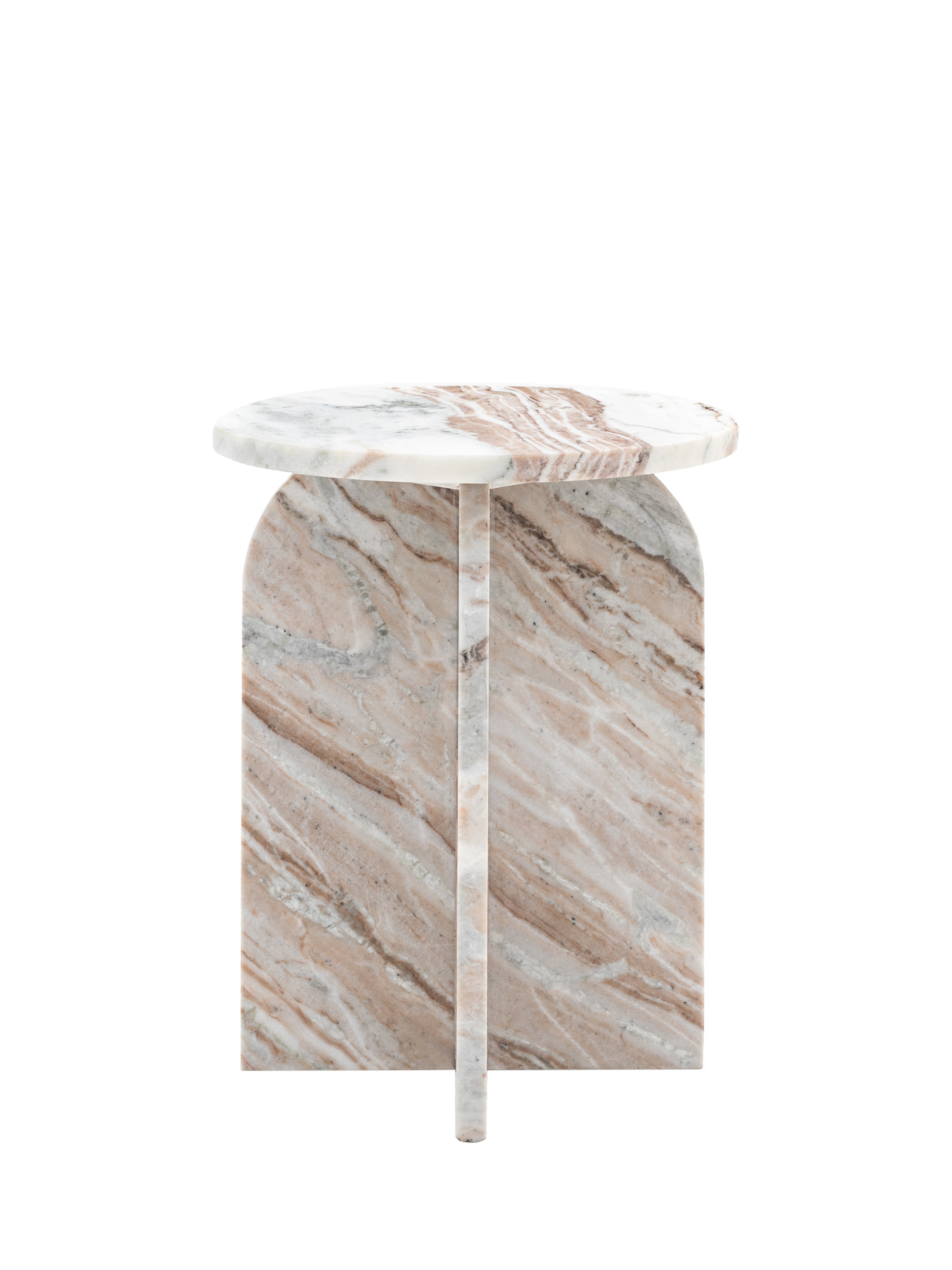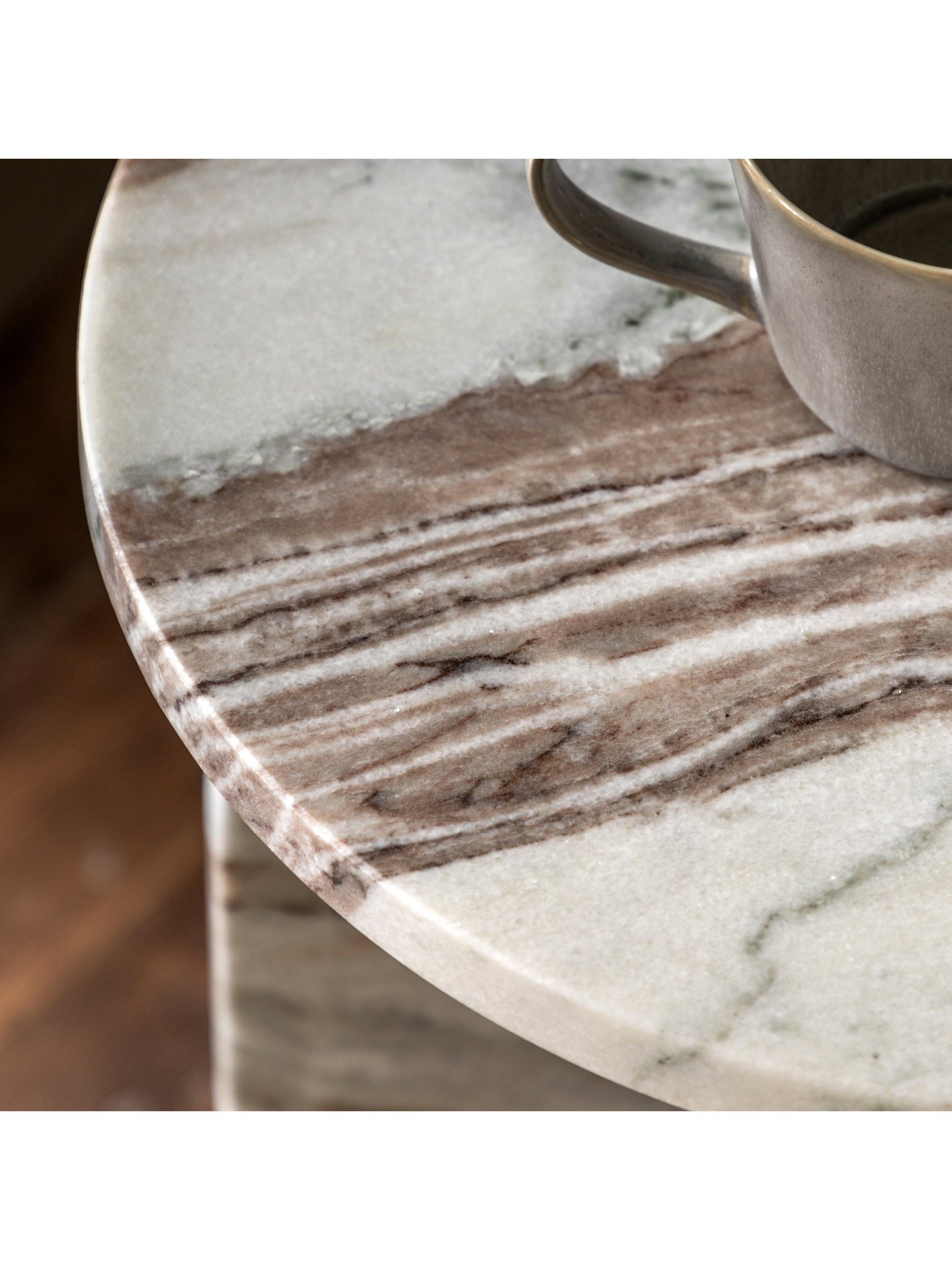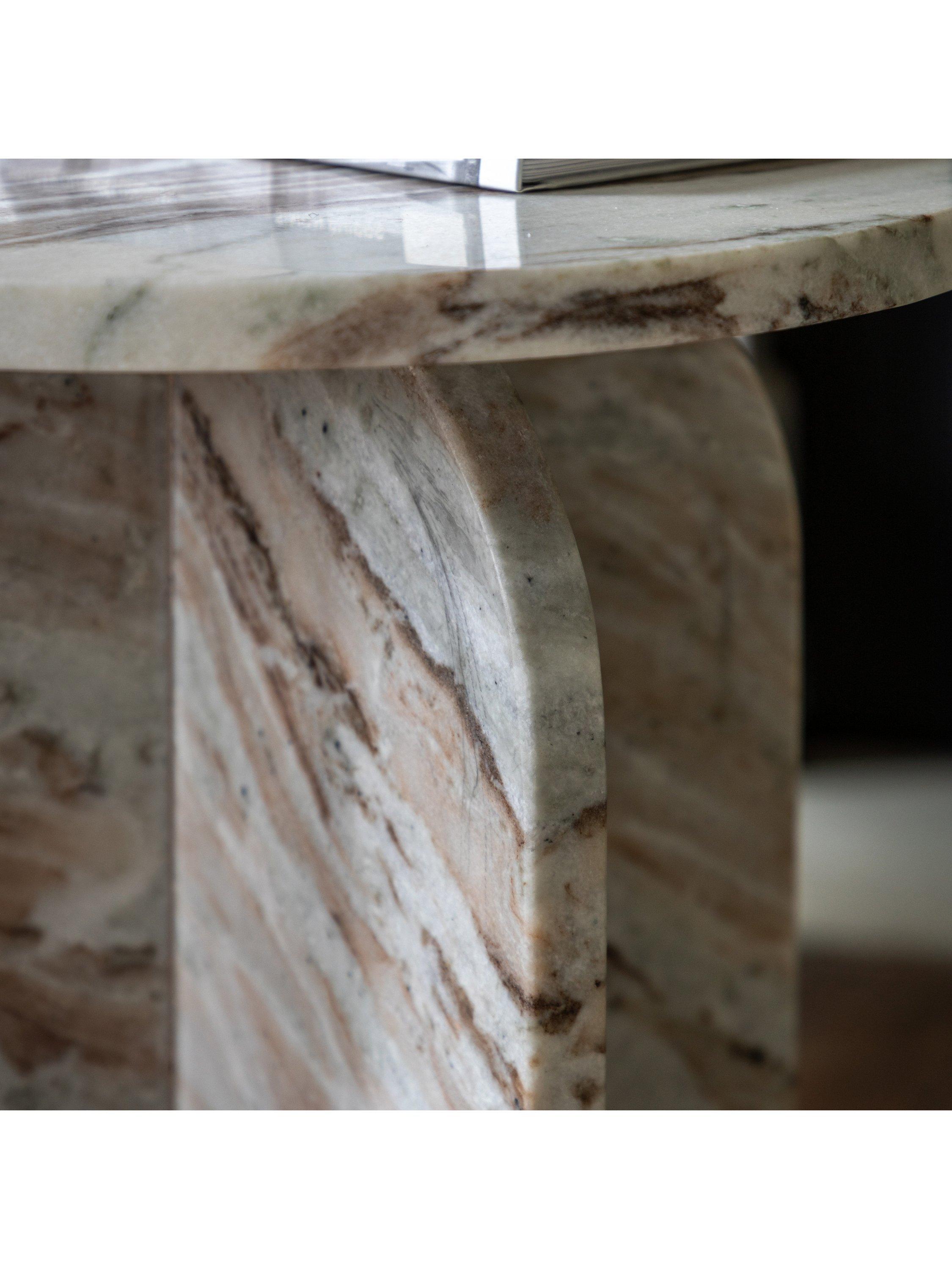 Add a touch of style to a room with this beautiful table, crafted from marble. The solid top and base show the natural pattern of the marble to great effect whilst the base features gently curved tops to create a stunning design feature.