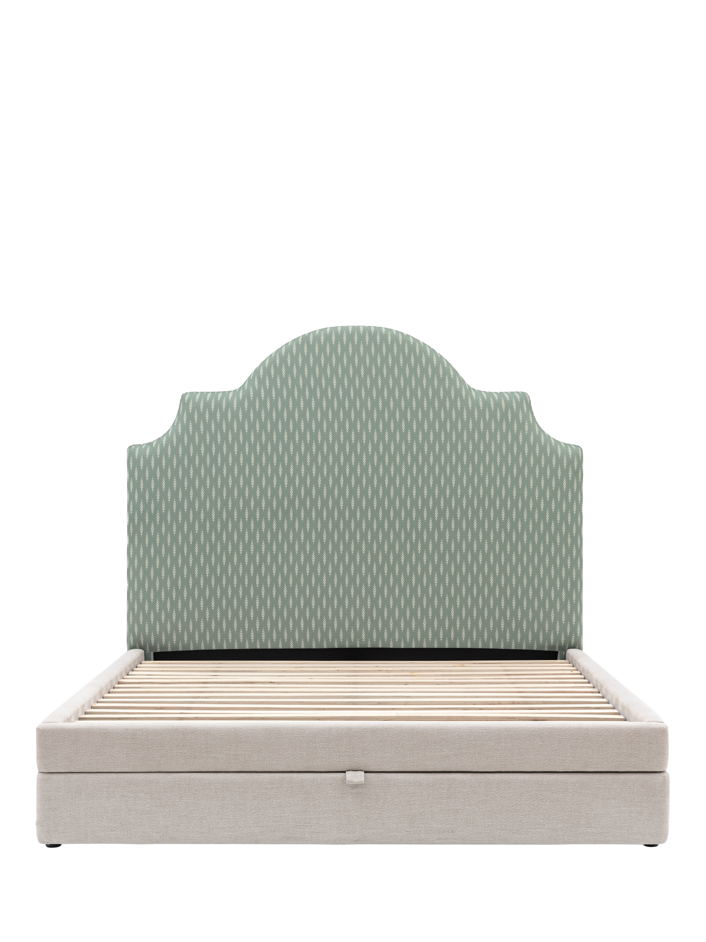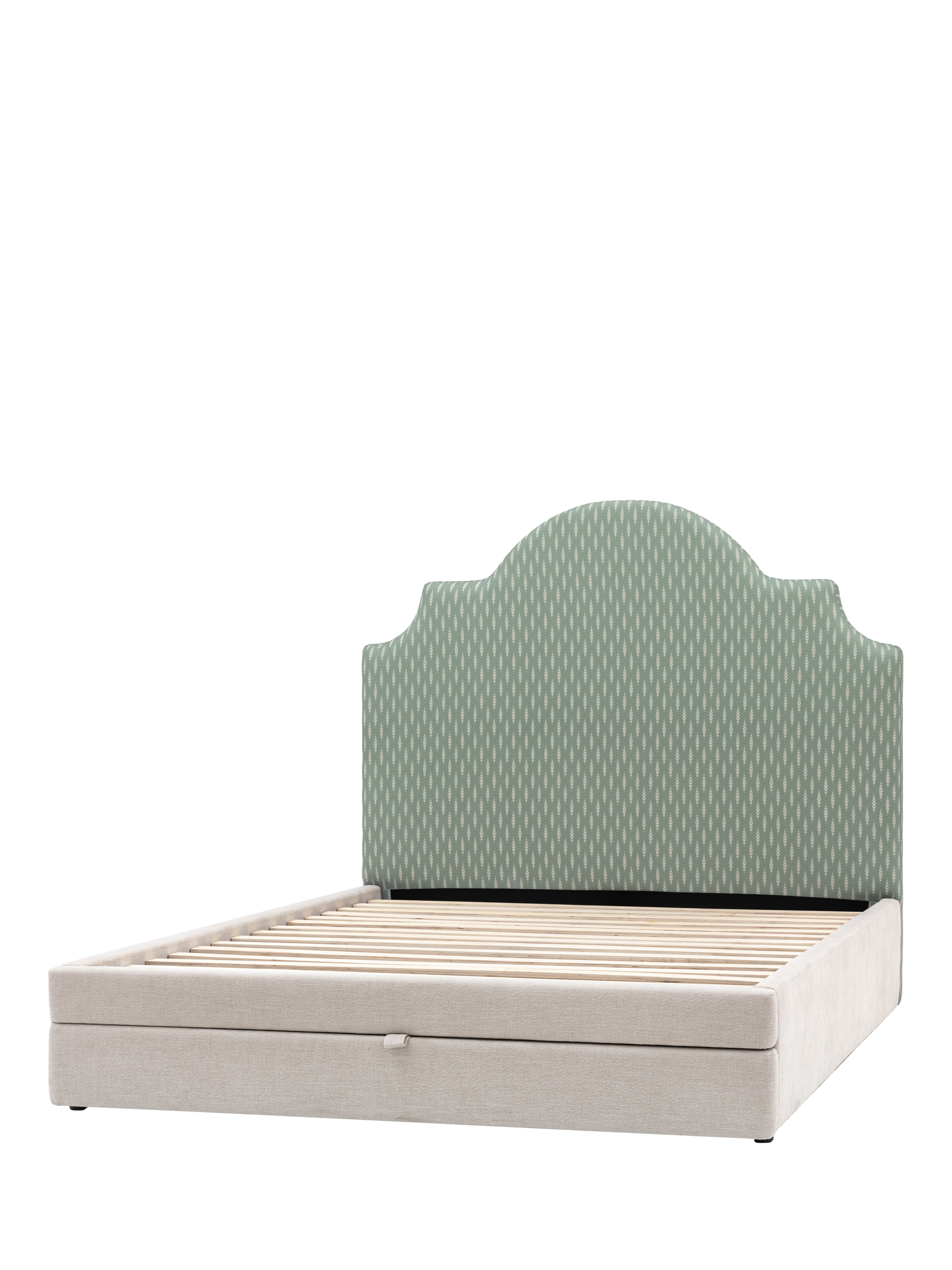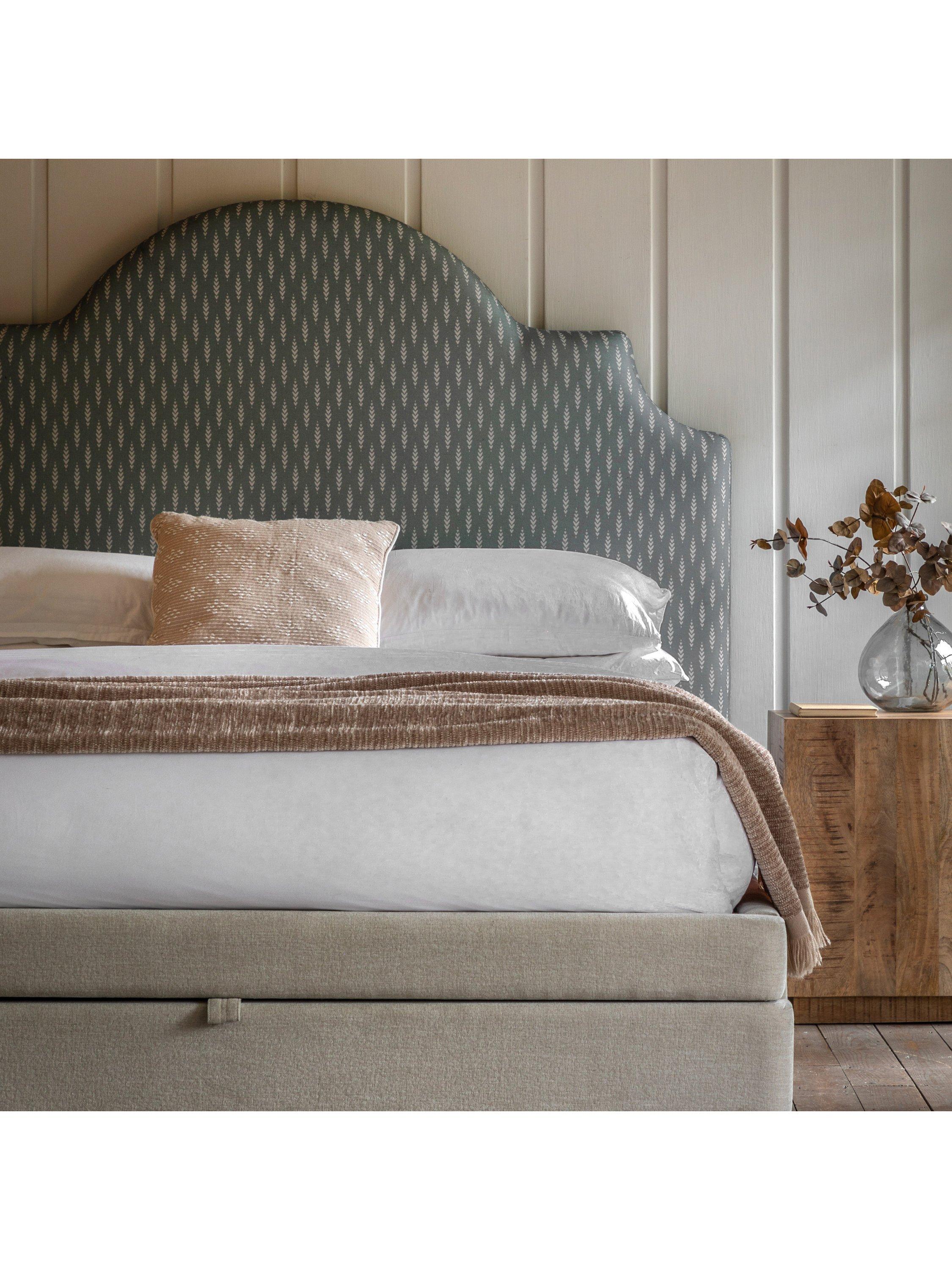 This bed frame is designed with an elegant arched headboard that's upholstered with an intricate green leaf pattern. It will look impressive and timeless in your bedroom, but it's also practical as it features a built-in draw at the foot of the bed which provides ample storage space - ideal if you have limited storage options.