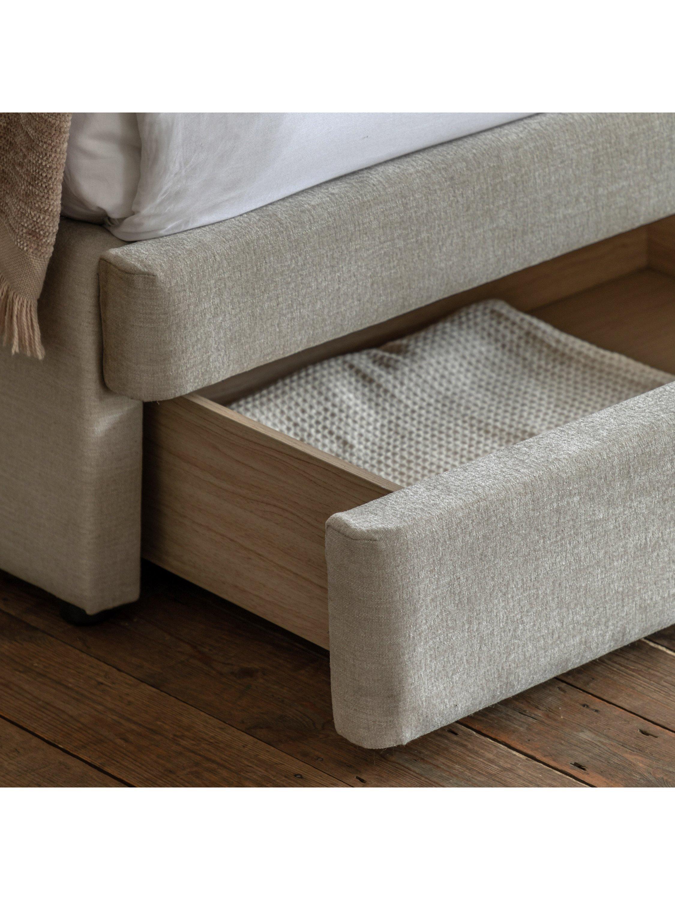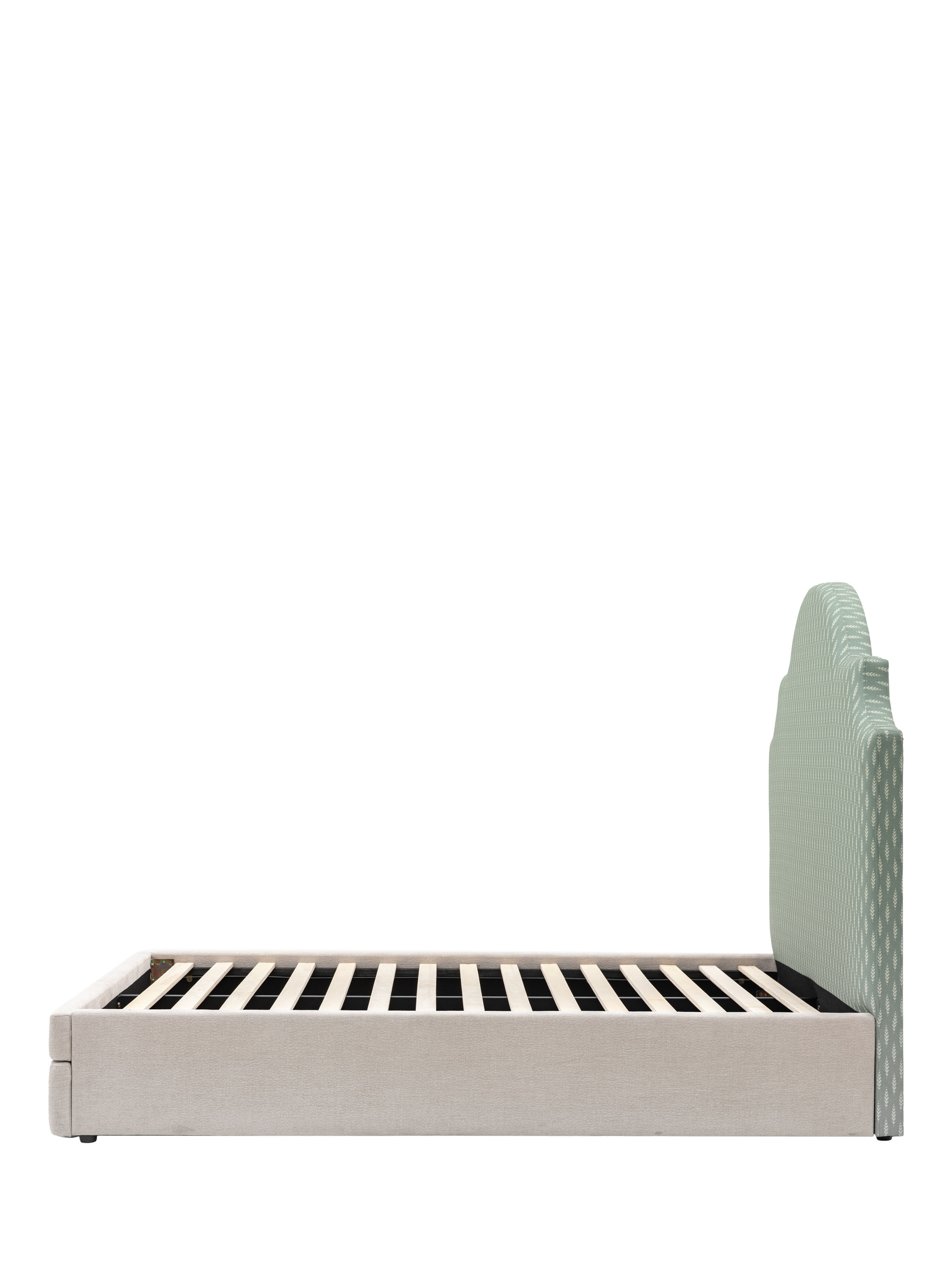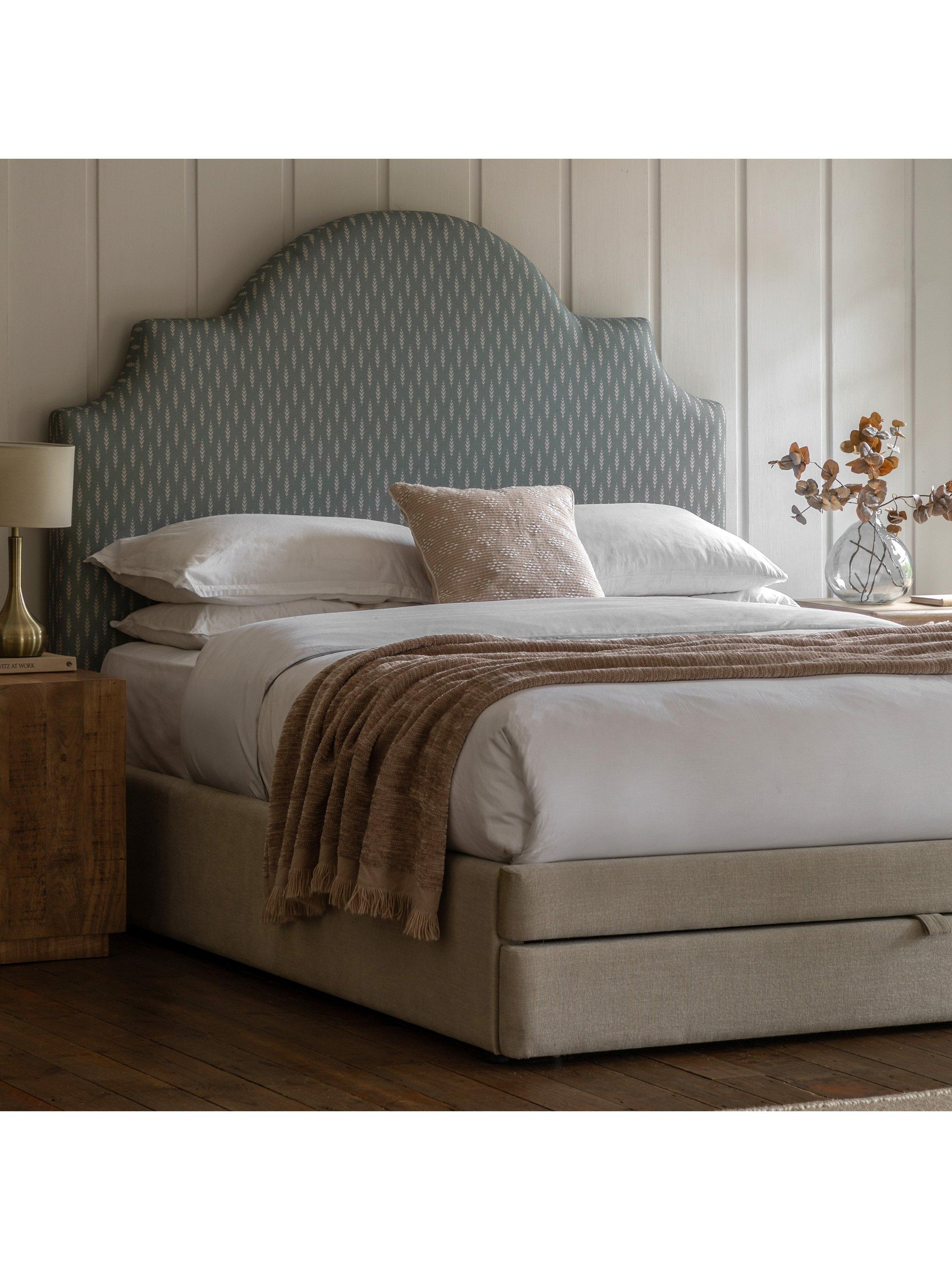 This bed frame is designed with an elegant arched headboard that's upholstered with an intricate green leaf pattern. It will look impressive and timeless in your bedroom, but it's also practical as it features a built-in draw at the foot of the bed which provides ample storage space - ideal if you have limited storage options.