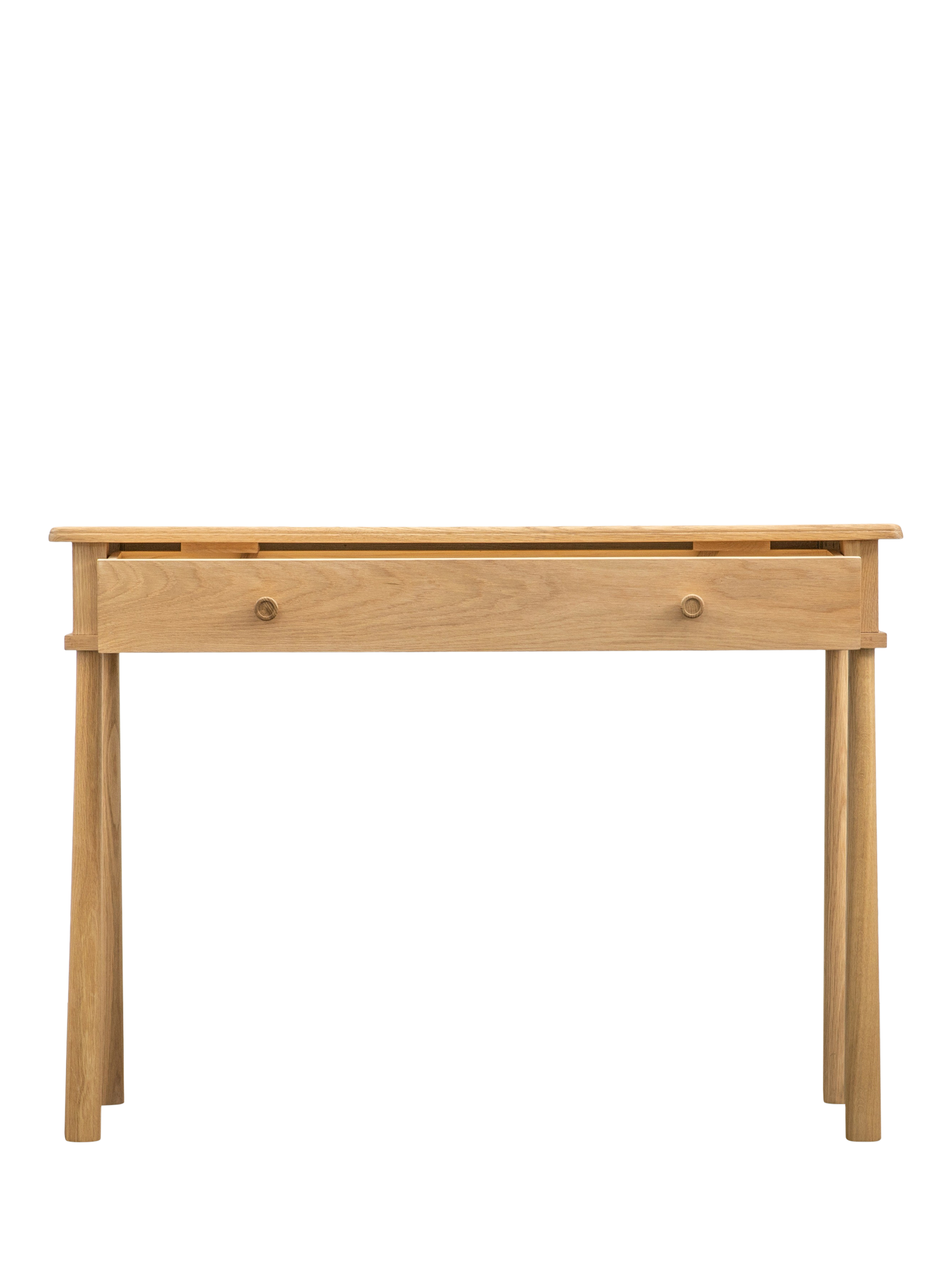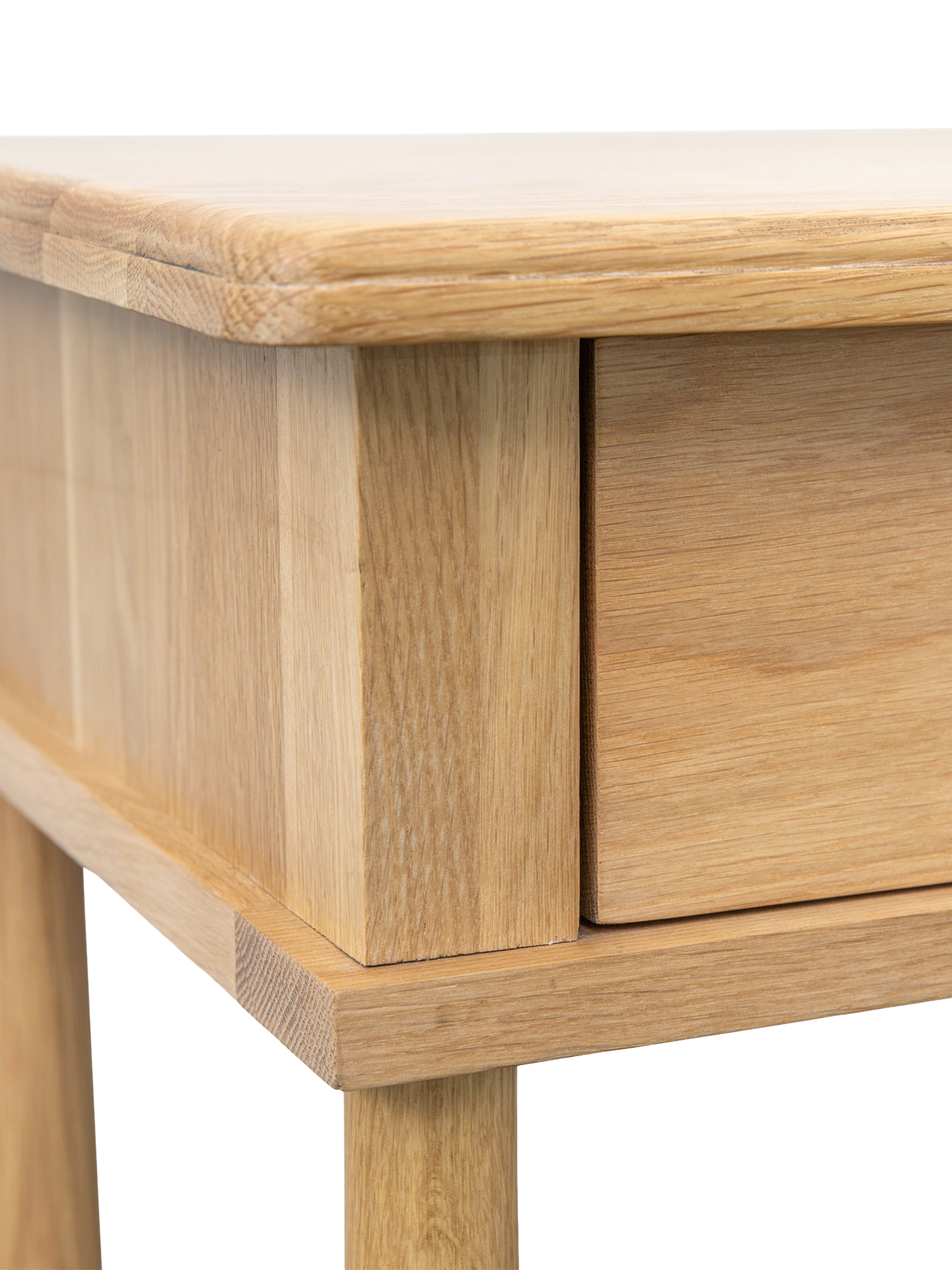 Style your bedroom with furniture that keeps the space feeling calm and uncluttered. Made from robust, solid oak in a natural finish, the Wycombe dressing table is designed with a wide, spacious drawer that's ideal for stashing your beauty essentials and accessories away.