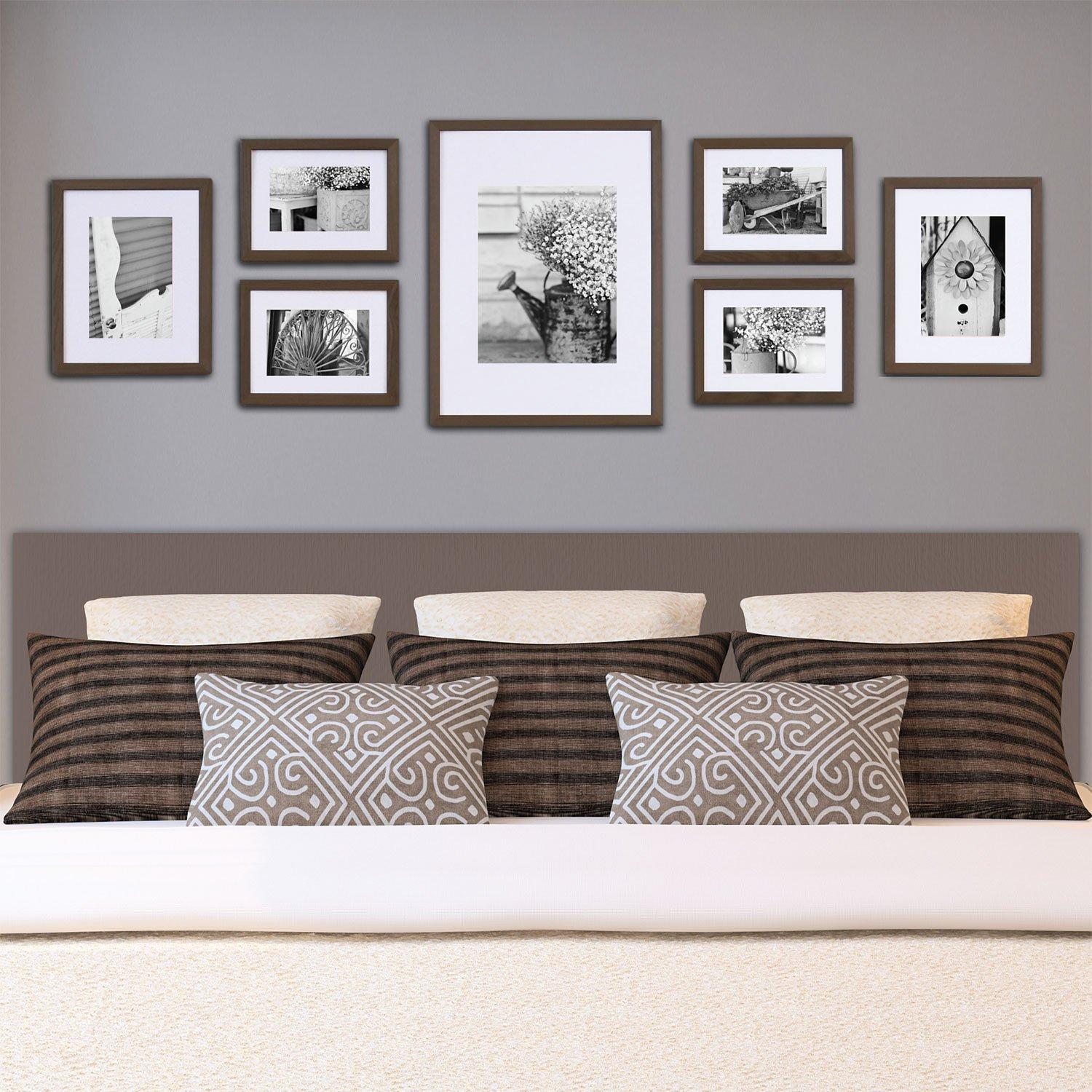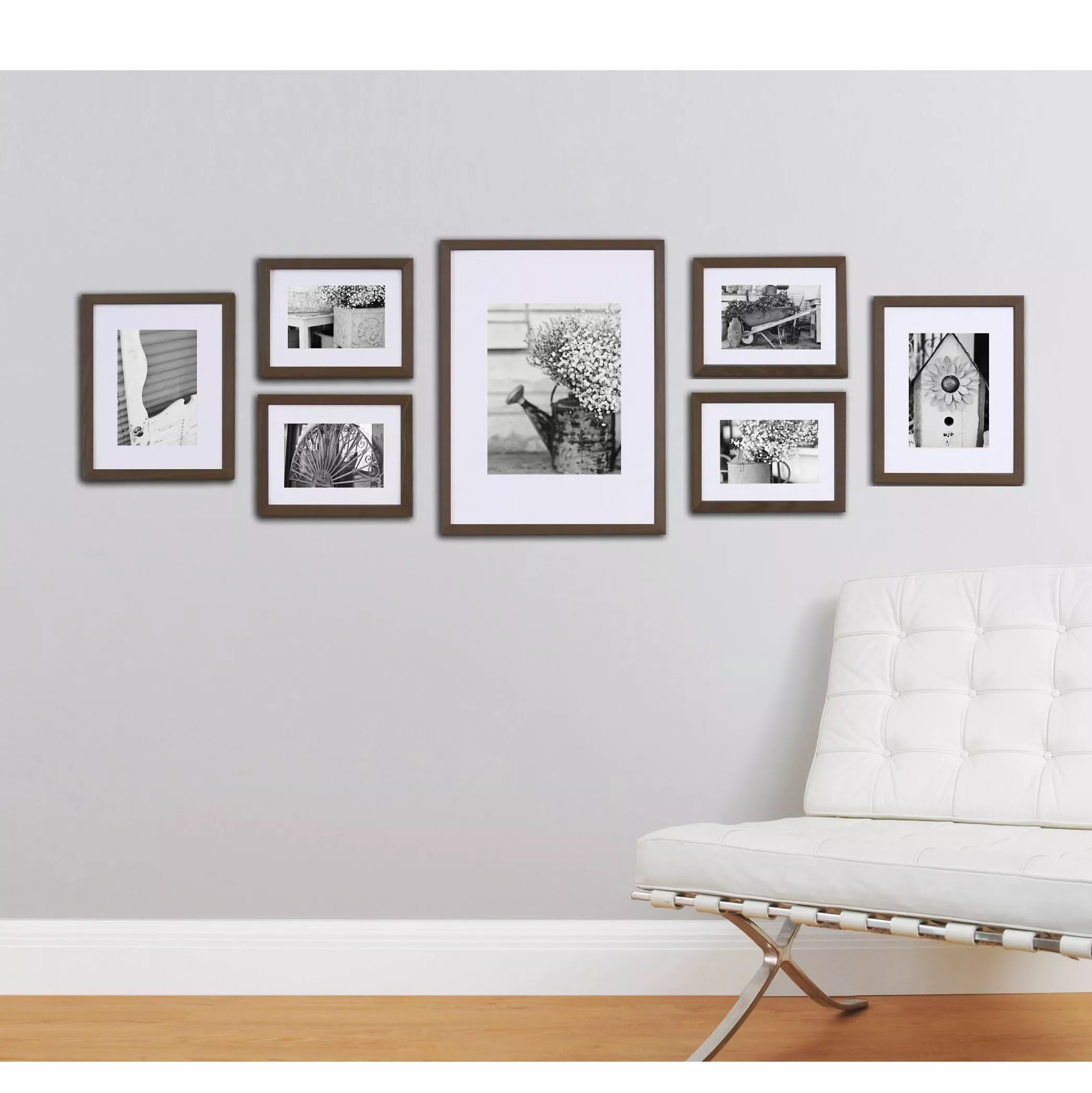 The essential set for a quick, easy and attractive gallery wall picture layout. The set comes complete with two hanging templates for seven solid wood wall frames. Each of the frames comes with a mount and ready-to-use optional art.