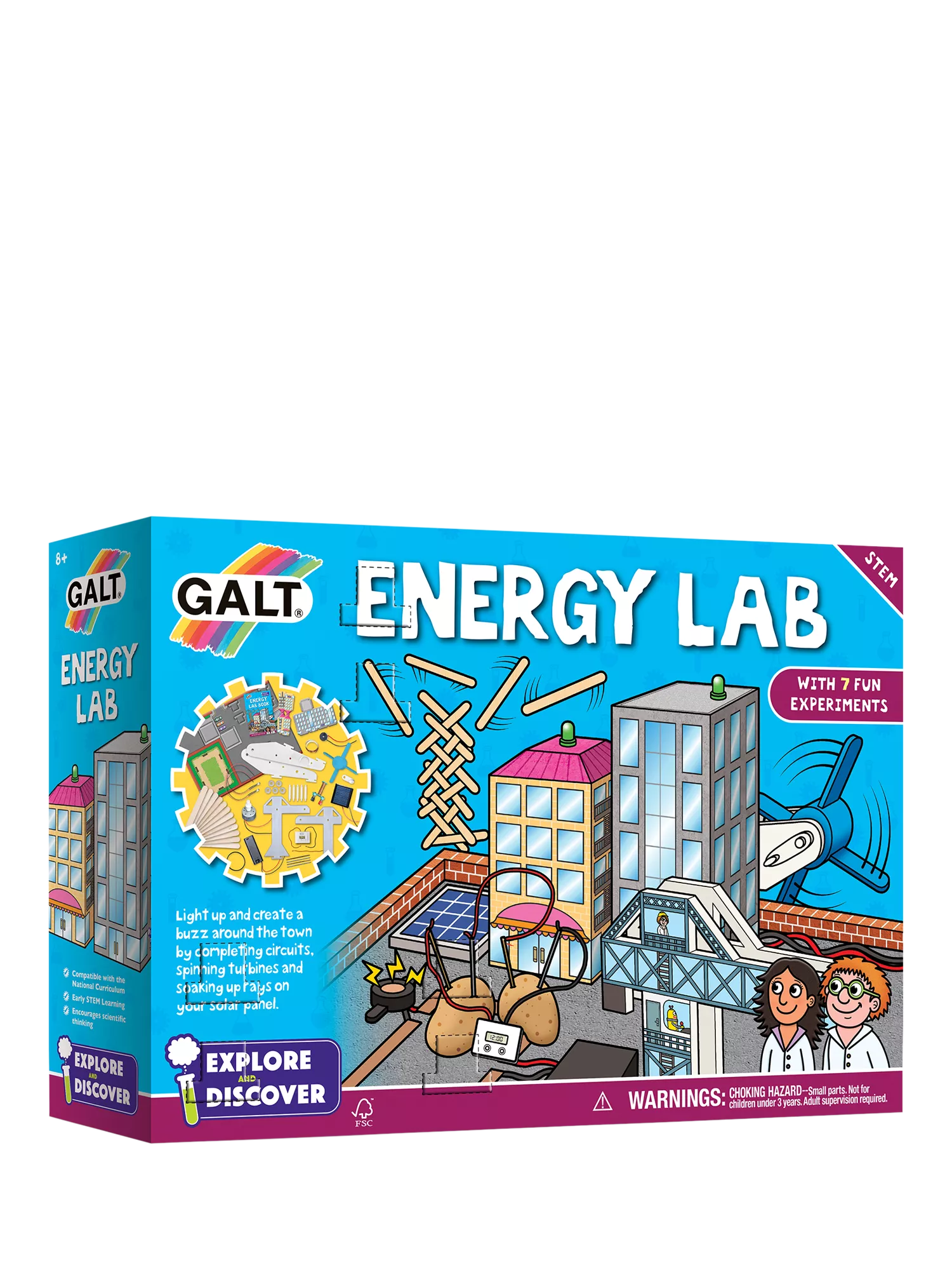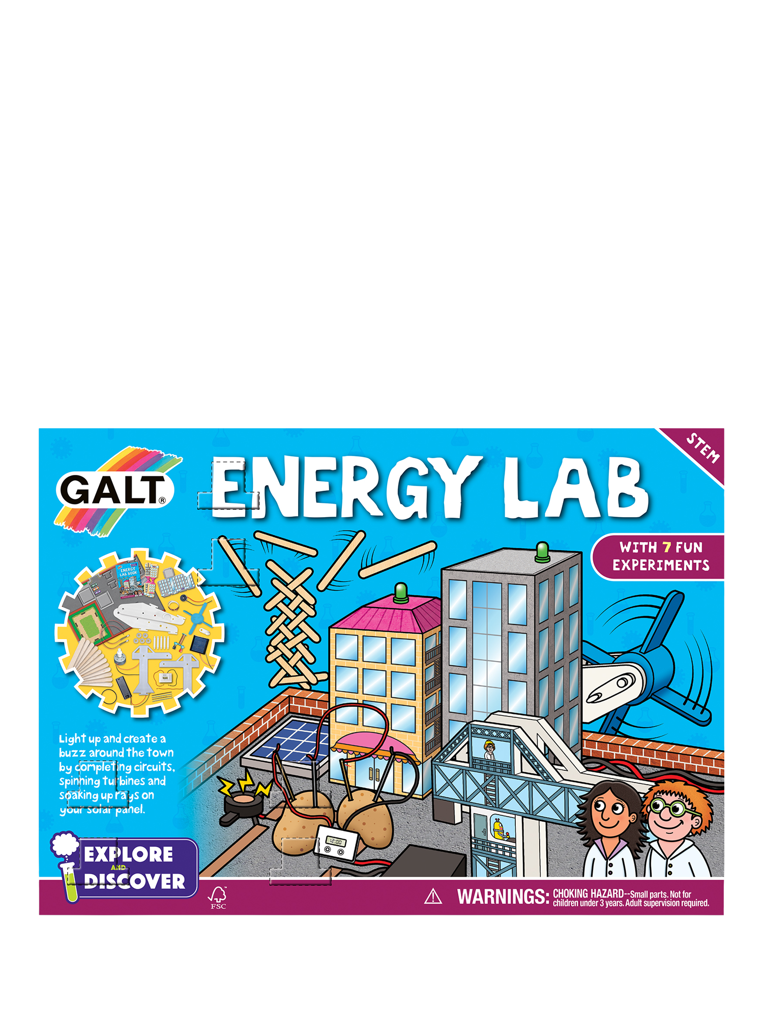 Unlock the secrets of energy with Energy Lab. This hands-on science kit enables kids to generate electricity, build circuits and learn about renewable energy sources like solar and wind power. With a full-color lab book and 7 engaging experiments, young scientists can build their own motor, experiment with a turbine and discover how energy shapes the world around us. Perfect for curious minds, eager to explore how power is created and used in our everyday lives.