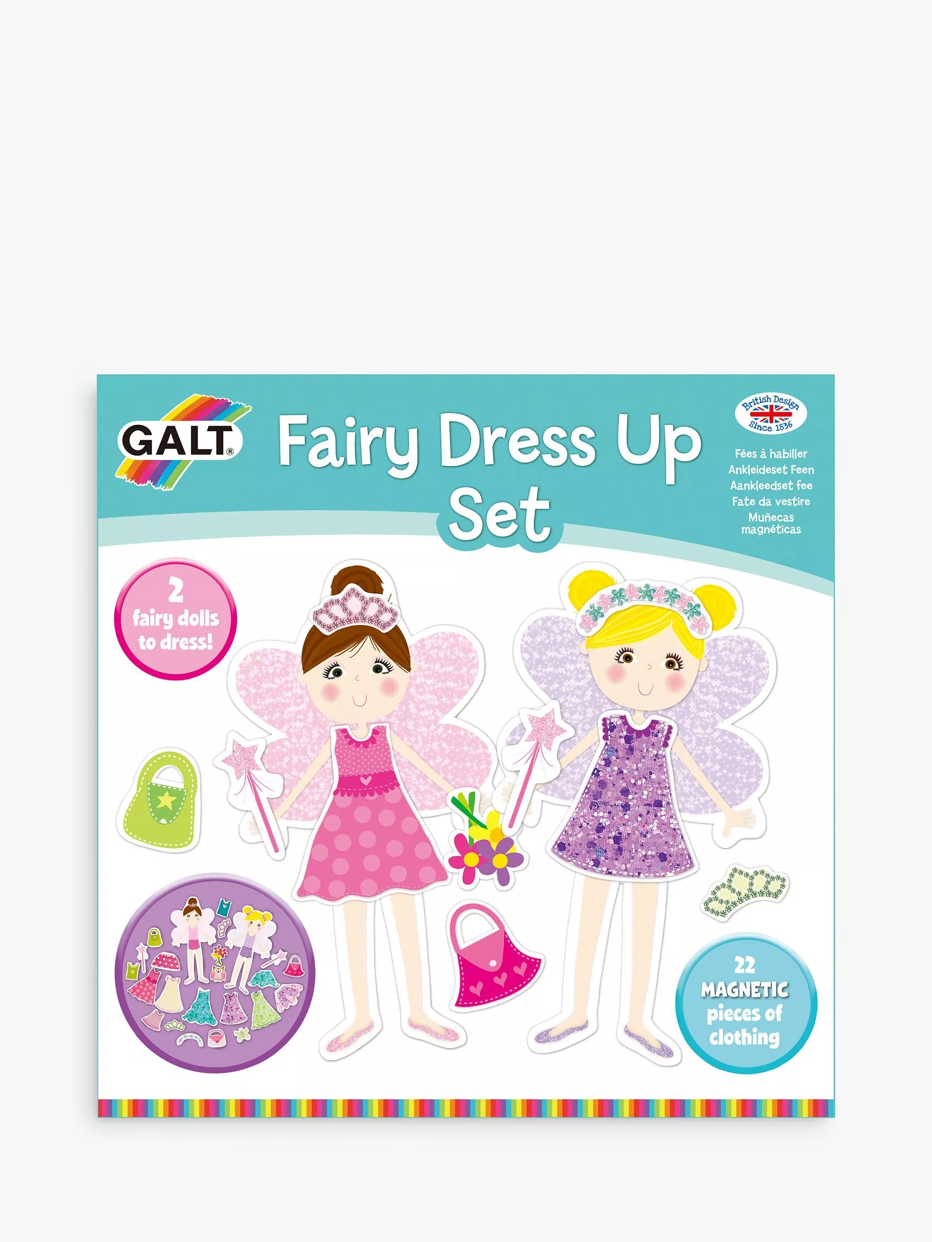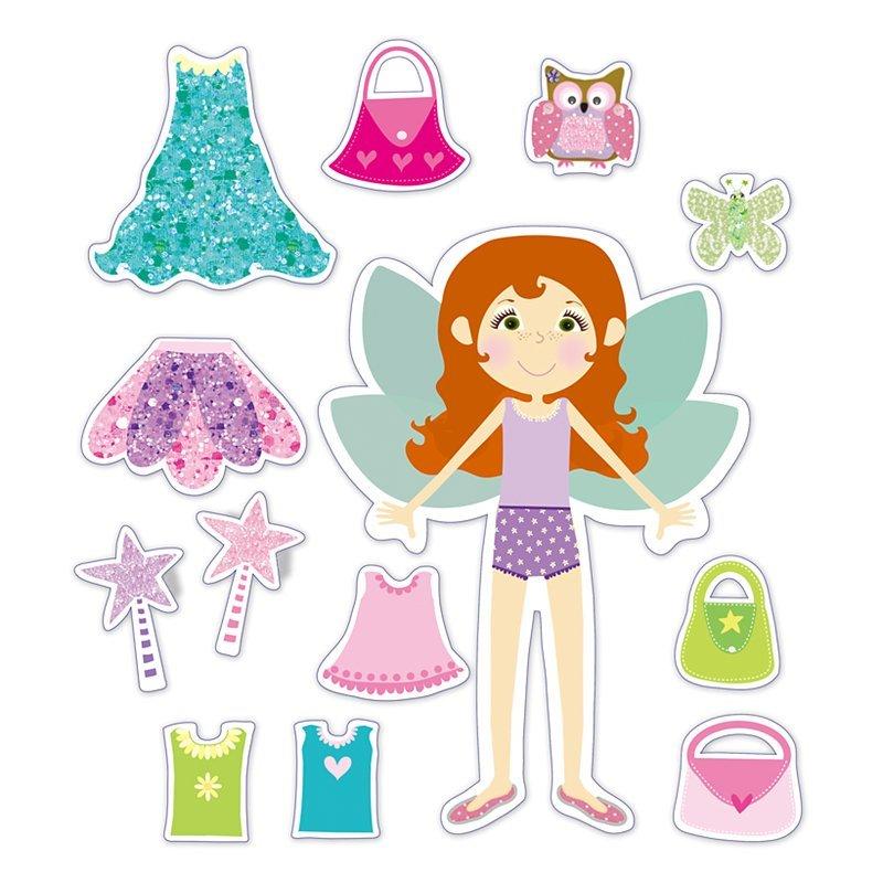 Design fun fairy outfits with this magnetic dressing up kit. Place the clothes, tiaras and magic wands on the fairies and the magnetic surfaces keep them in place. There are 2 magnetic fairy dolls to dress and 22 magnetic pieces of clothing to choose from.