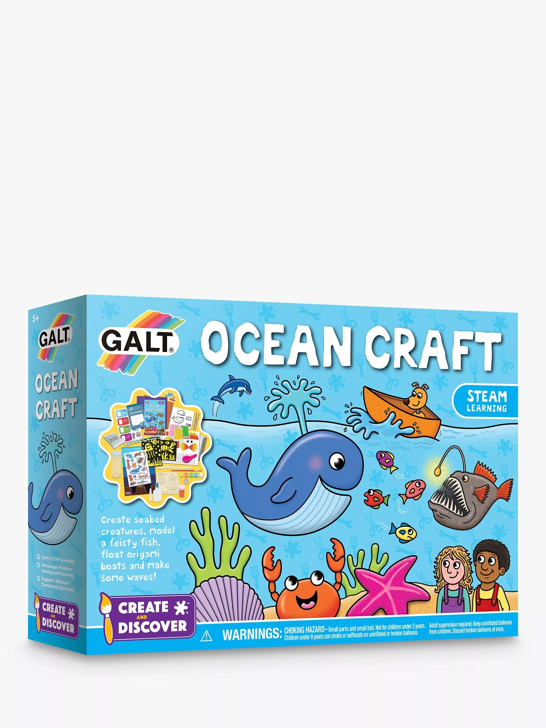 This craft set has an ocean-full of friends for kids to get creative with! Create seabed critters, make a glowing angler fish and build origami boats. They'll also be able to make a wave tube, create bubble art coral scenes and learn about deep-sea creatures.