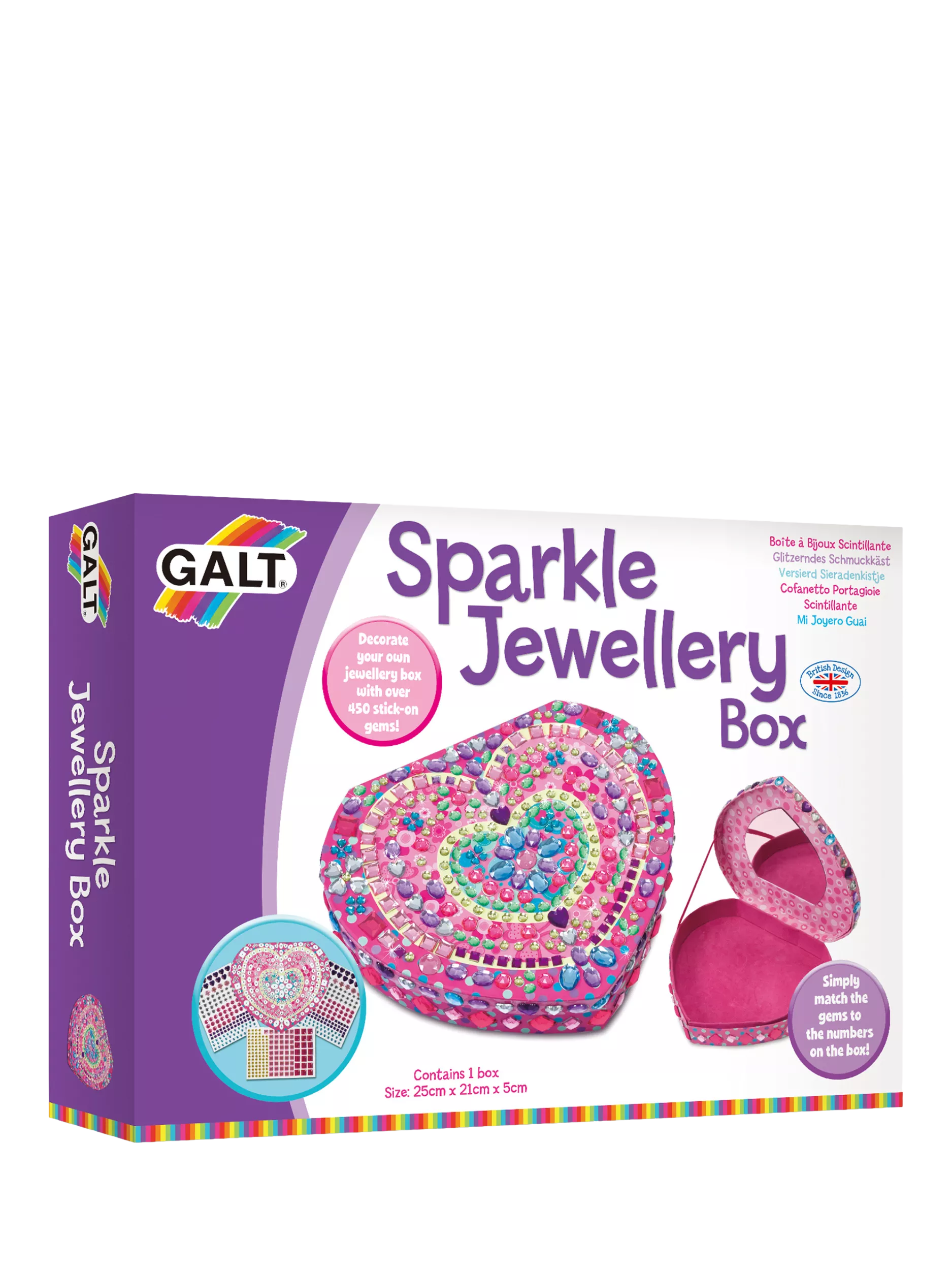 Children can decorate this heart-shaped jewellery box with easy-to-use sparkly stick-on gems. Use the numbers on the box to match the colours to the right spot.