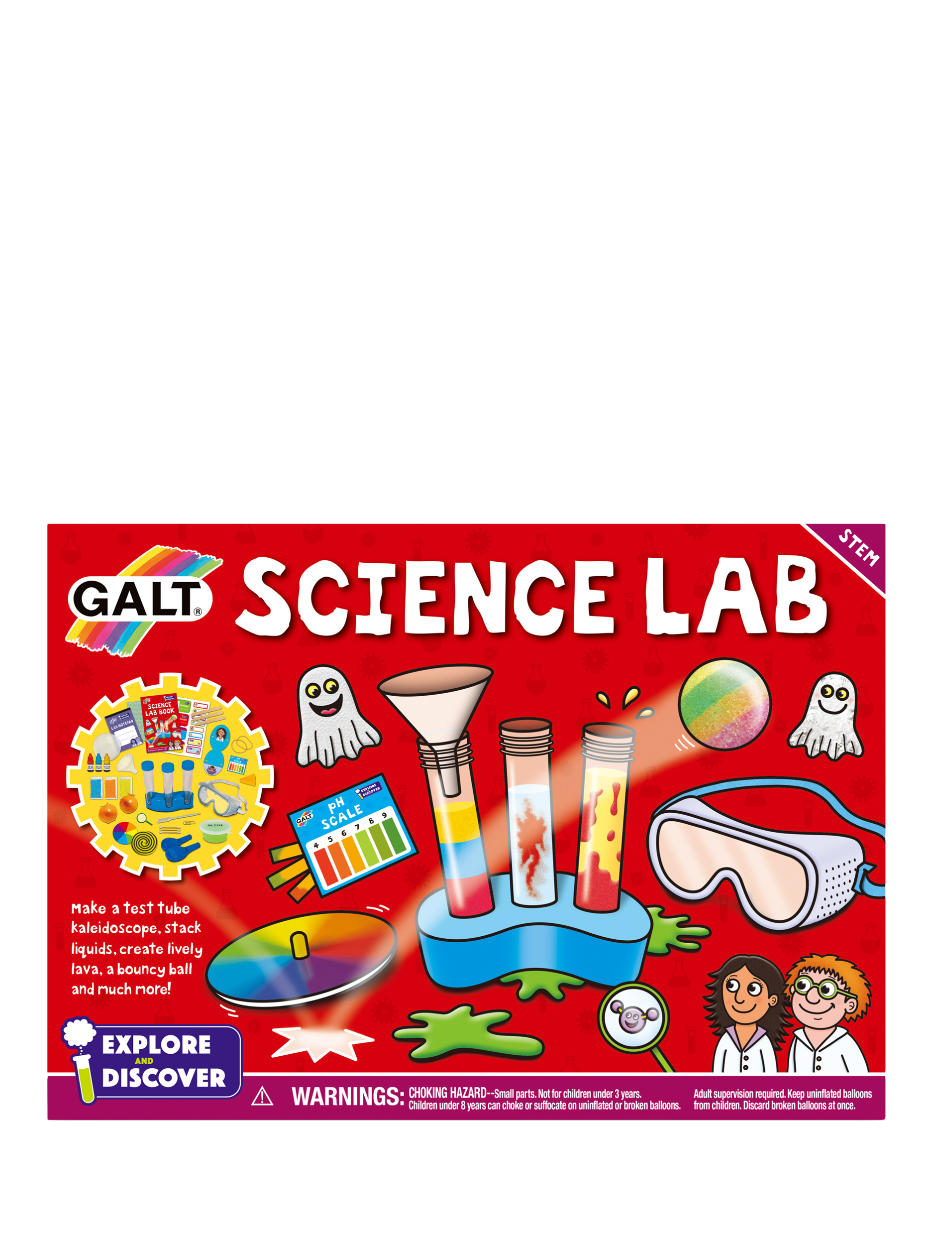Make a floaty ghost, test tube kaleidoscope and bouncy ball. Play a scary skin crawling game, discover how to stack liquids and make lively lava! Includes 20 fun experiments.