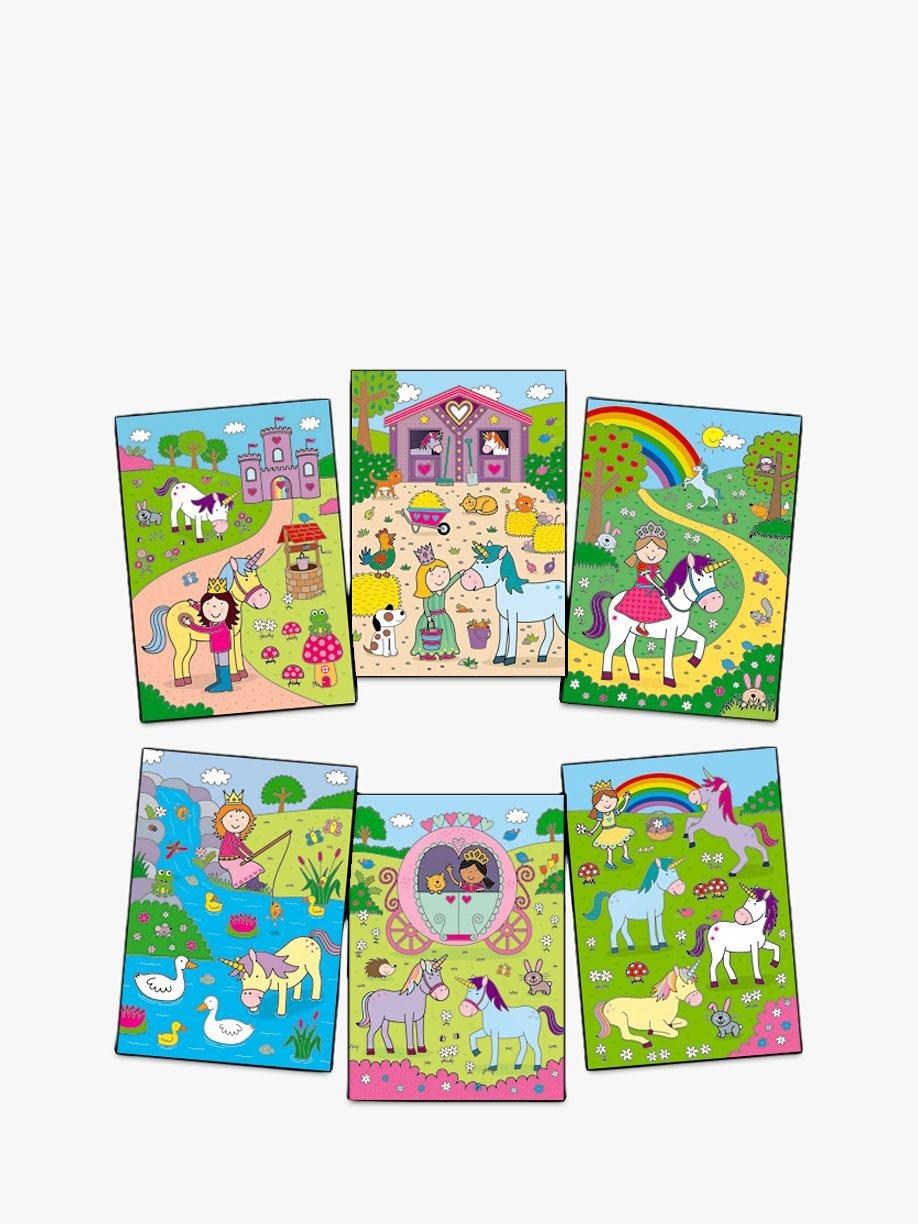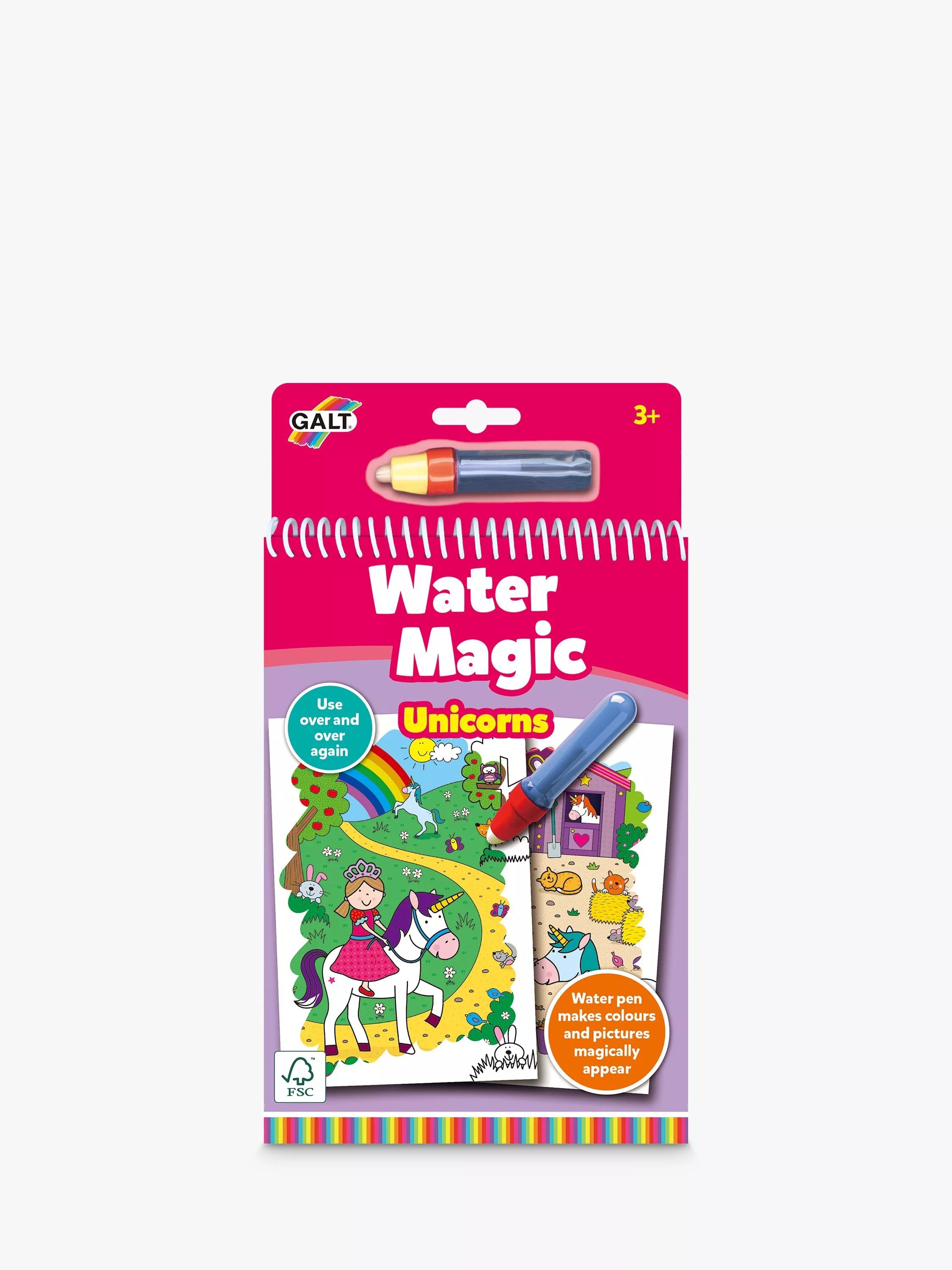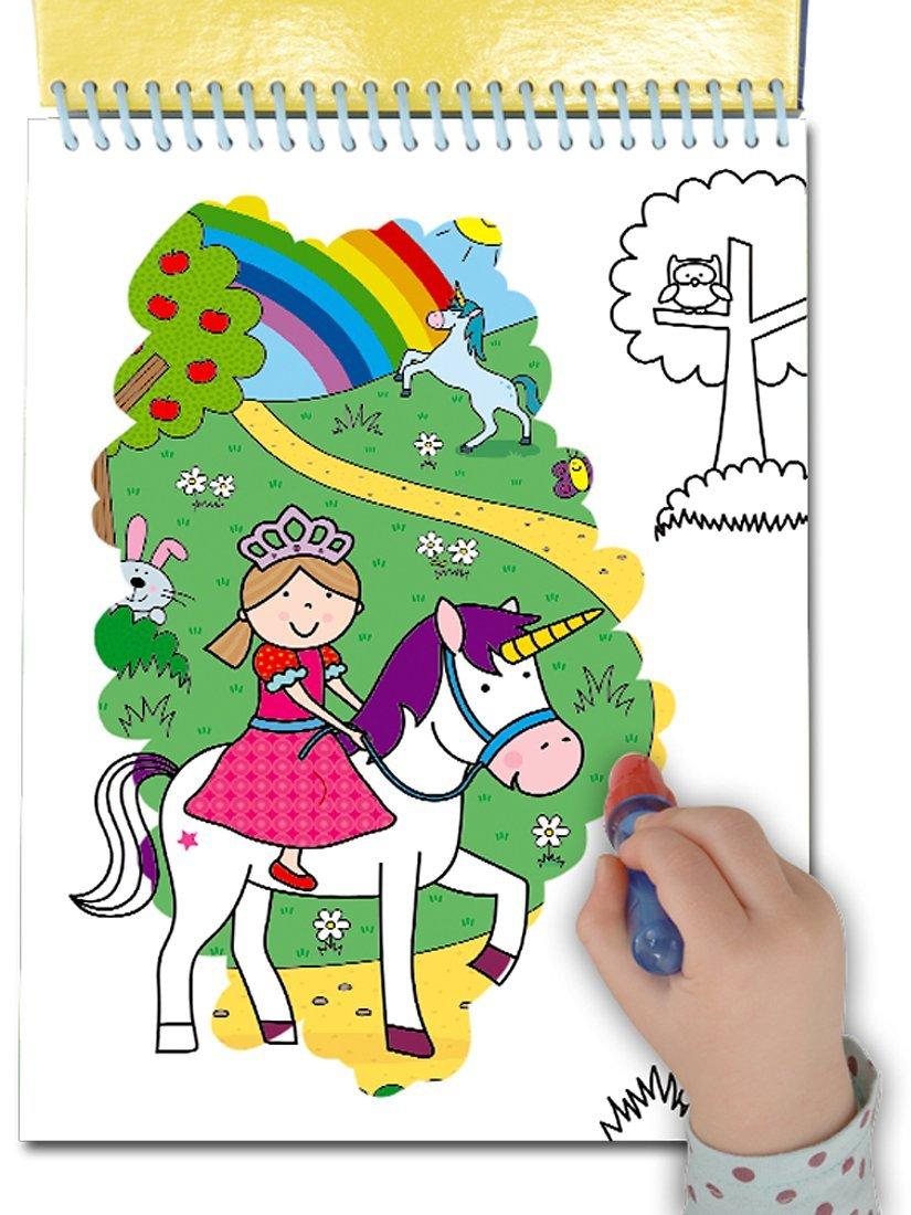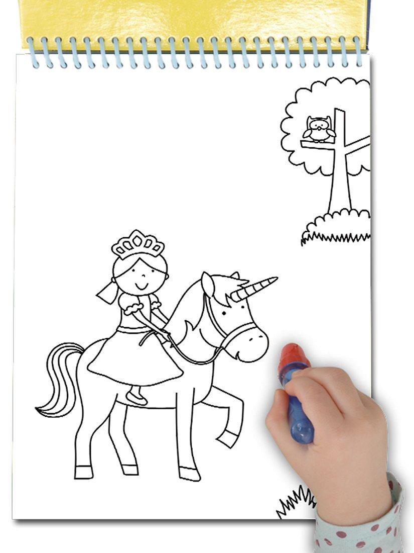 Fill the pen with water to colour in the 6 unicorn pictures. The colours will magically appear - then disappear again, so you can start again. Great for taking on holiday.