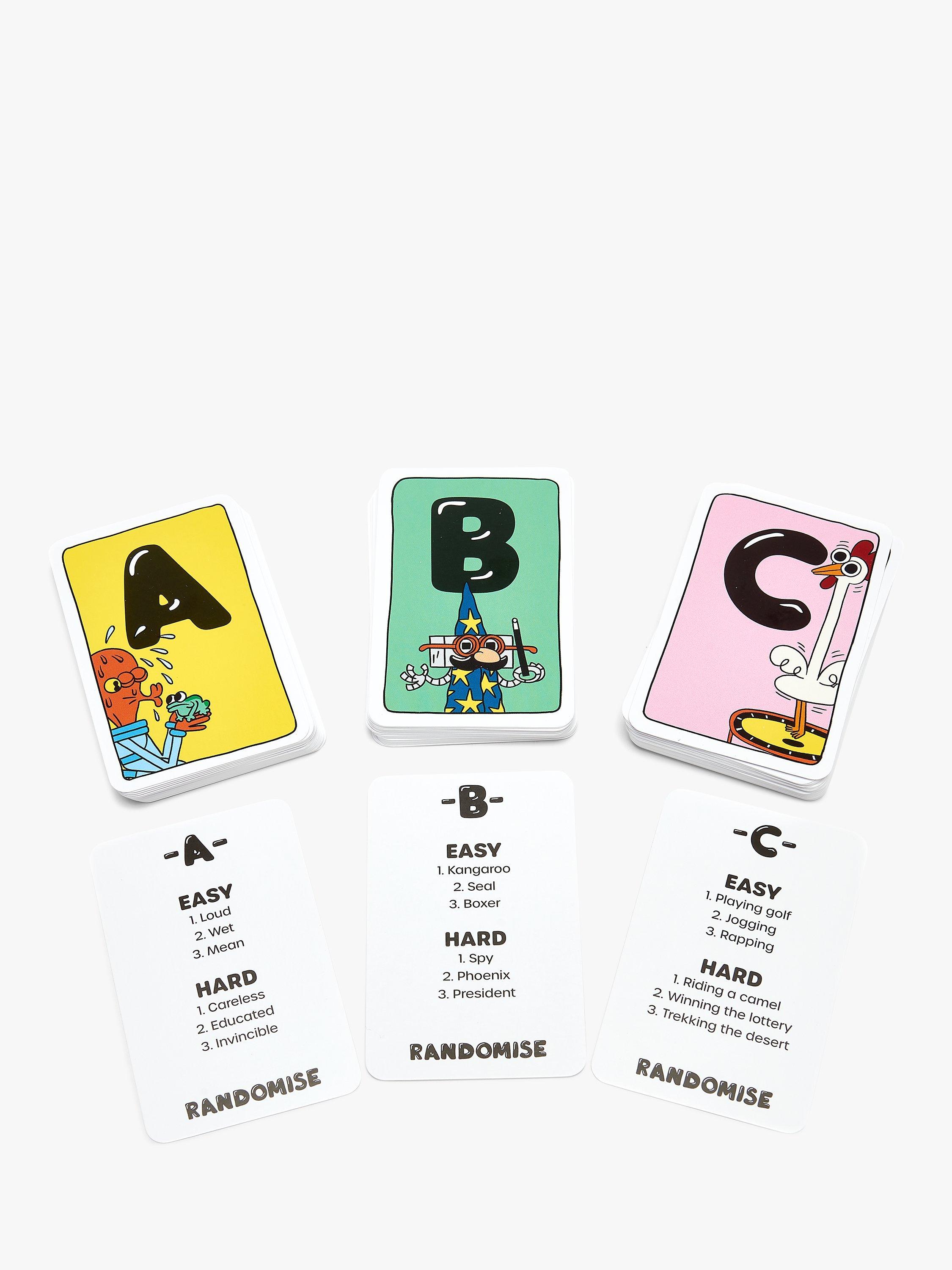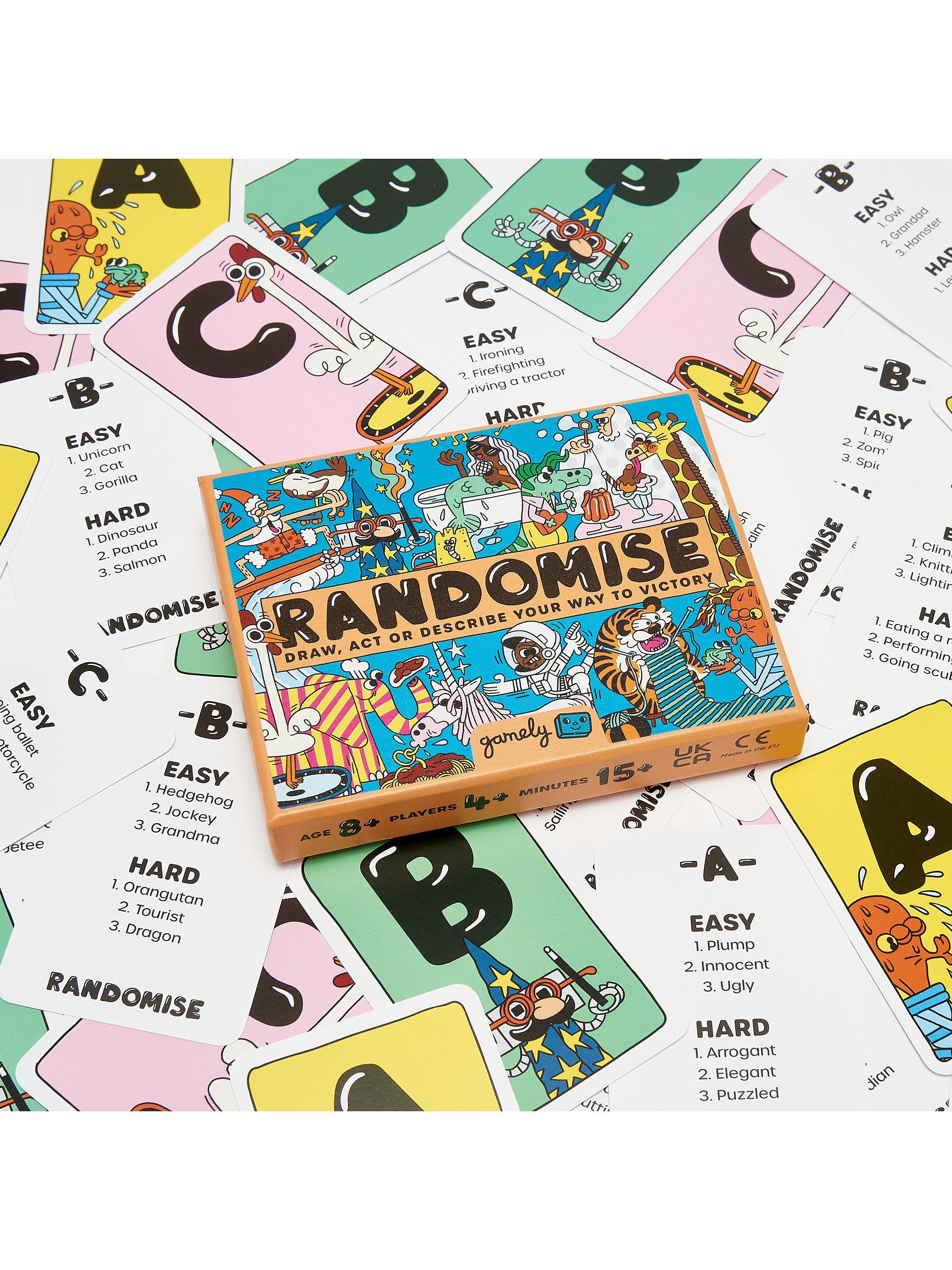 Randomise is the hilarious party game for people who want to spend more time laughing with their family and friends. Randomise lets you choose between drawing, acting or describing to get across what’s on your cards - but can everyone else guess what you're doing?! With more than a million brilliantly funny card combinations, Randomise is the game that will put a smile on everyone’s face. Can your friend describe a confused dinosaur selling lemonade or can grandma act out a clumsy beaver hula hooping?