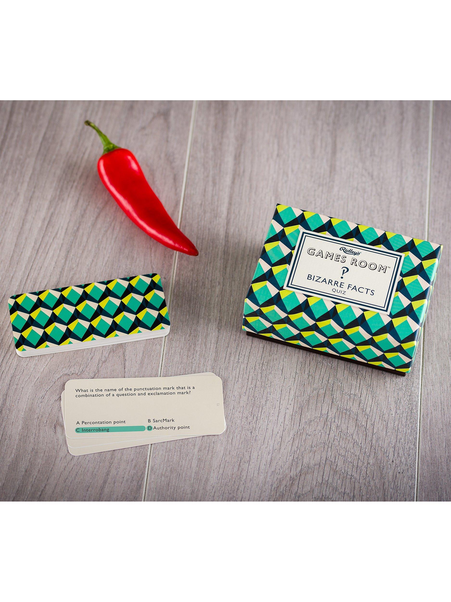 The bizarre-er the better with this Bizarre Facts Trivia Quiz from the Ridley's Games Room collection. There are 140 quiz cards to test your knowledge of the unusual and absurd! A fun and factual game to play with friends.