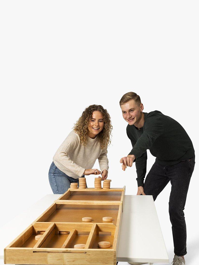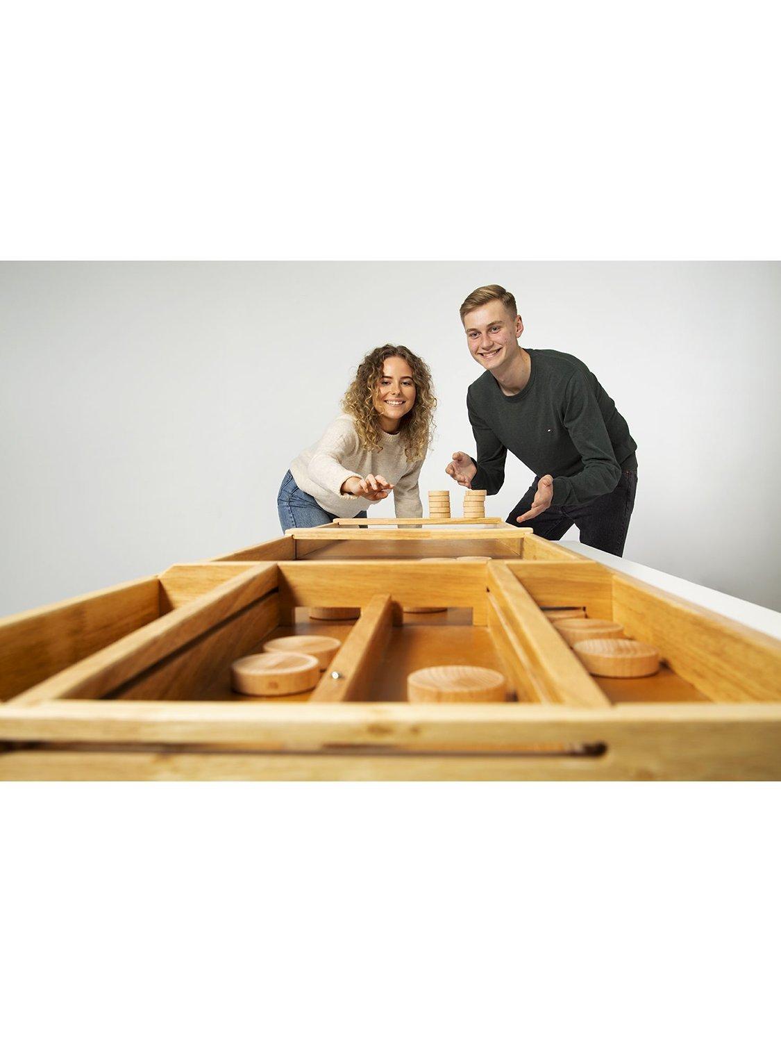 A great game for 2 players or teams, push the discs up the board to score points by getting the discs into the different compartments. The more points the better the score!