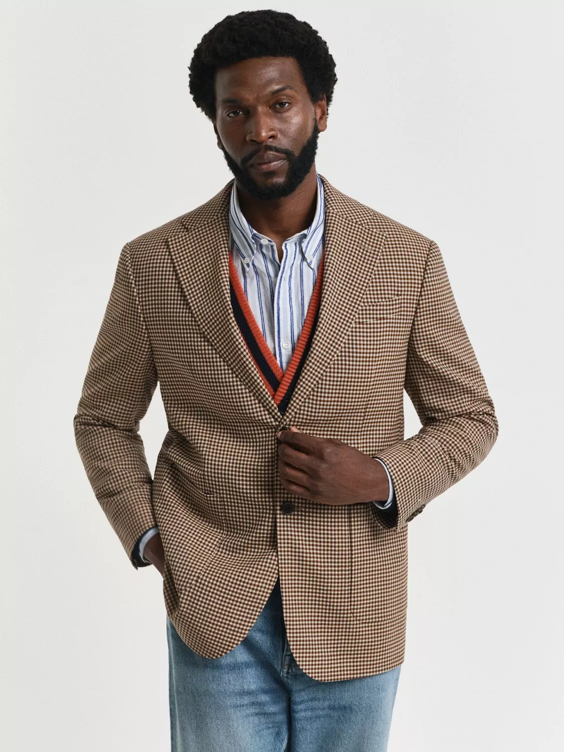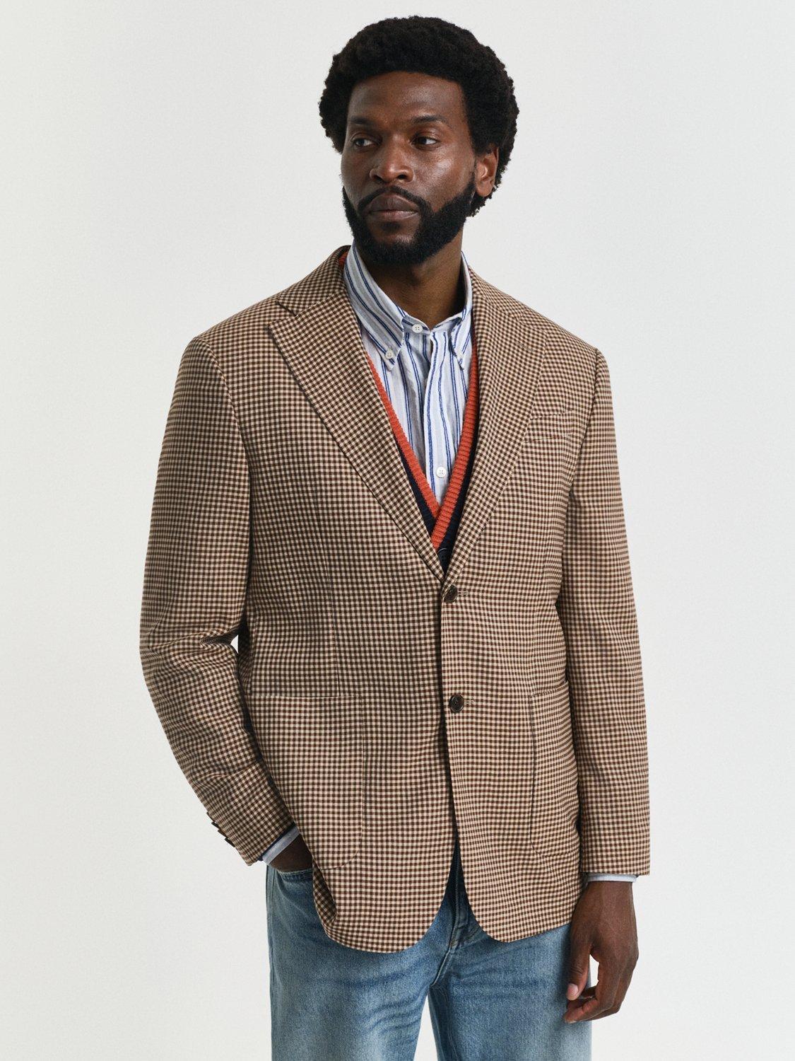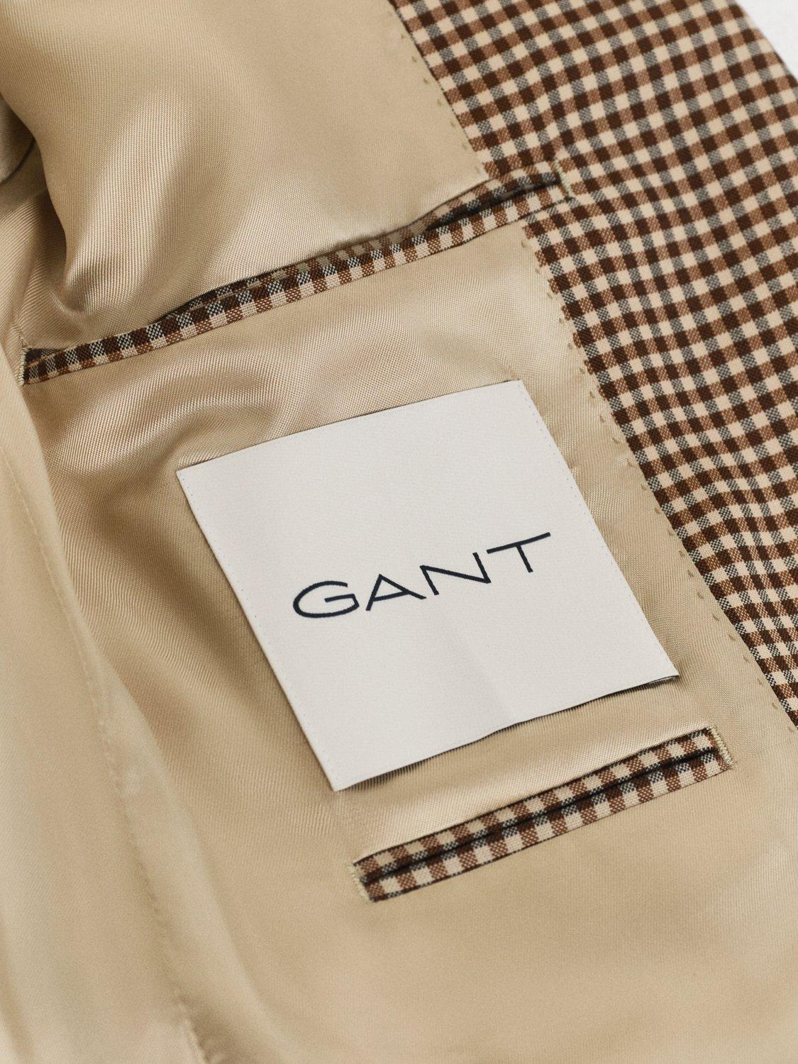This GANT blazer is cut from Italian wool and finished with a gingham check pattern. Fully lined for comfort, this offering is also detailed with felt under the collar and incorporates three practical interior pockets.
