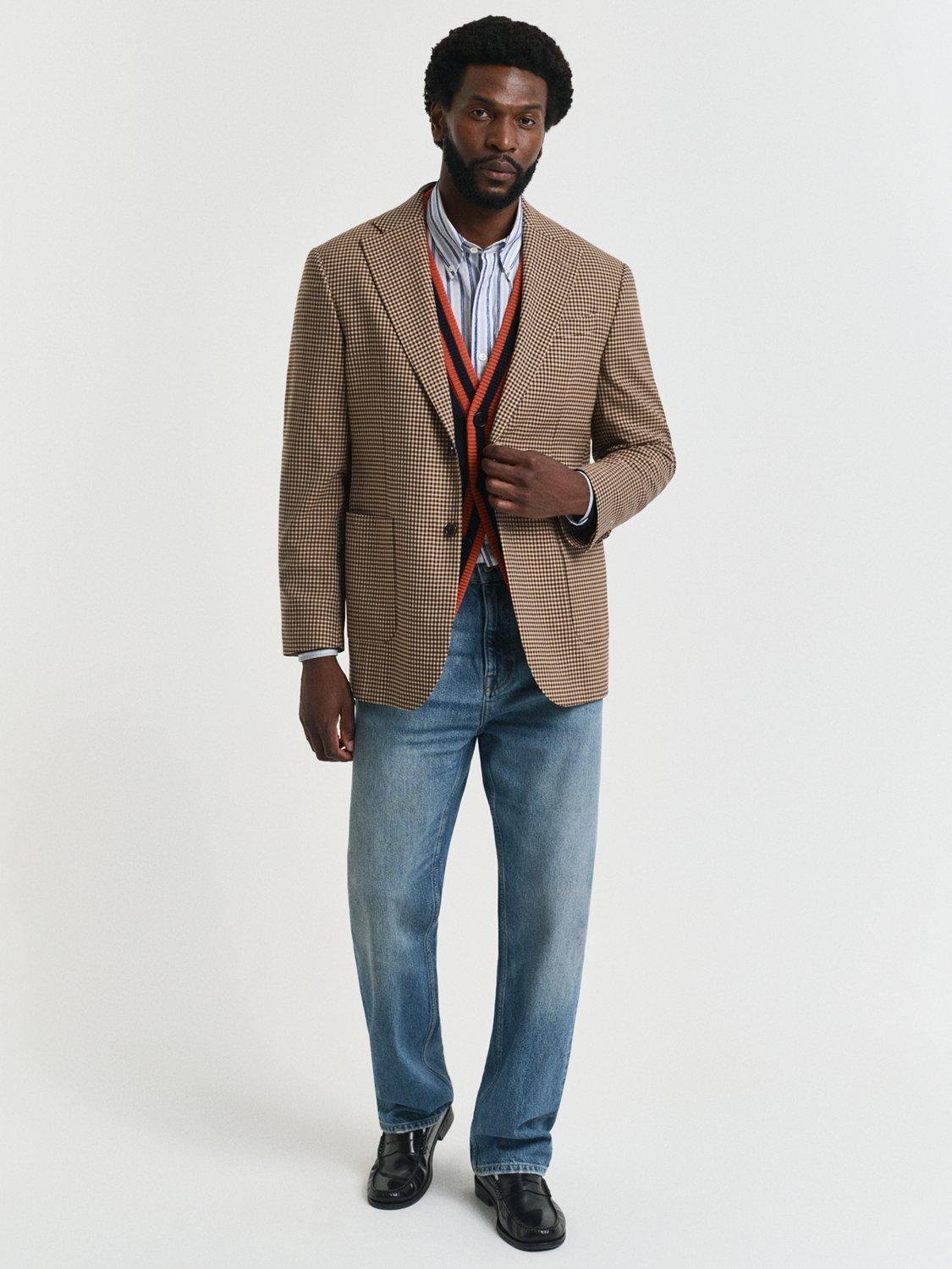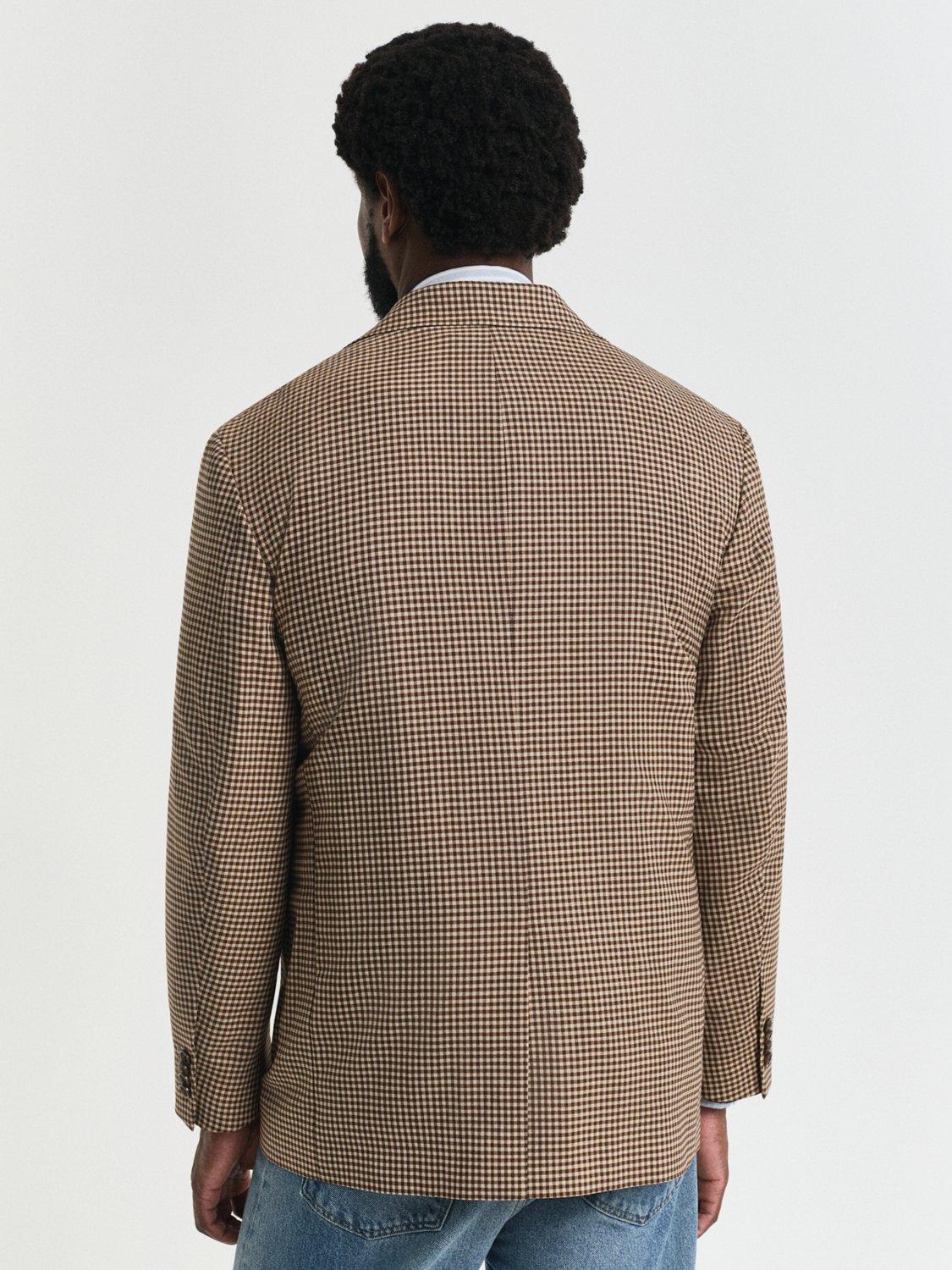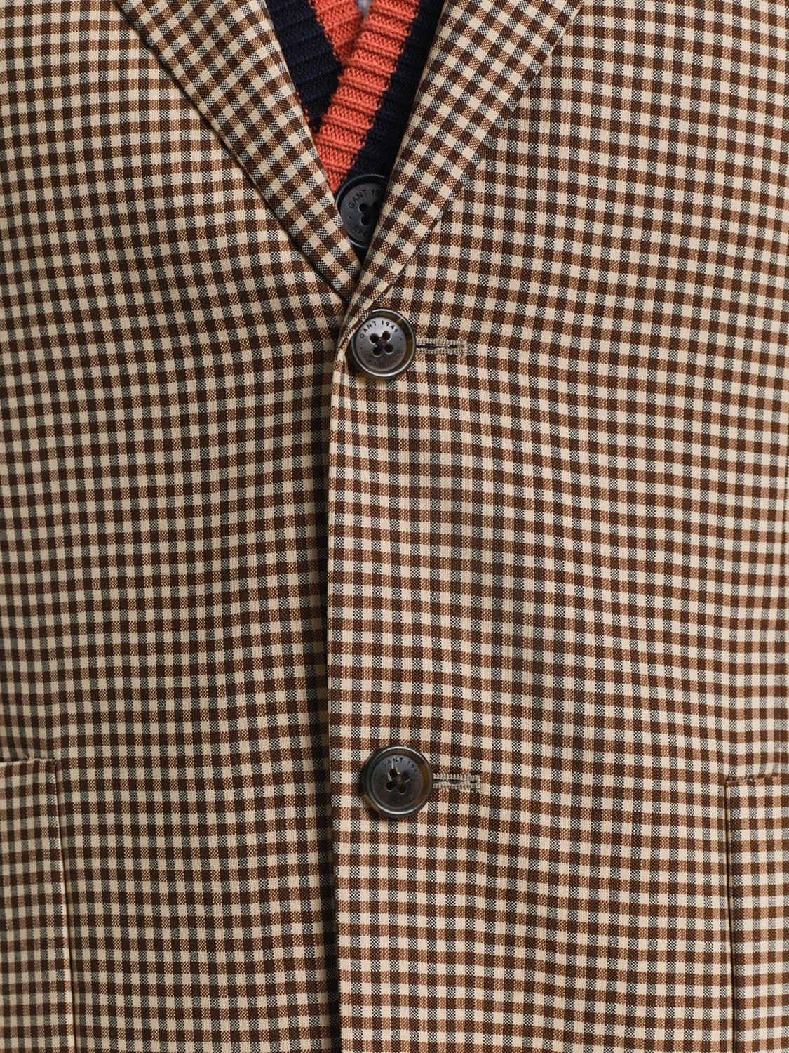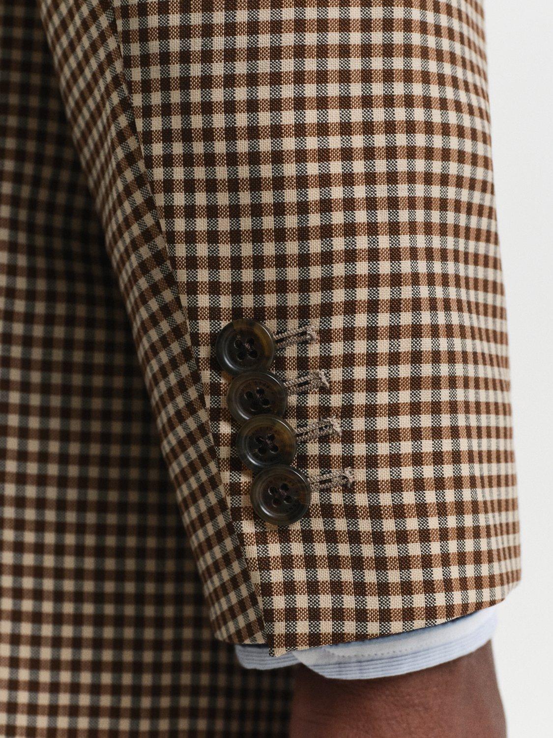 This GANT blazer is cut from Italian wool and finished with a gingham check pattern. Fully lined for comfort, this offering is also detailed with felt under the collar and incorporates three practical interior pockets.