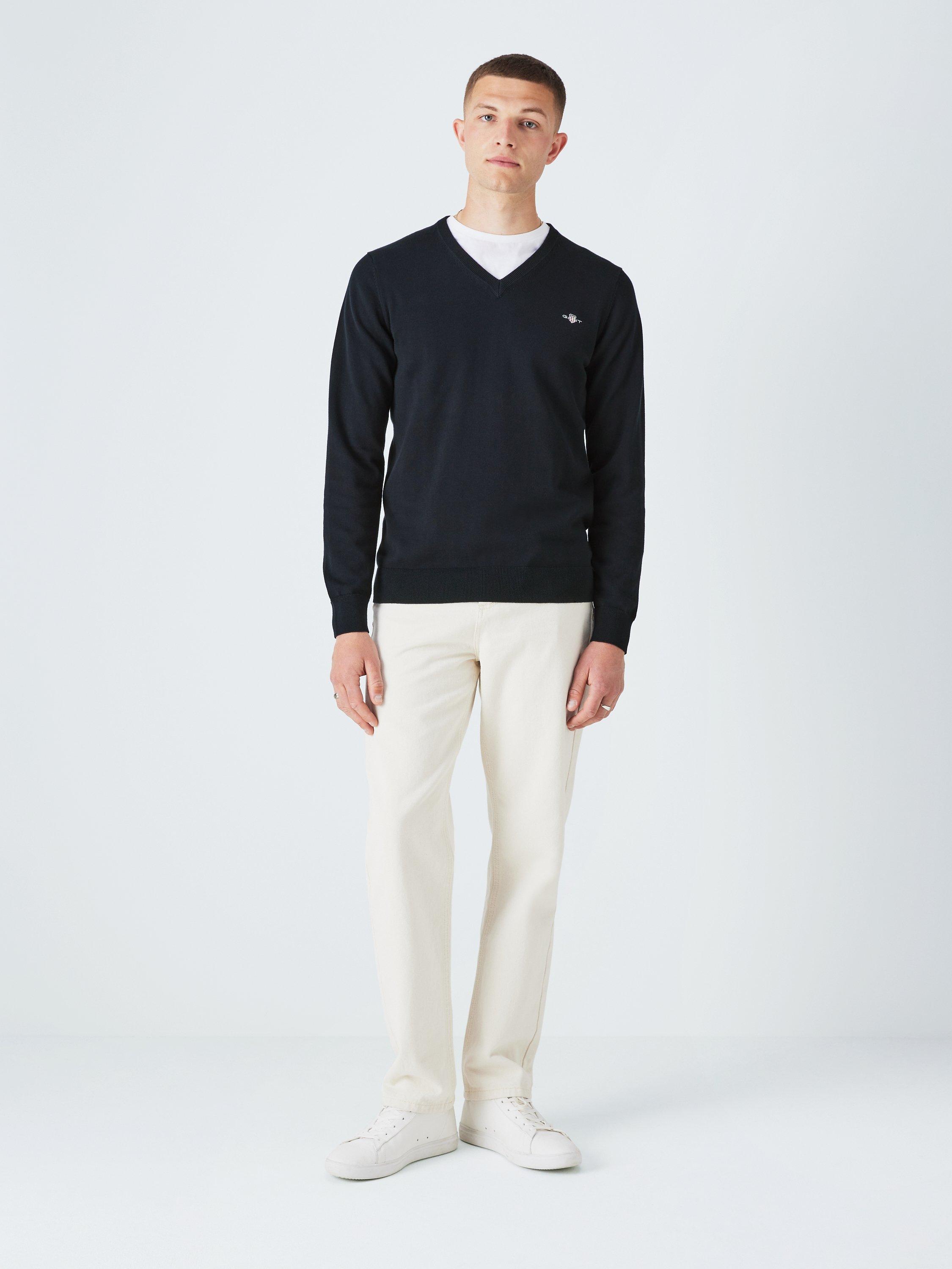 A must-have for your smart-casual collective, this v-neck jumper from GANT is rendered from breathable cotton for all-season appeal.