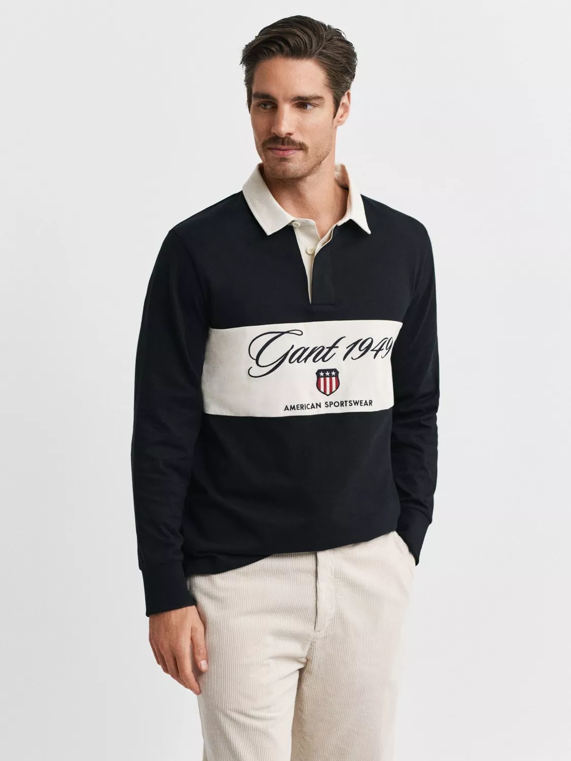 This heavy rugger, made from 100% cotton with a regular fit, is a must-have for any sportswear wardrobe. It features a color-blocked panel at the chest that is detailed with a Gant graphic embroidery. The design also features a twill collar, side slits, ribbed sleeve cuffs and a locker loop at the back.