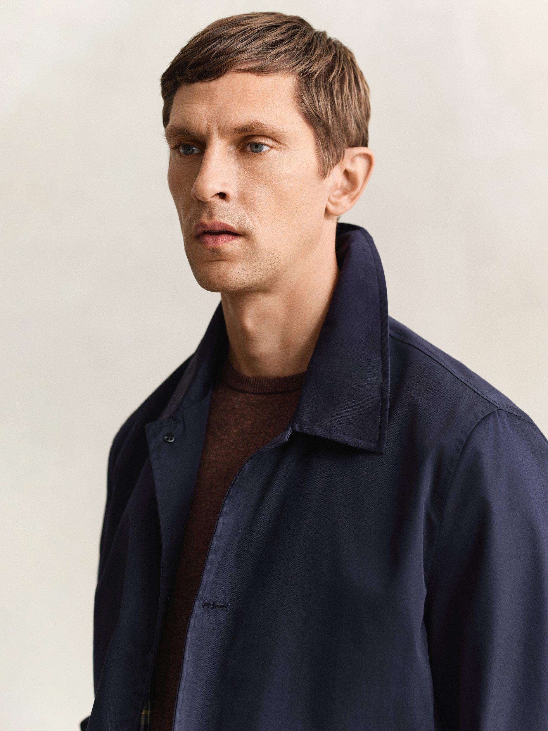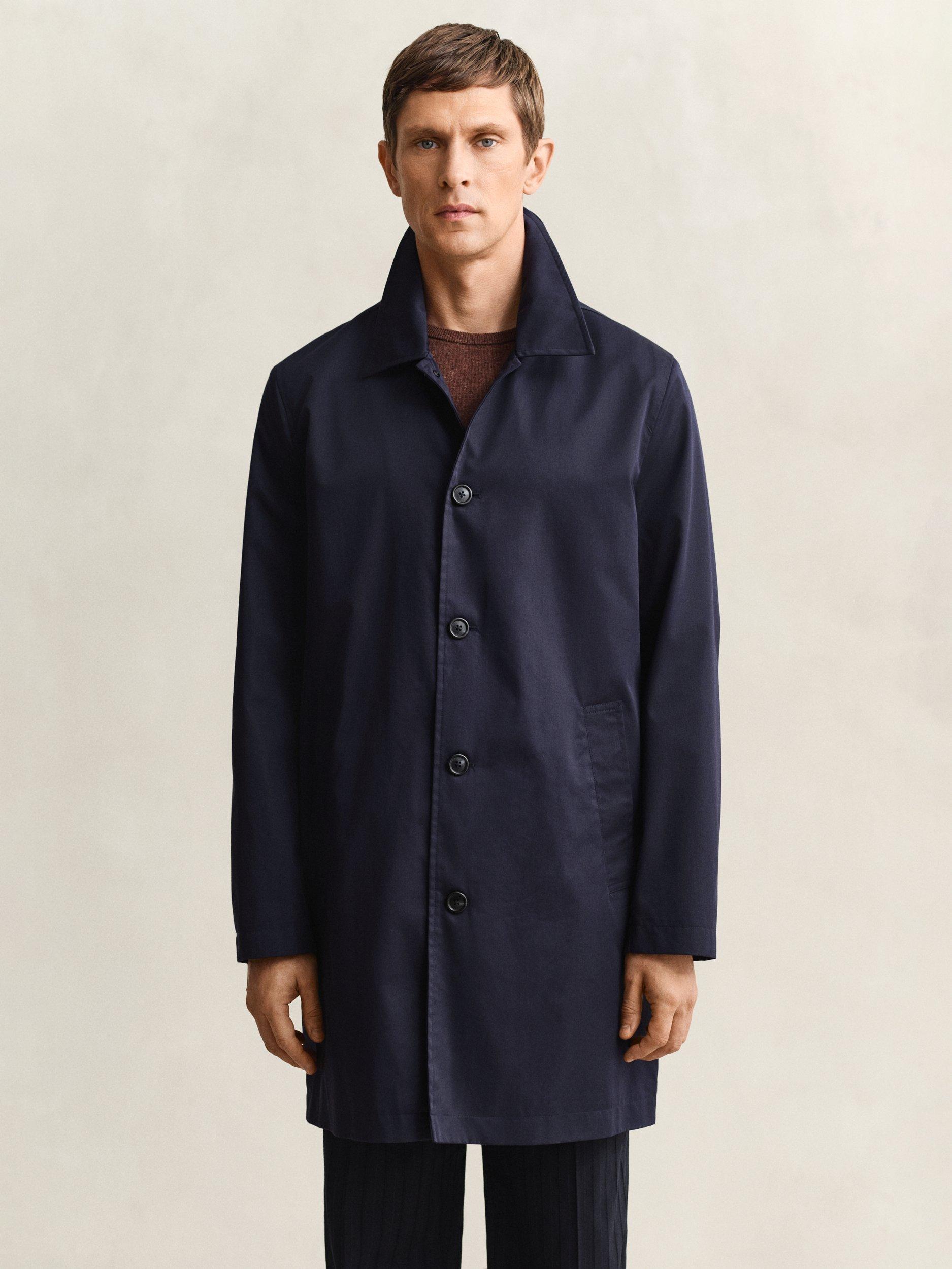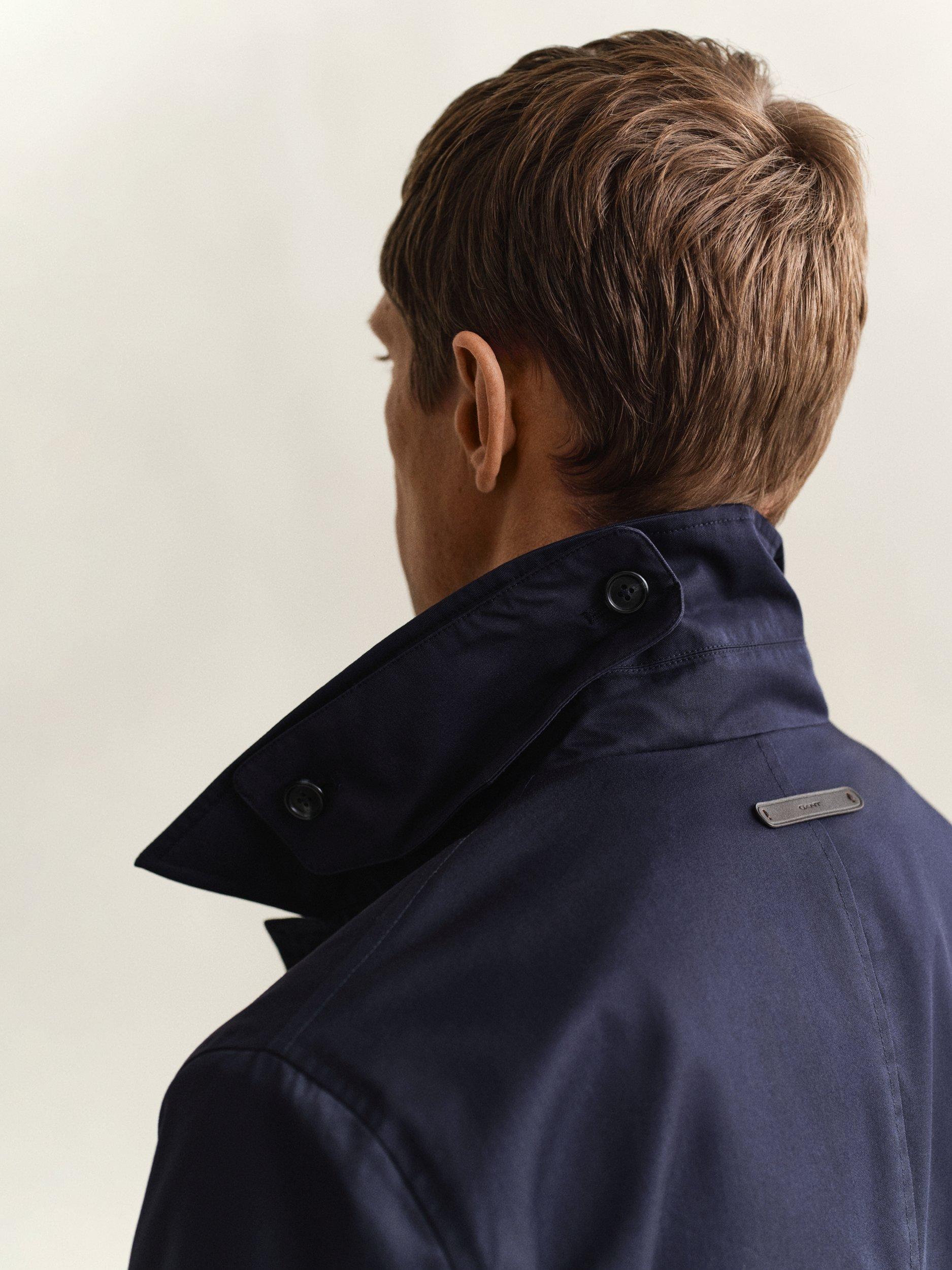 Inspired by classic car coats, this Gant piece is made from a cotton twill blend, fully lined and treated with a water-repellent finish. Ideal for transitional weather, it’s cut in a regular fit with a length that falls just above the knee. It features a point collar, buttoned front, back vent, two front welt pockets, and two interior pockets. A branded locker loop at the back adds a signature touch.