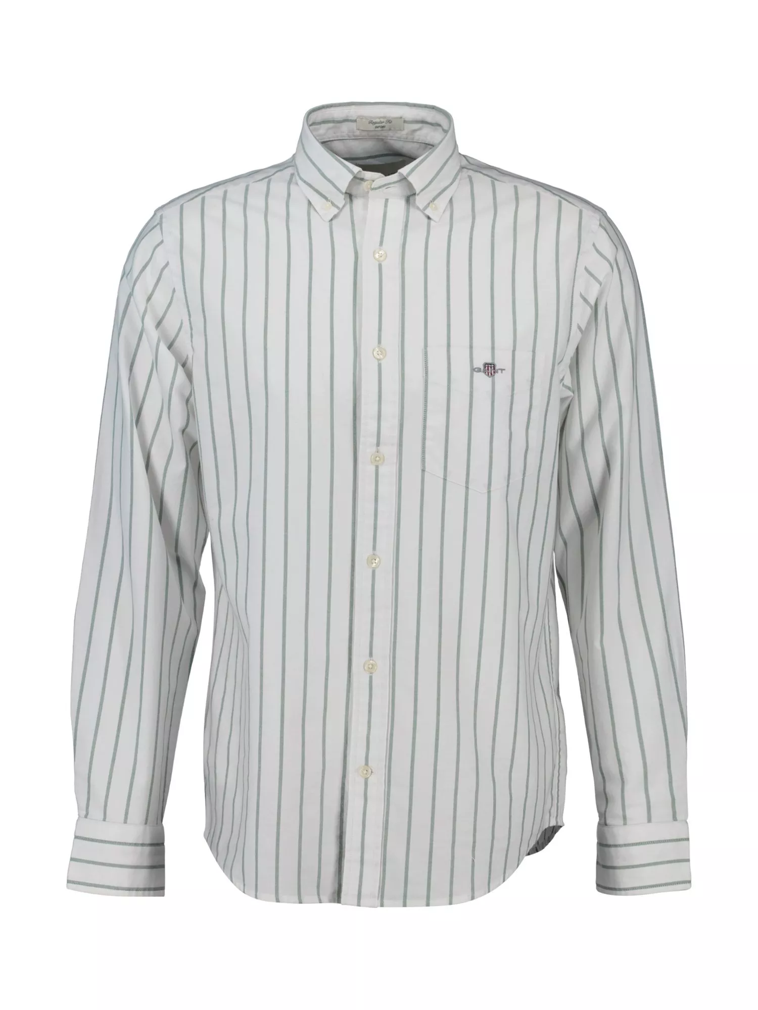 Classic Oxford Shirt from GANT that's perfect for smart-casual occasions. Crafted from durable cotton with yarn-dyed stripes, it's cut in a regular fit. This shirt includes: a button-down collar, chest pocket, curved hem, adjustable cuffs and a box pleat with the signature GANT locker loop at the back. The look is finished with the iconic GANT Archive Shield embroidery, adding a touch of timeless style.