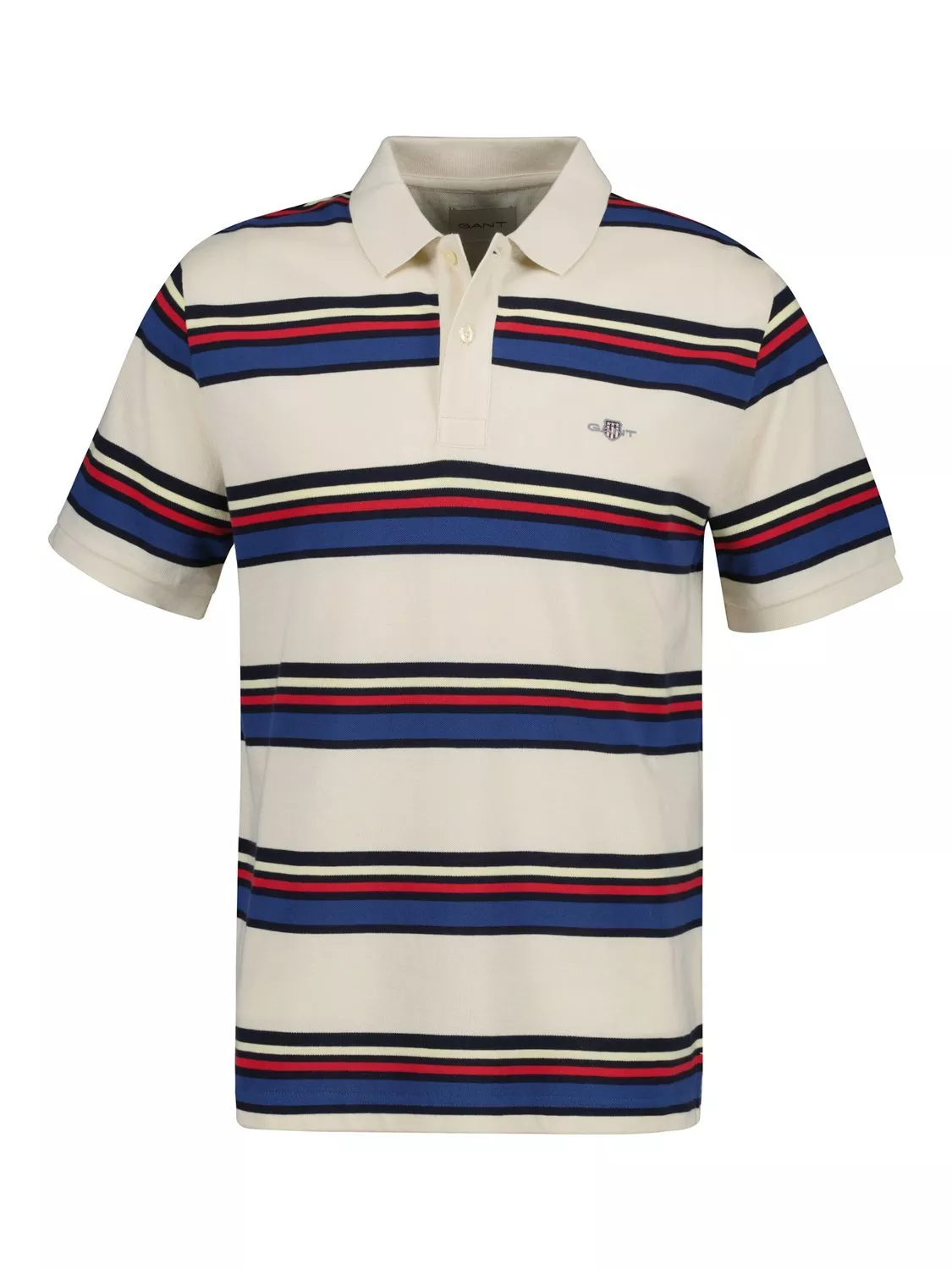 Crafted from 100% cotton, this Gant polo shirt is a sporty essential for any wardrobe. Designed for a regular fit and featuring yarn-dyed multistripes, it includes a classic flat knit collar, a buttoned placket, side hem slits, and an iconic Gant shield embroidered on the chest.