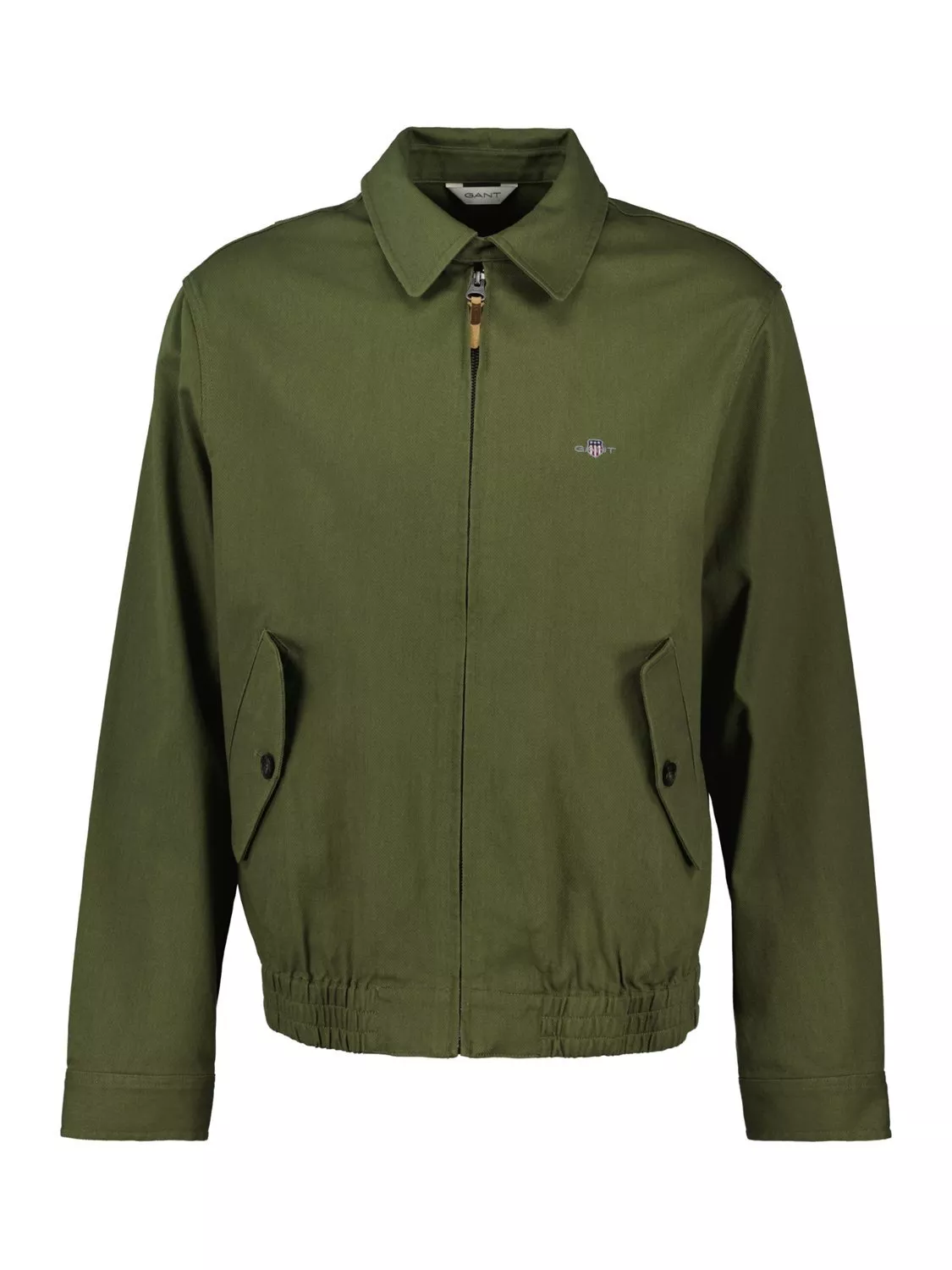 Crafted from cotton twill, this GANT jacket gives a modern twist to a classic workwear-inspired design. Styled with side flap pockets, buttoned cuffs, an elasticated hem, and a front zip closure. Additionally, it has an interior chest pocket with visible stitching from the outside. Completed with the iconic shield logo embroidered on the chest. A regular fit, it sits just above the hips and features an unlined interior for a casual, breathable feel.