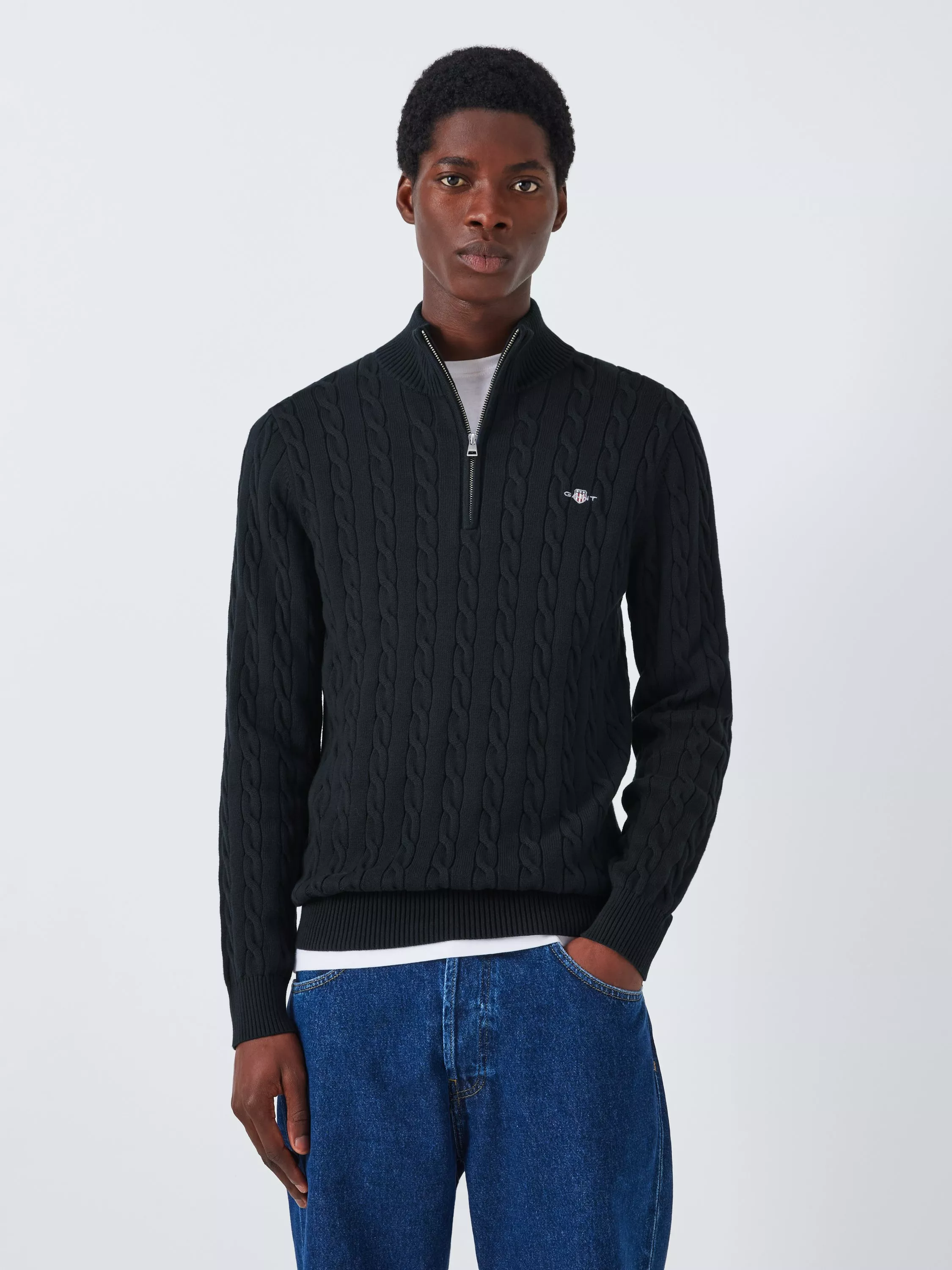 Made from 100% organic cotton, this sweater is cut for a regular fit and designed with a half-zip collar. Featuring a textured knit design and fully fashioned detailing, the sweater is also crafted with ribbed endings at the collar, hem and sleeve cuffs. The design is complete with a signature GANT Archive shield graphic embroidered at the chest.