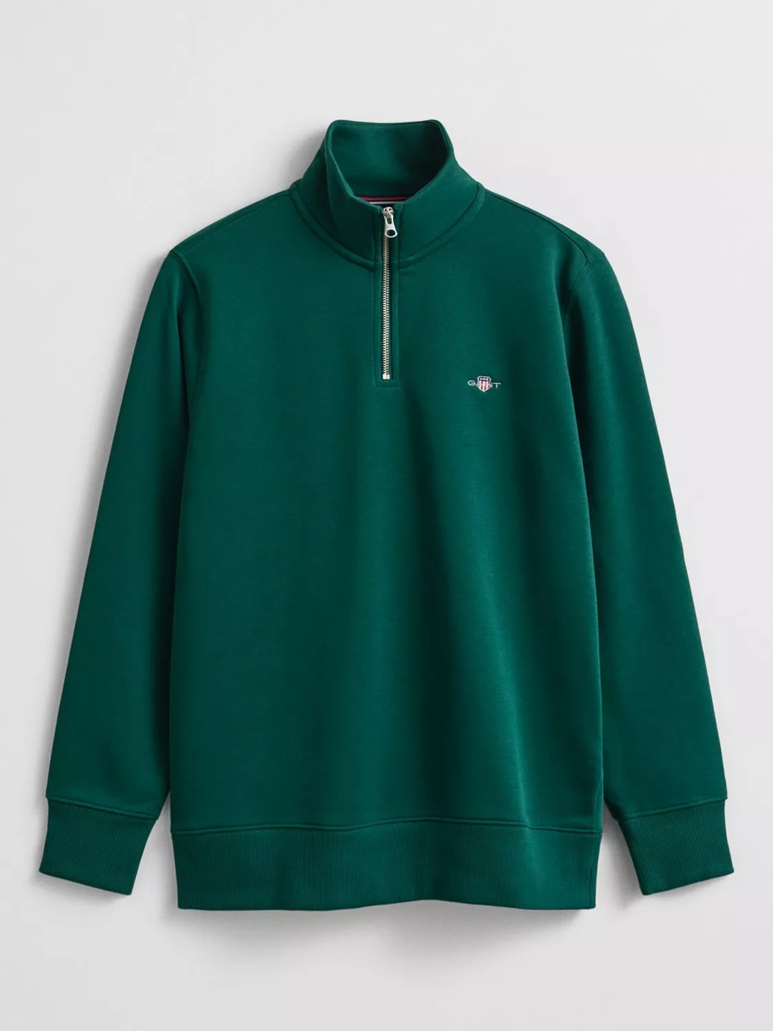 Crafted in a soft cotton blend, this Gant sweatshirt is designed for a regular fit. It features a half-zip collar, ribbed detailing at the hem and cuffs and a small Gant shield graphic embroidered at the chest. Style with the matching Gant sweatpants for a cosy, coordinated set.