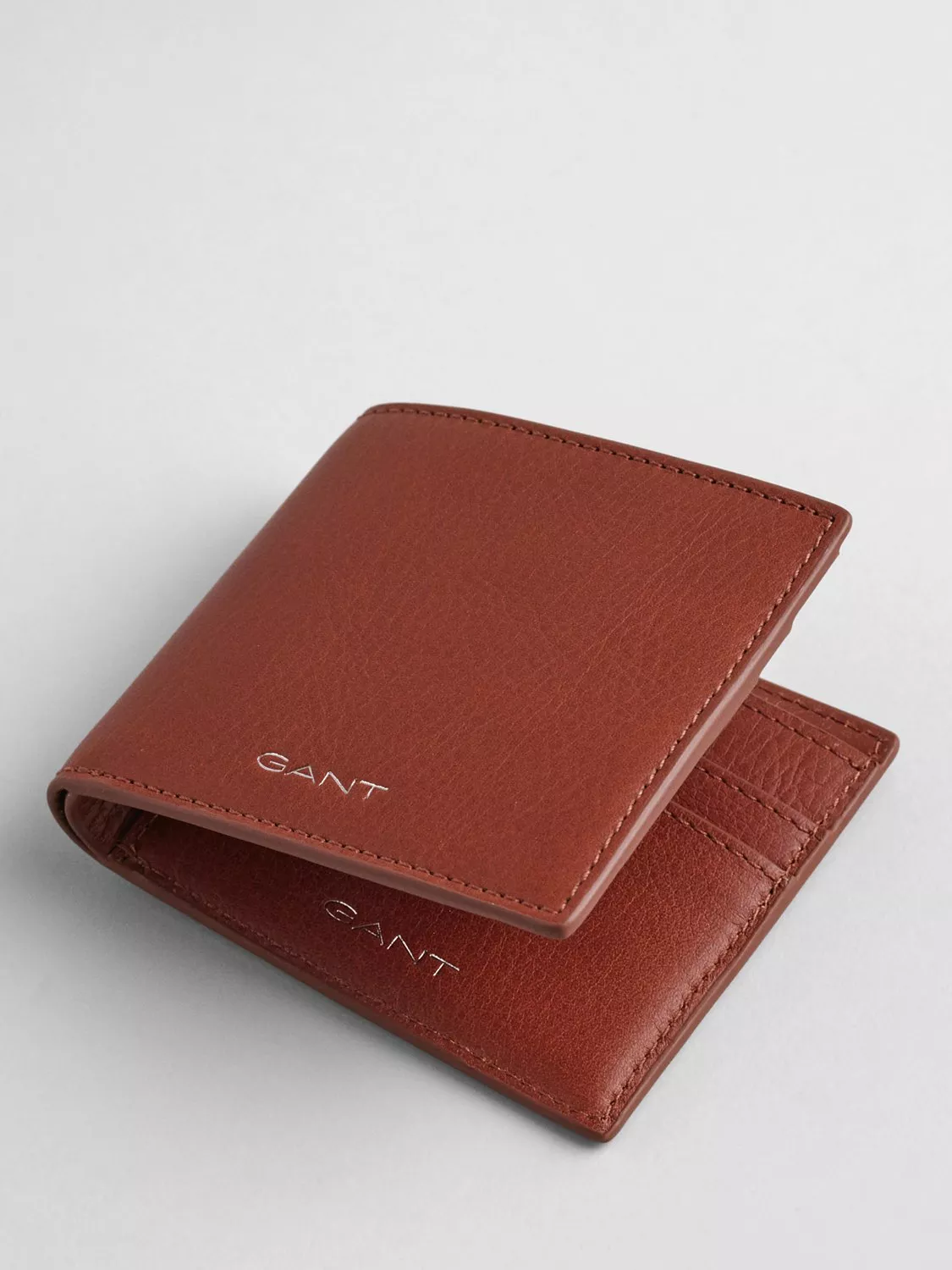 Made with 100% premium leather, this bi-fold wallet from GANT features coin and card compartments, and a sleek GANT logo embossed in silver foil on the inside and front.
