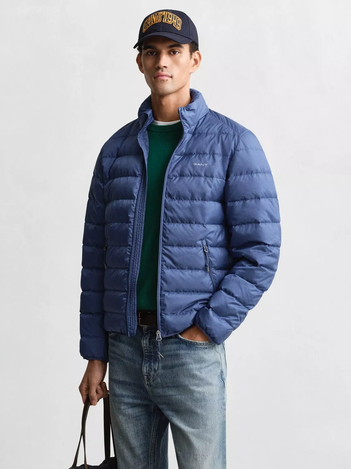 The Light Down Jacket from Gant is a versatile piece designed for year-round layering. Filled with 90% down and 10% feathers, it is crafted from super light, certified recycled polyester with a water-repellent finish. The jacket offers a regular fit and a length that sits just above the hips, making it perfect for wearing alone over shirts or under heavier coats on colder days. It features a stand-up collar, a two-way zipper, side pockets, and a rubber logo badge on the chest, completing the look with a touch of style and functionality.